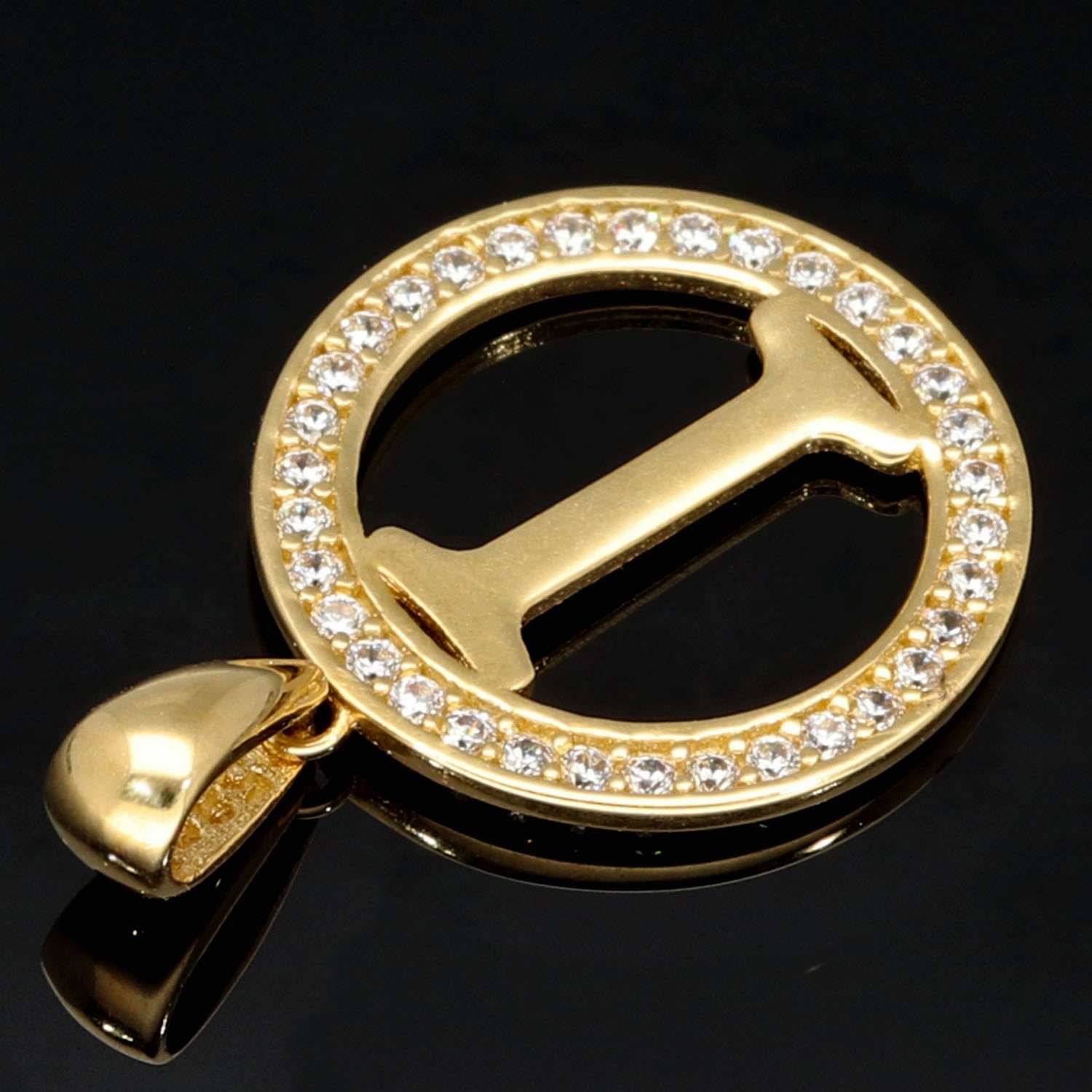 Dieser edle Anhänger aus hochwertigem 14 Karat (585) Gelbgold vereint zeitlose Eleganz mit persönlicher Bedeutung. Der fein gearbeitete Buchstabe „I“ steht im Mittelpunkt eines runden Rahmens, der mit funkelnden Zirkonia-Steinen besetzt ist und dem Schmuckstück eine luxuriöse Ausstrahlung verleiht.