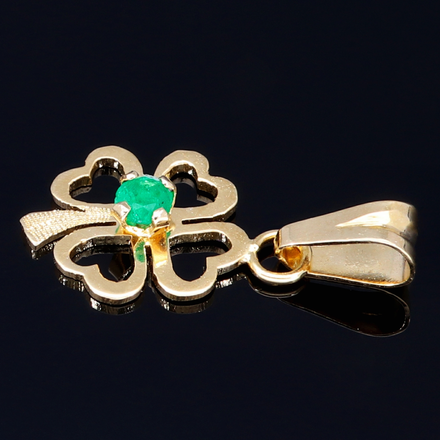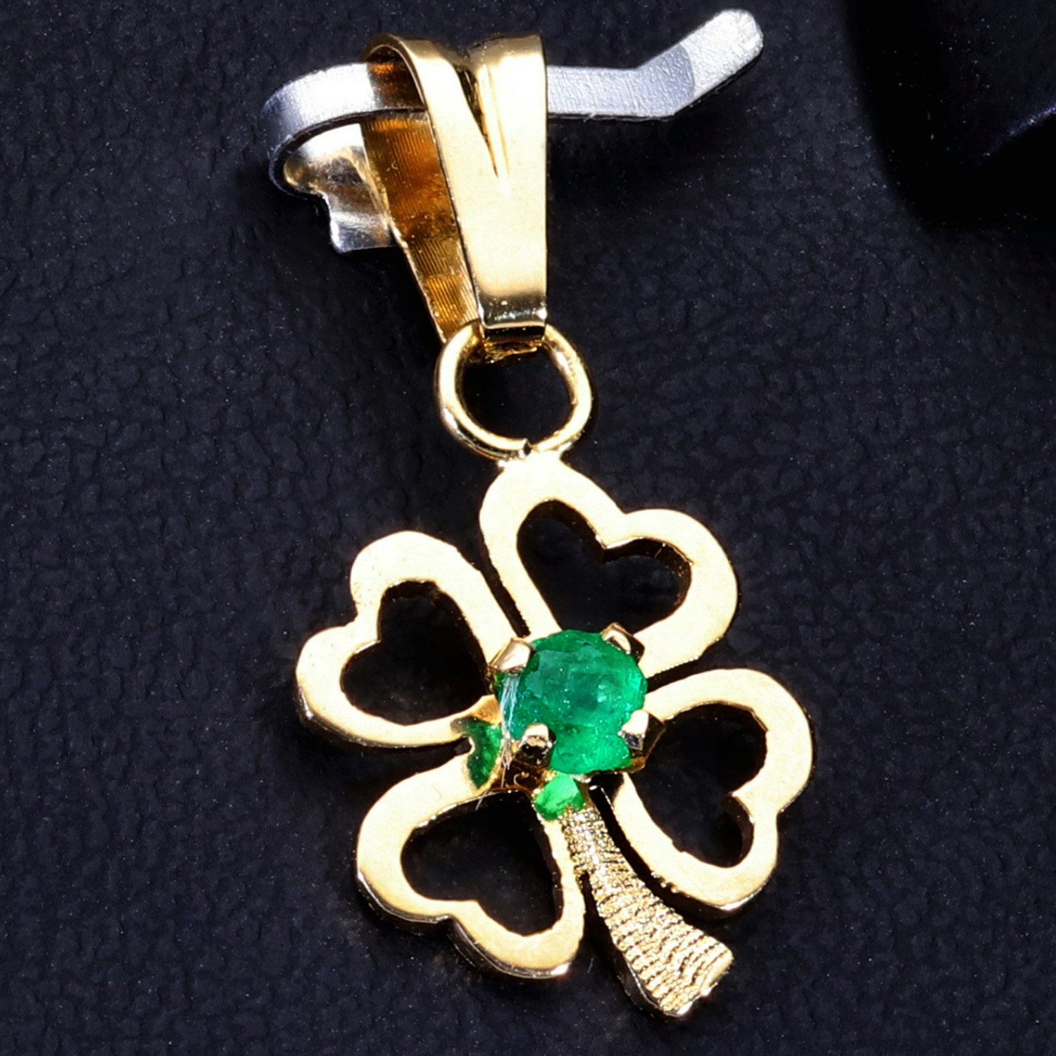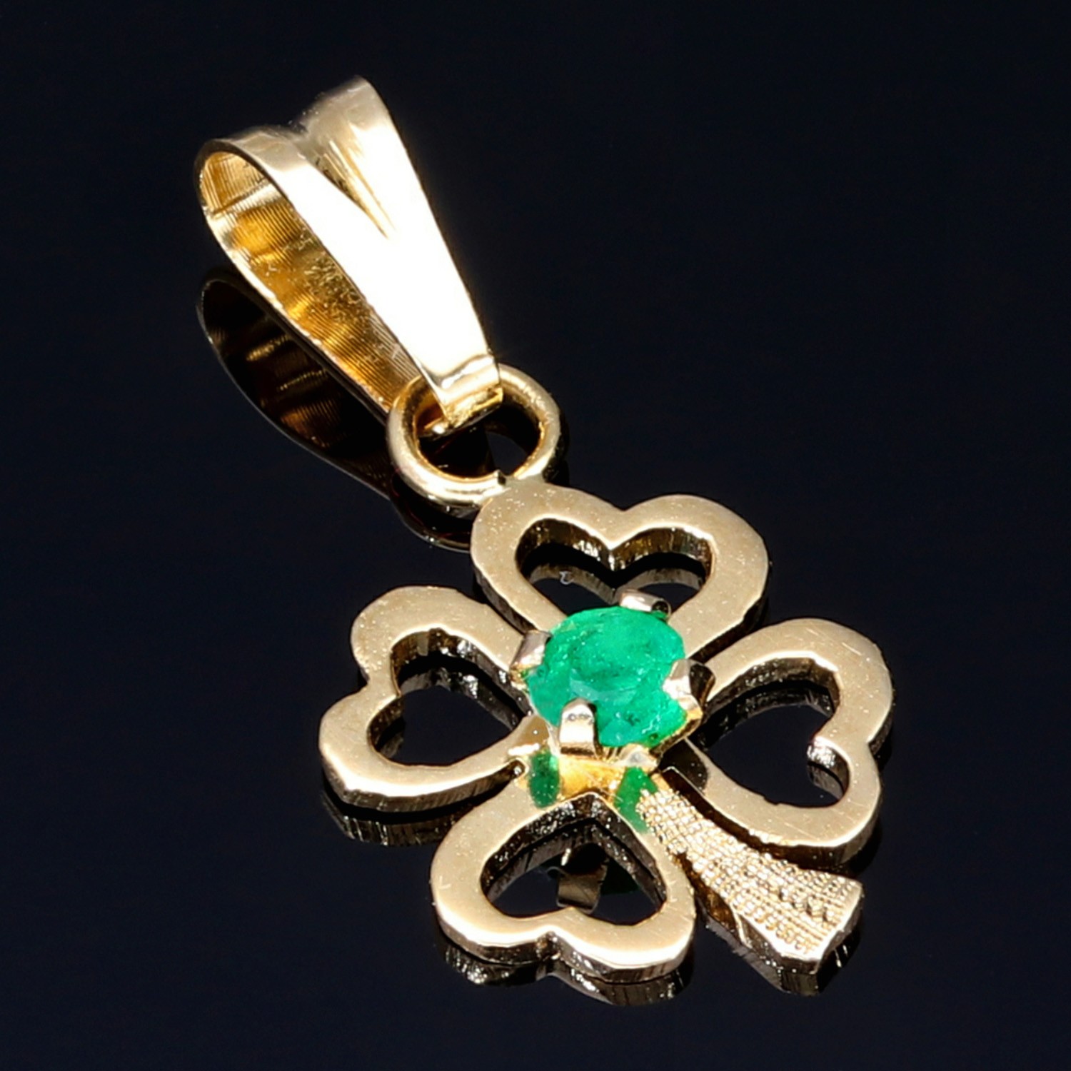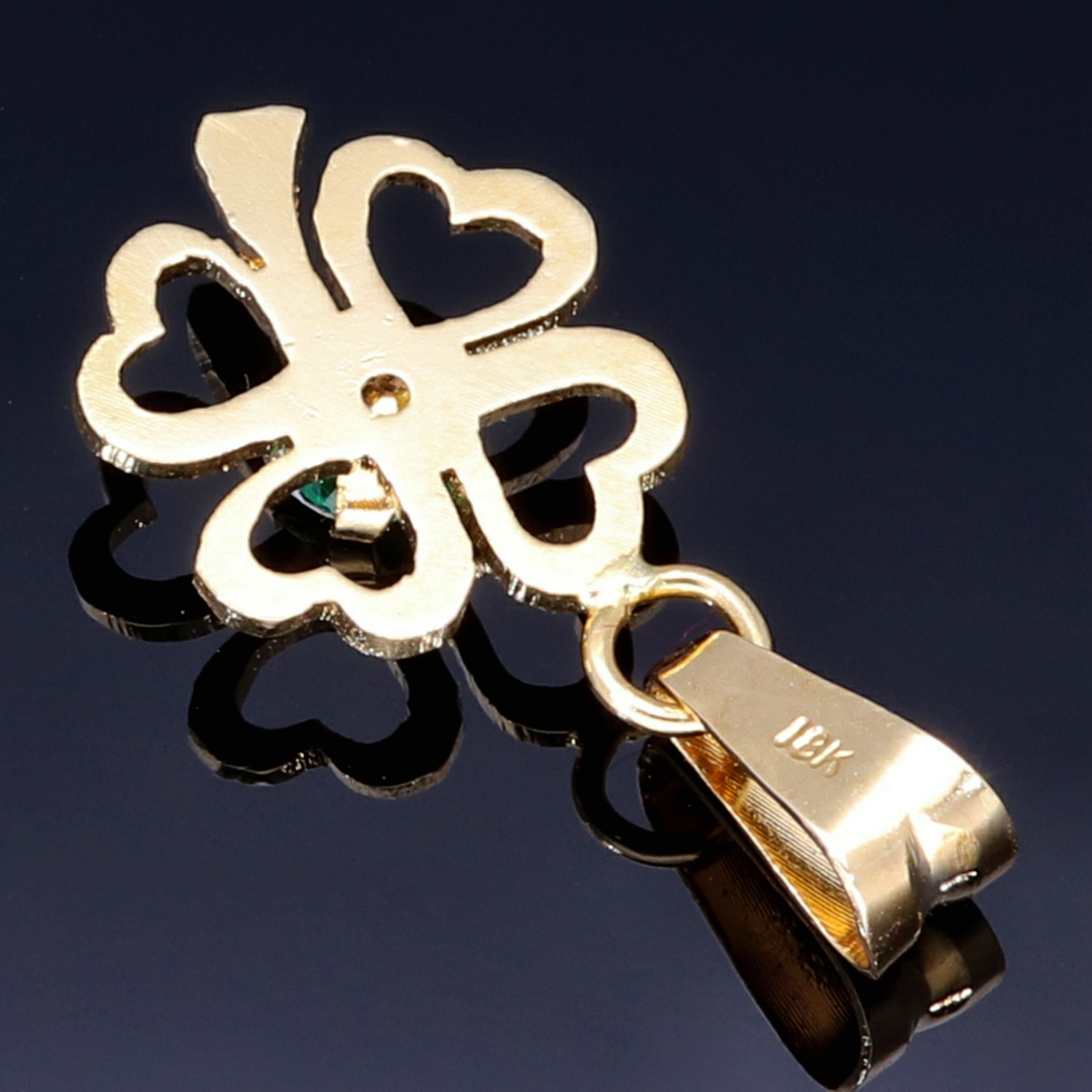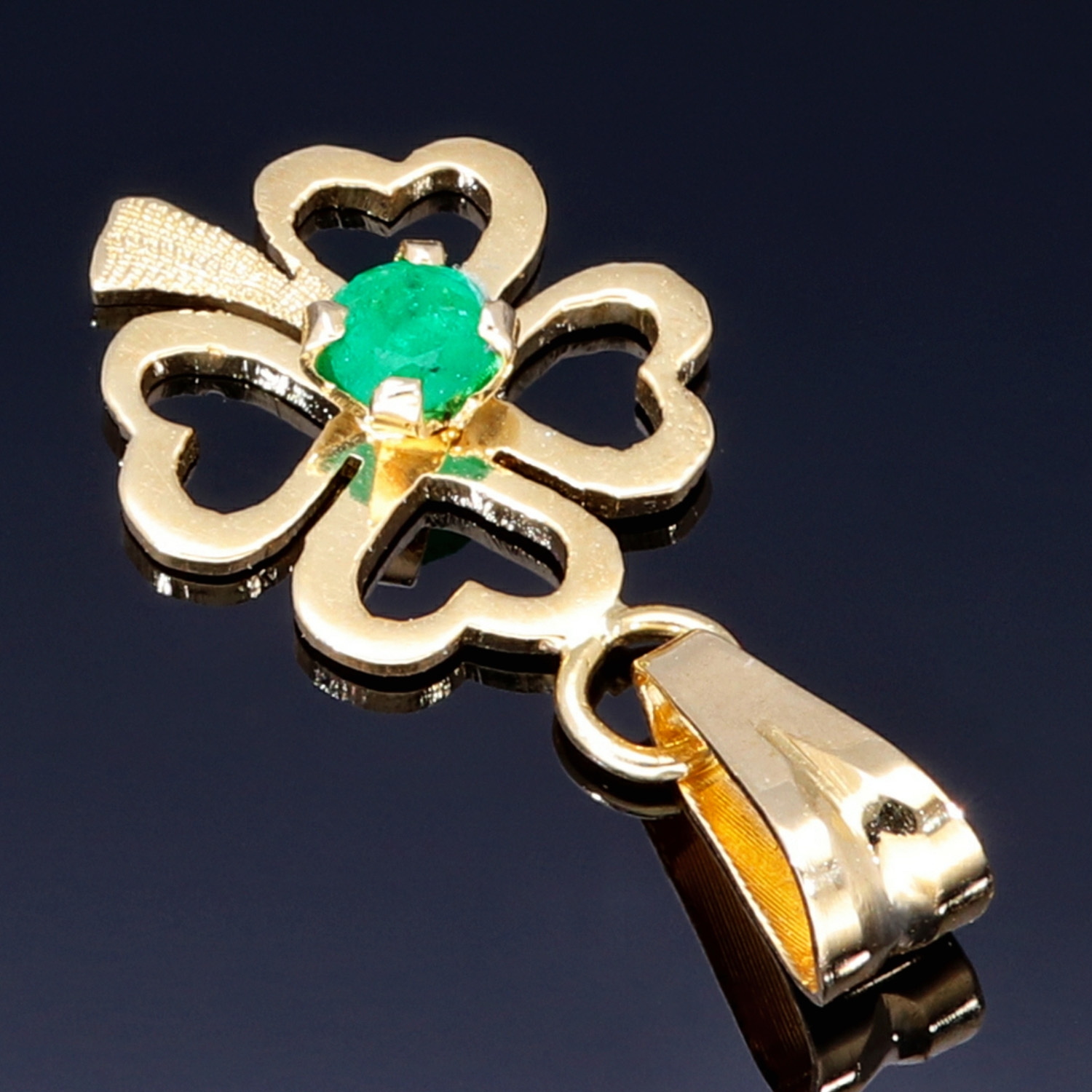 Dieser edle Kleeblatt-Anhänger ist aus hochwertigem 18K / 750 Gold gefertigt und mit vier erstklassigen, intensiv grünen kolumbianischen Smaragden besetzt. Jeder Smaragd wurde sorgfältig ausgewählt und meisterhaft gefasst, um seine natürliche Brillanz optimal zur Geltung zu bringen.