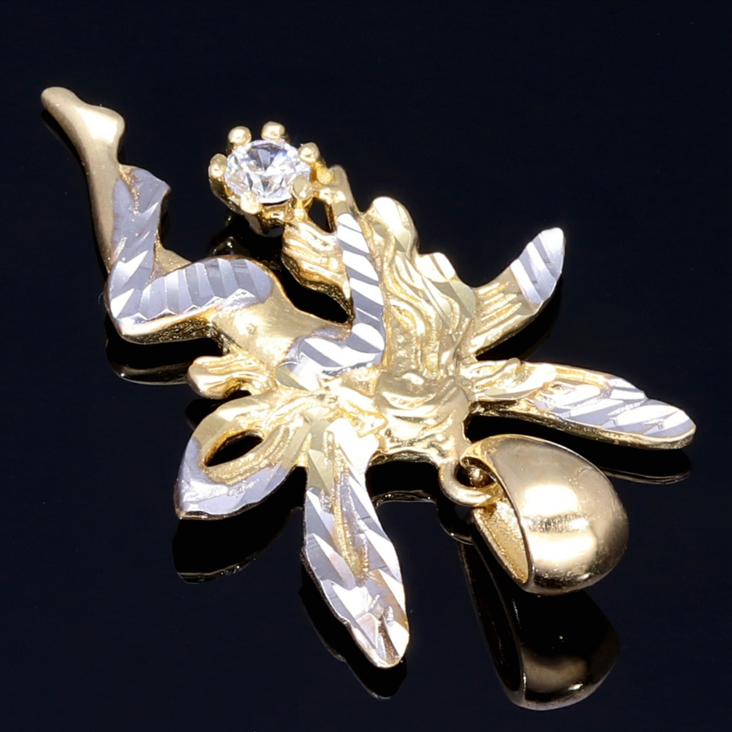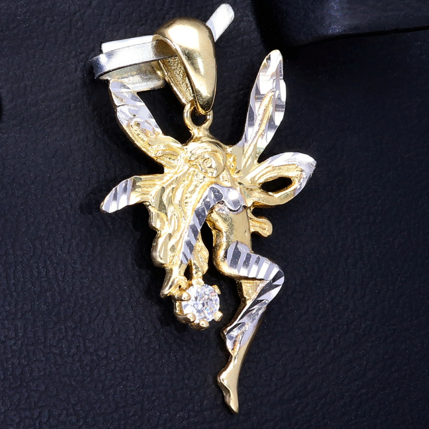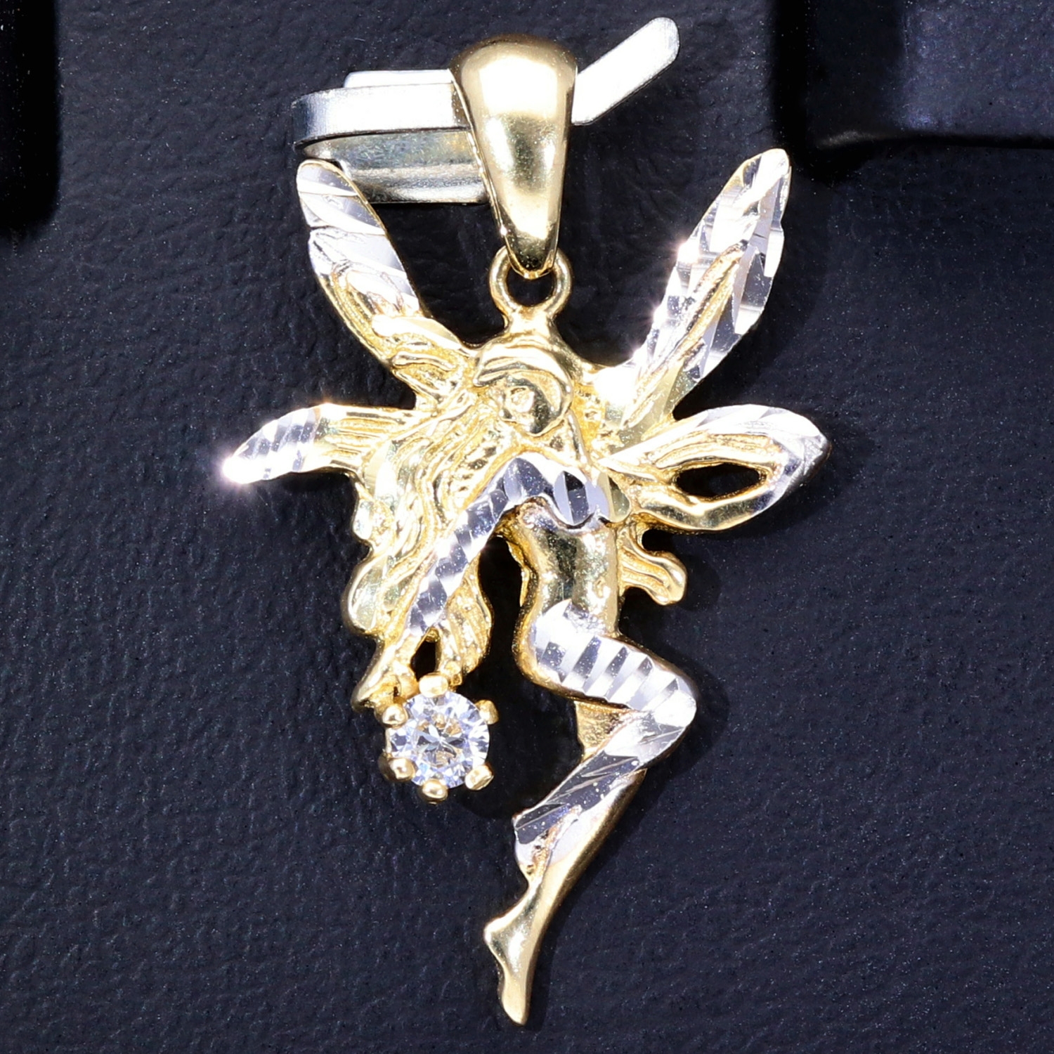 Fee- / Engel- Anhänger aus glänzendem, hochwertigem 14k / 585 Gold (Bicolor - Weißgold und Gelbgold) besetzt mit einem Zirkonia