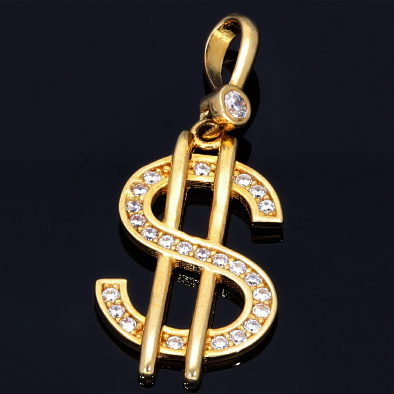 Wunderschöner US Dollar $ Anhänger in 585er 14K Gelbgold mit Zirkoniabesatz