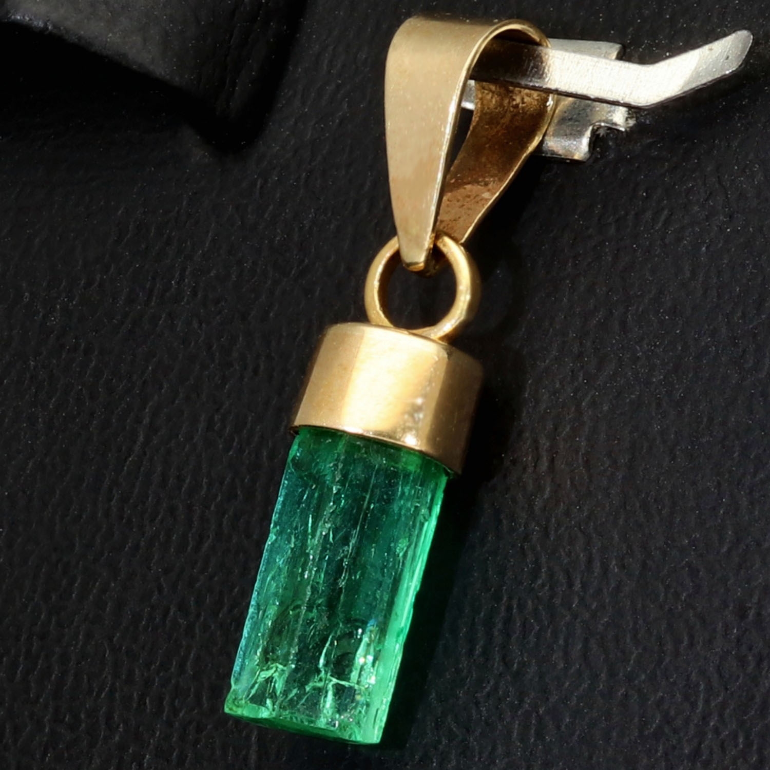 Handgefertigter Smaragdkristall-Anhänger in hochwertigem 18K / 750 Gold (Gelbgold) gefasst - Einzelstück
