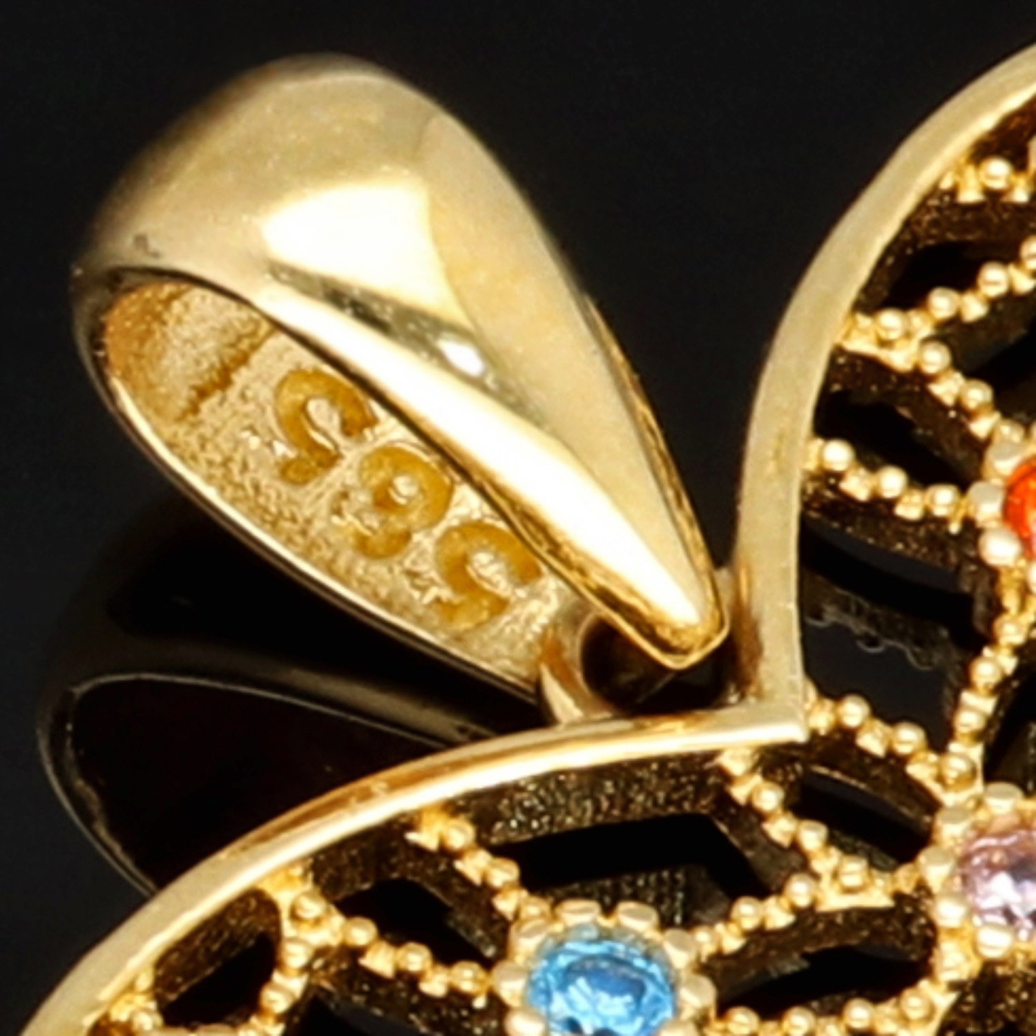 Hochwertiger Anhänger aus Gelbgold (585 / 14 Karat) in fein gearbeitetem Herzdesign. Die offene, filigrane Struktur wird durch mehrfarbige Zirkonia-Steine akzentuiert, die für einen dezenten Glanz und eine lebendige Optik sorgen.