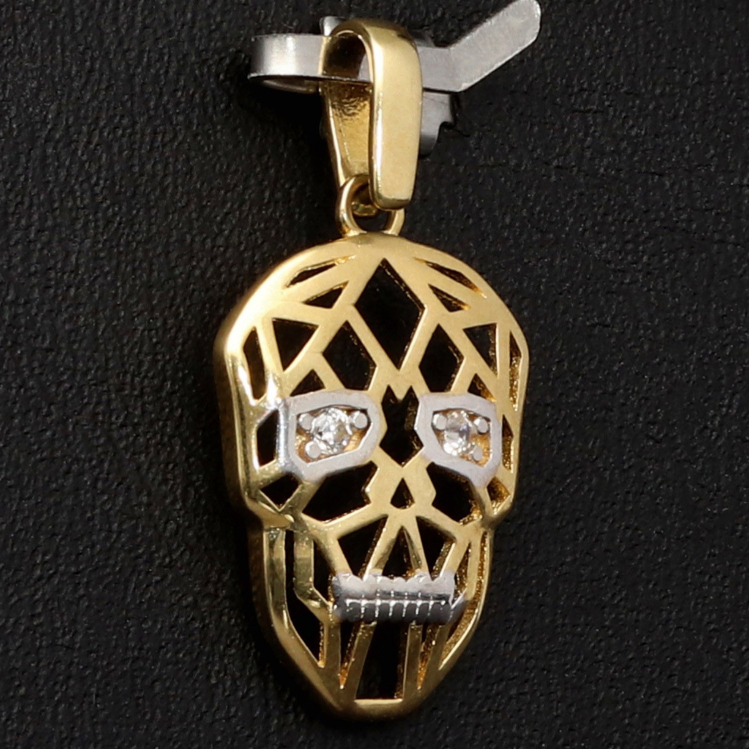 Totenkopf-Anhänger im trendigem Bicolor-Design aus edlem 14K 585 Gold. Die Kombination aus warmem Gelbgold und elegantem Weißgold verleiht dem detailreichen Skull-Motiv einen stilvollen und zugleich markanten Look. Funkelnde Zirkonia-Steine setzen glänzende Akzente in den Augenpartien sowie im Mundbereich und unterstreichen das außergewöhnliche Design. Durch die offene, geometrische Gestaltung wirkt der Anhänger besonders modern und leicht.
