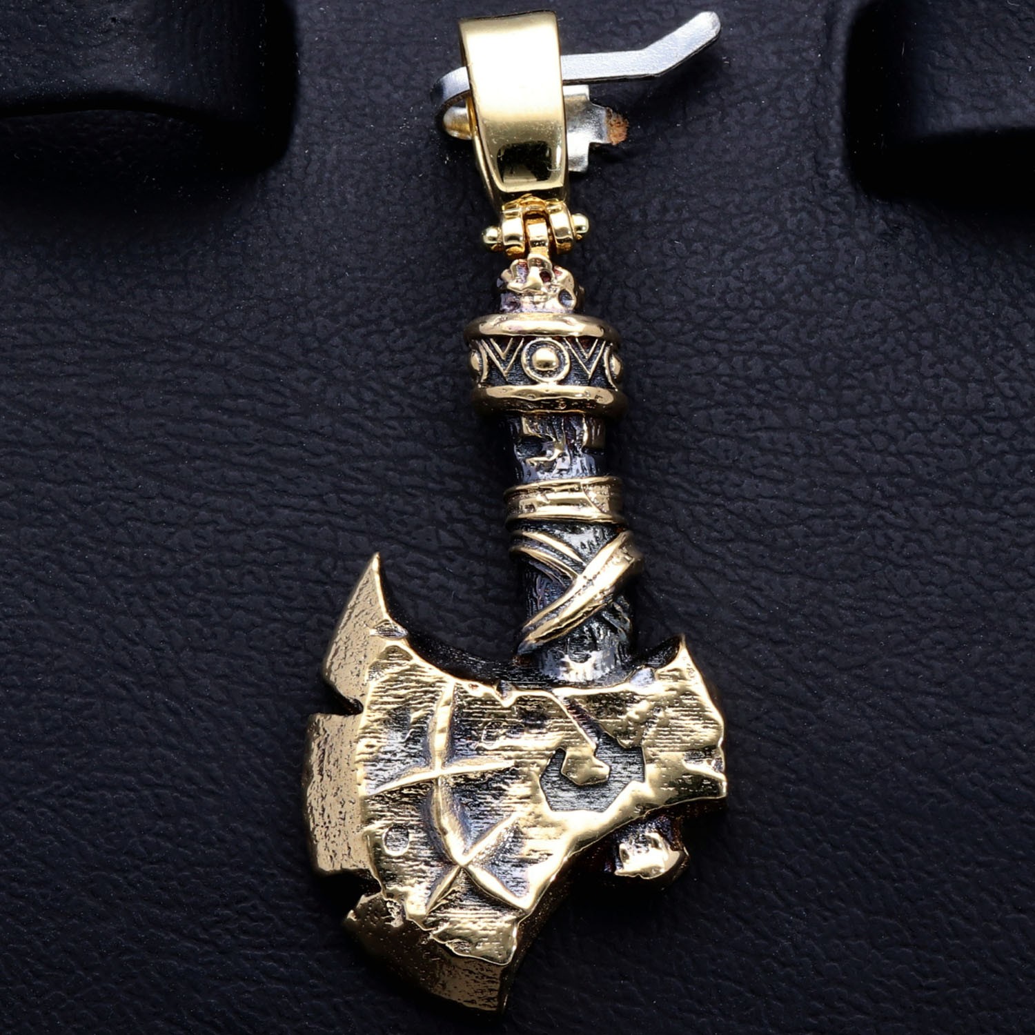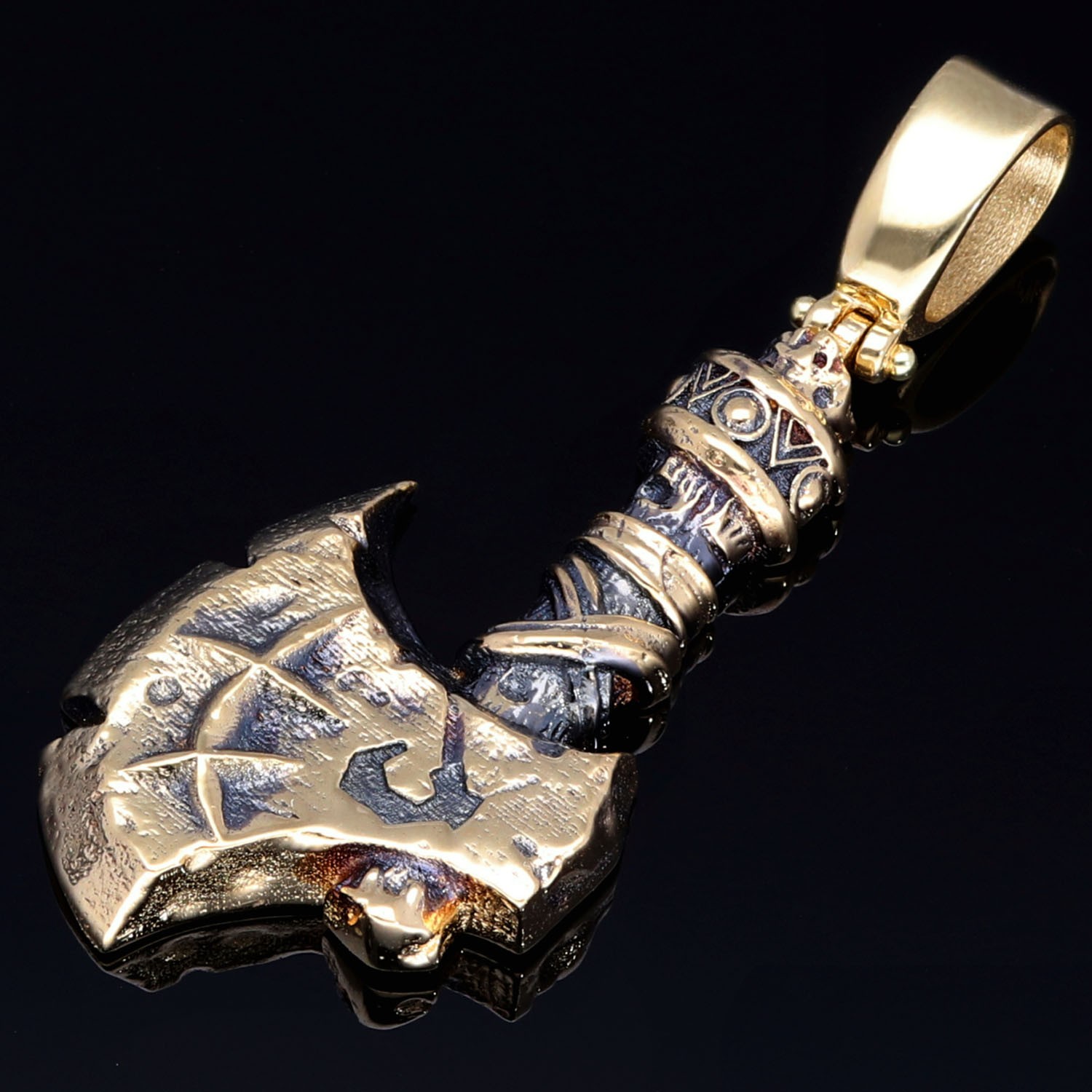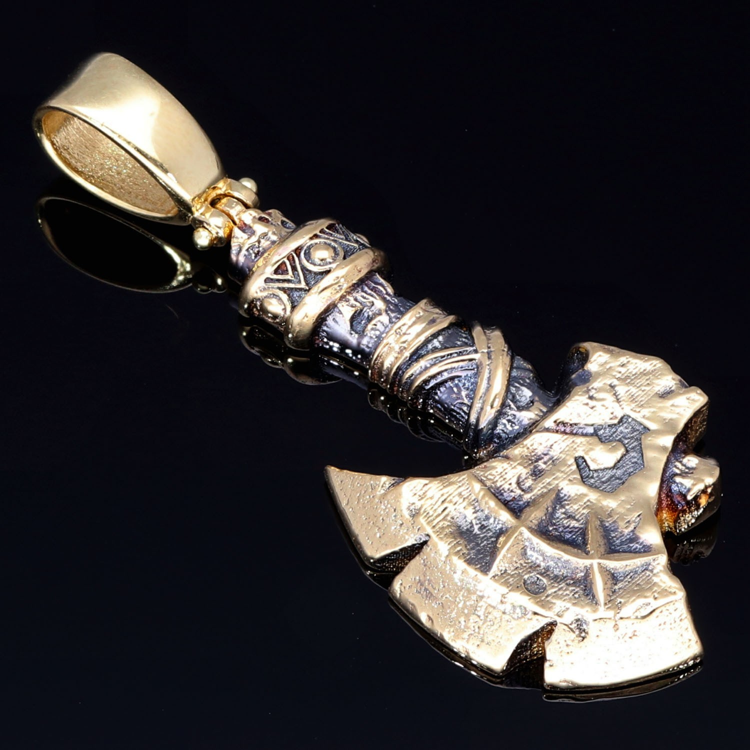 Wikinger-Axt-Anhänger mit filigranen Details und Verzierungen aus hochwertigem 585er 14K Gelbgold