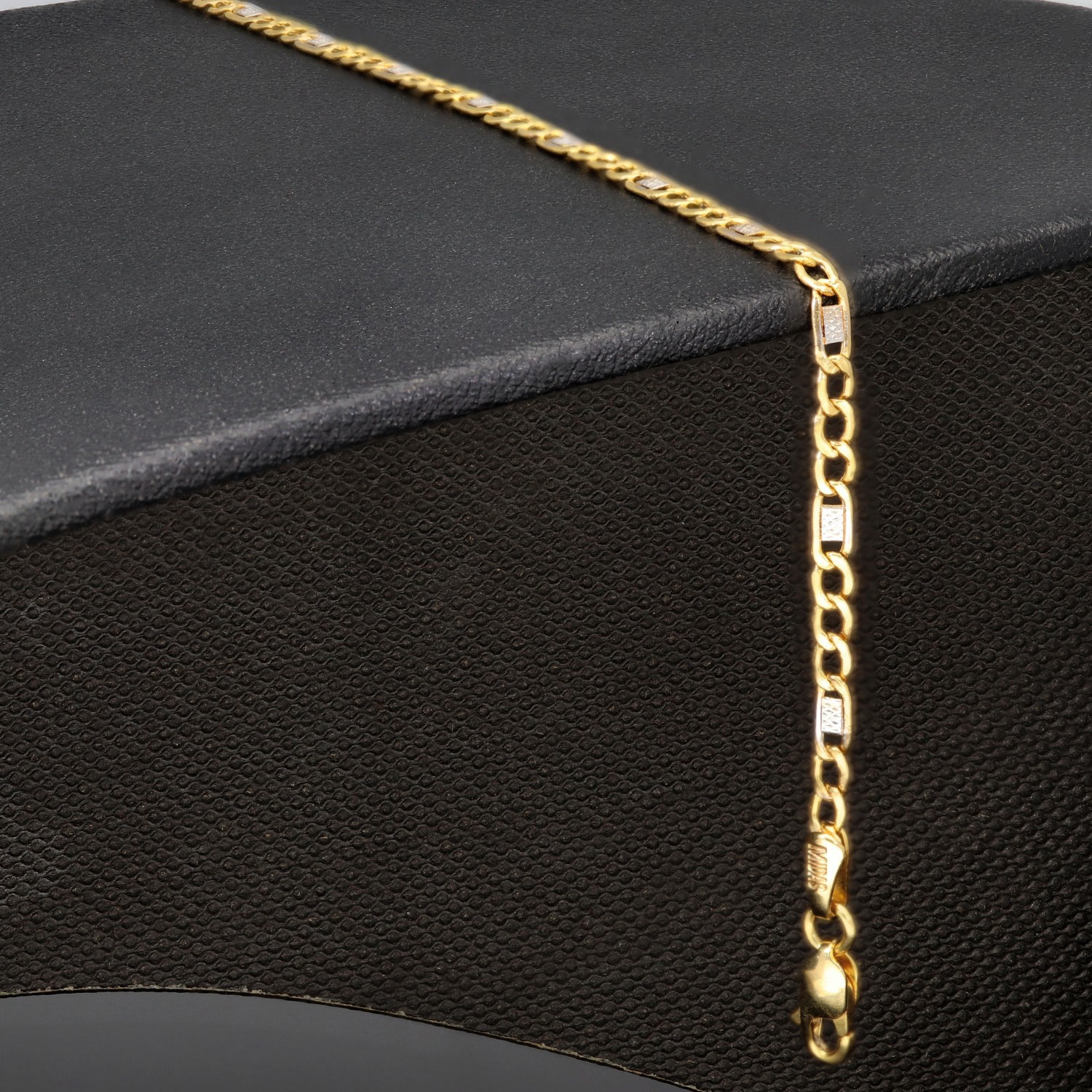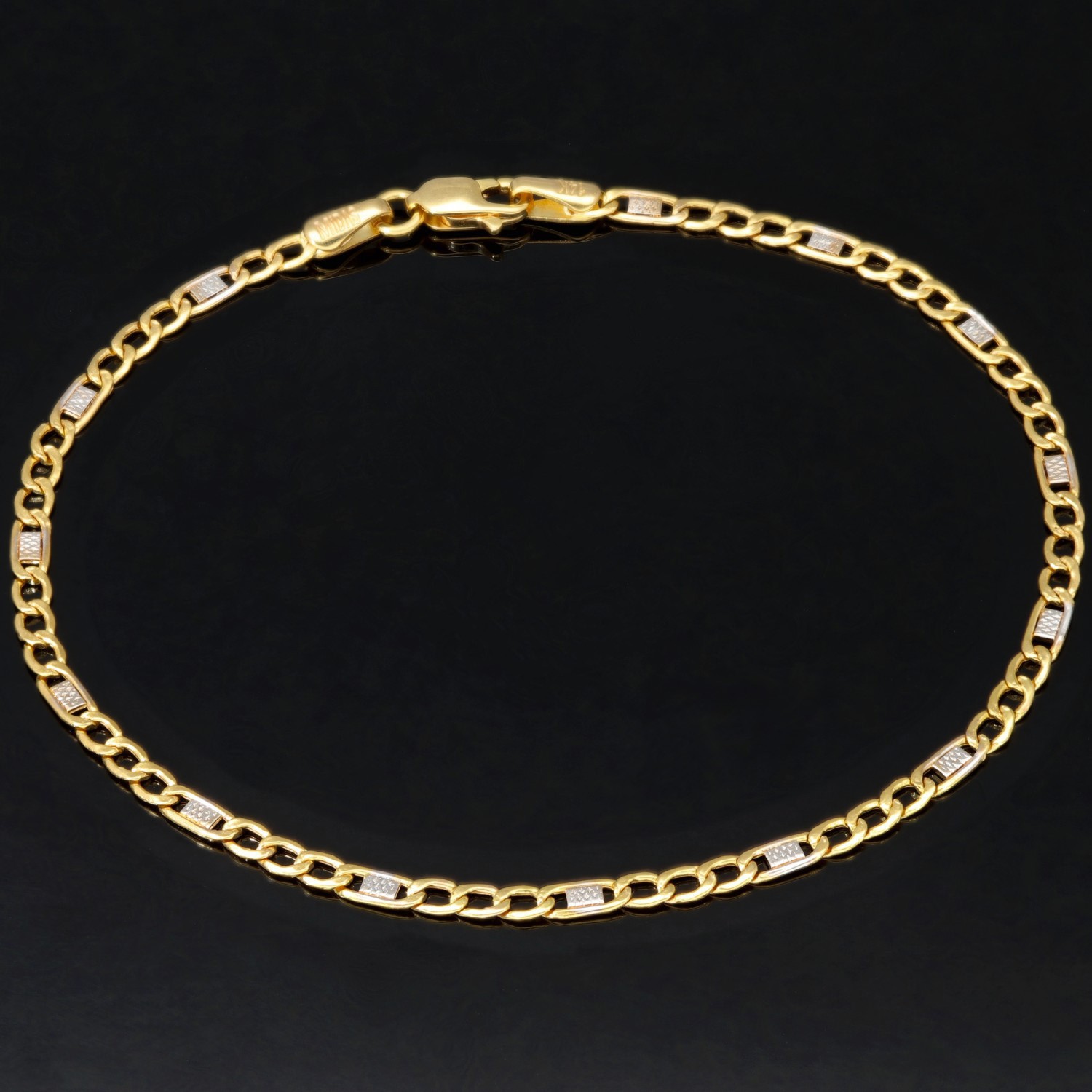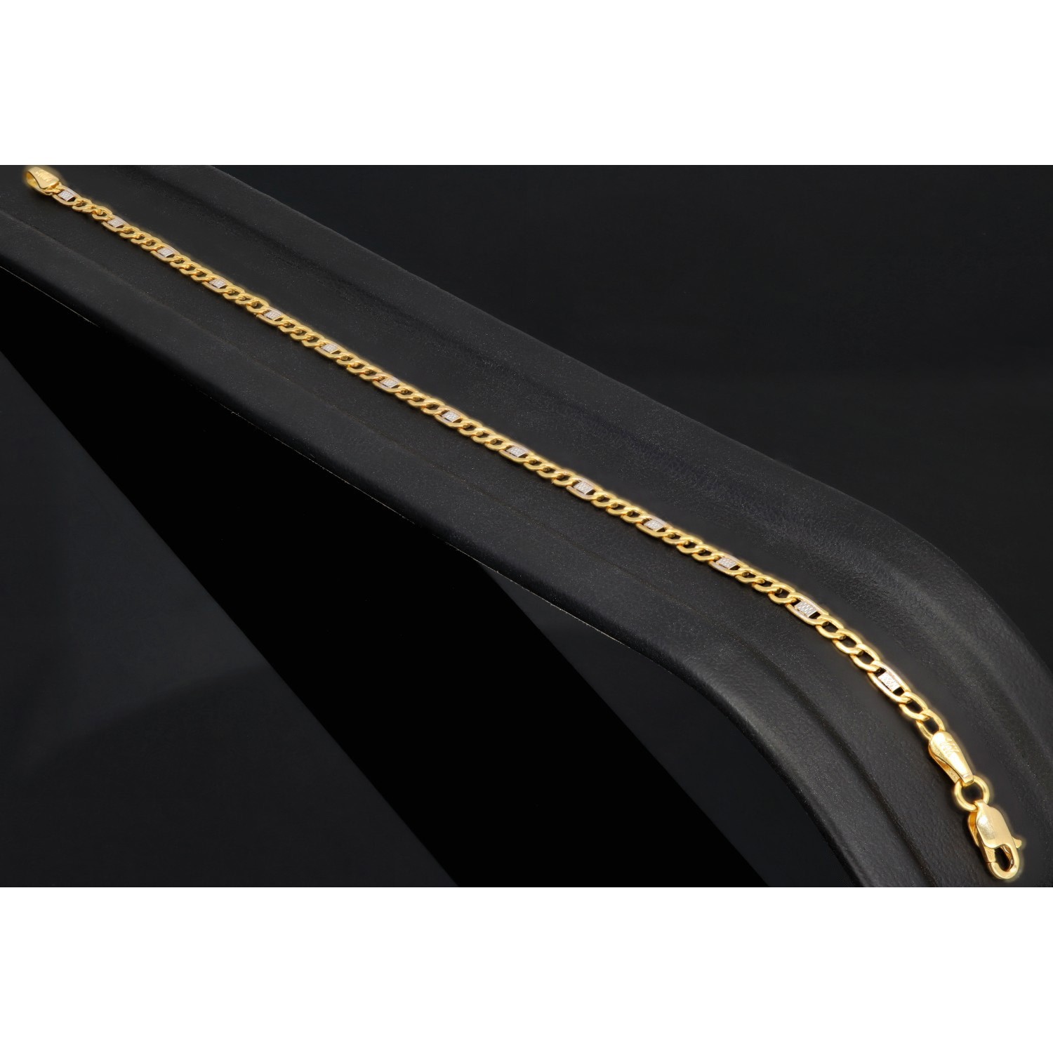 Elegantes Armband aus edlem 585er Bicolor-Gold (14 Karat), gefertigt aus einer stilvollen Kombination von Gelb- und Weißgold. Die feinen Glieder werden durch dezente, weißgoldene Elemente akzentuiert, die dem Schmuckstück eine besondere Raffinesse und einen modernen Look verleihen.