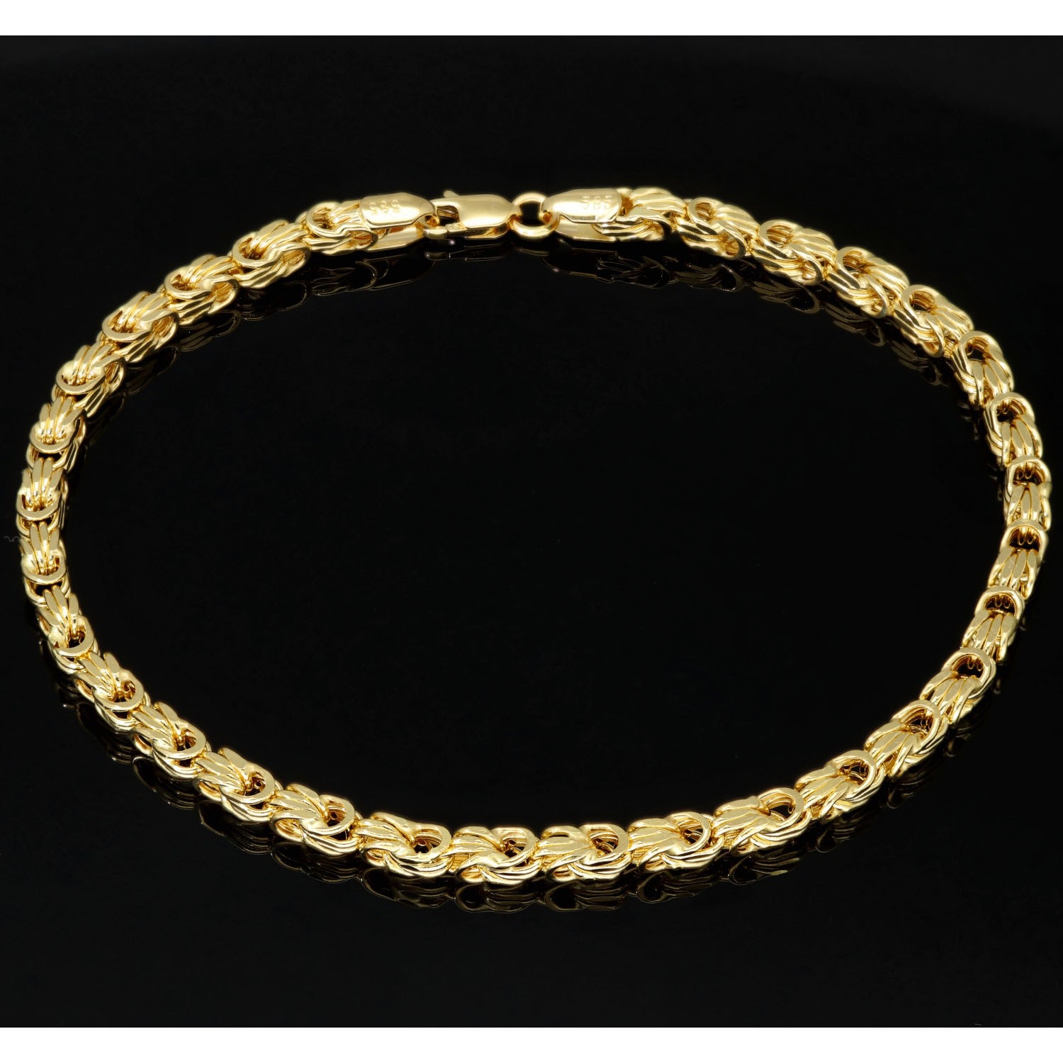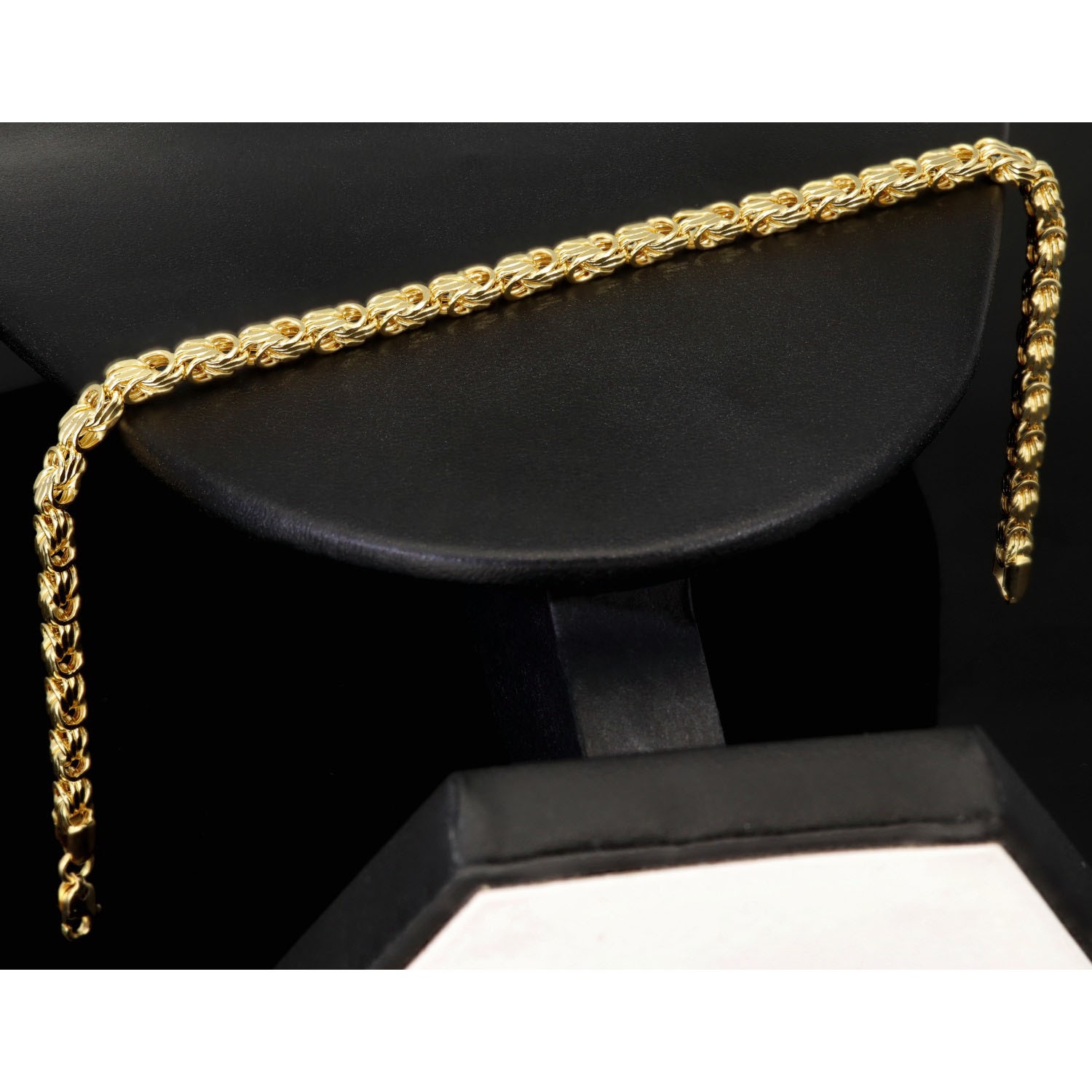 Dieses außergewöhnliche Königsarmband aus edlem 14 Karat (585) Gelbgold besticht durch seine fein ausgearbeitete, elegante Königsketten-Struktur. Mit einer Länge von ca. 21 cm und einer Breite von ca. 3 mm bietet es einen perfekten Mix aus filigraner Eleganz und hochwertiger Präsenz – ideal für jeden Anlass.
