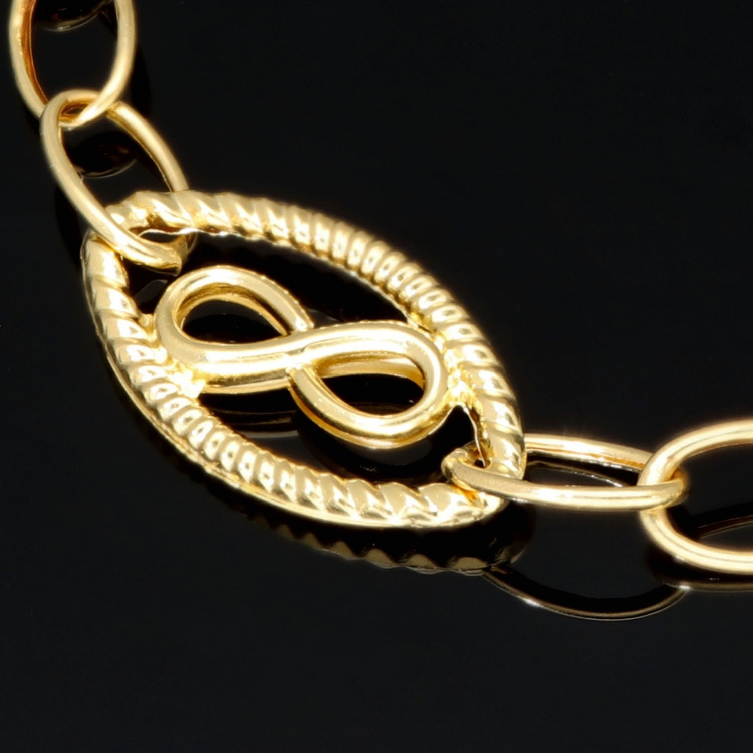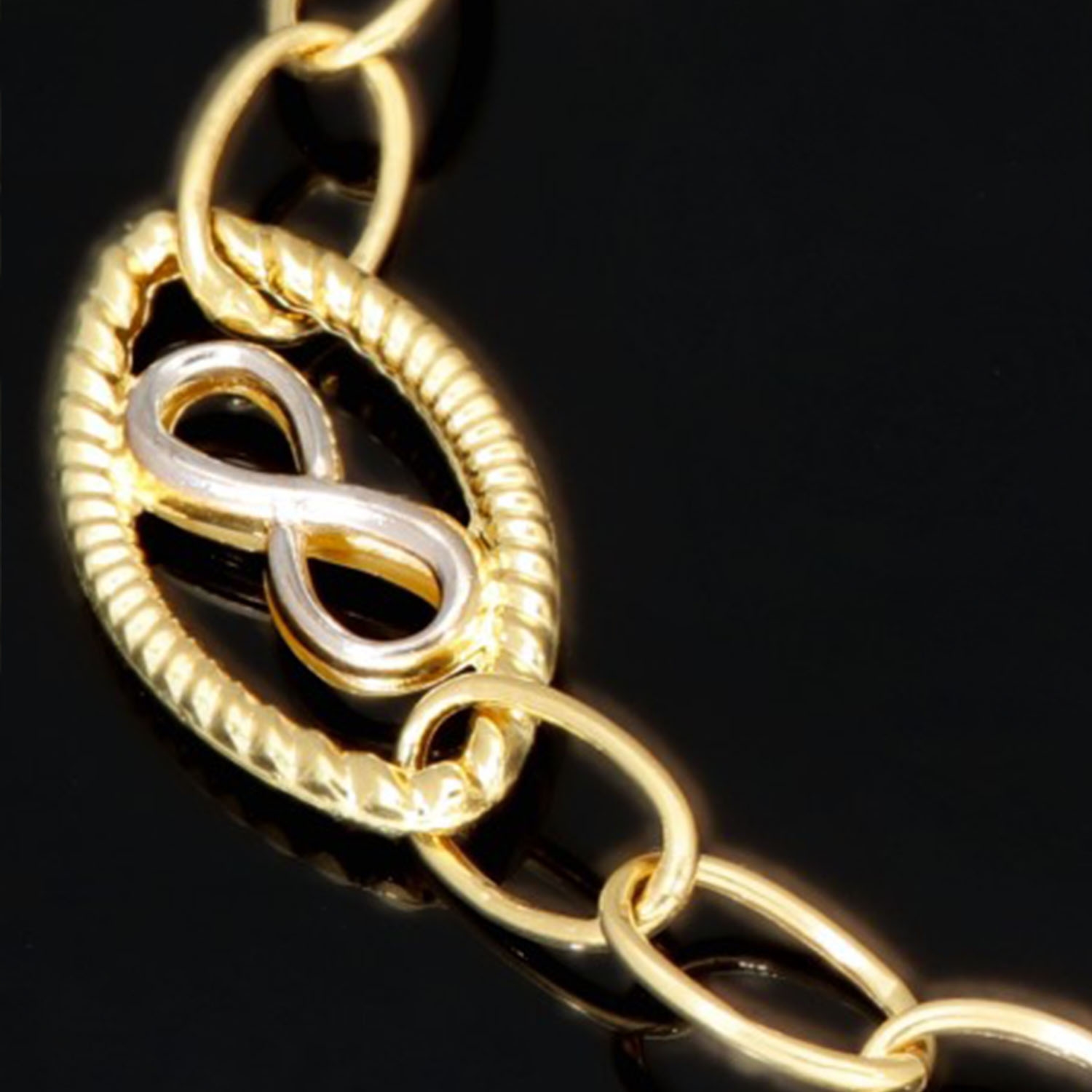Bicolor-Ankerarmband aus 14K (585) Gold – Kombination aus Gelb- und Weißgold mit filigran gearbeiteten Infinity-Elementen und Goldperle (ca. 20,5 cm)