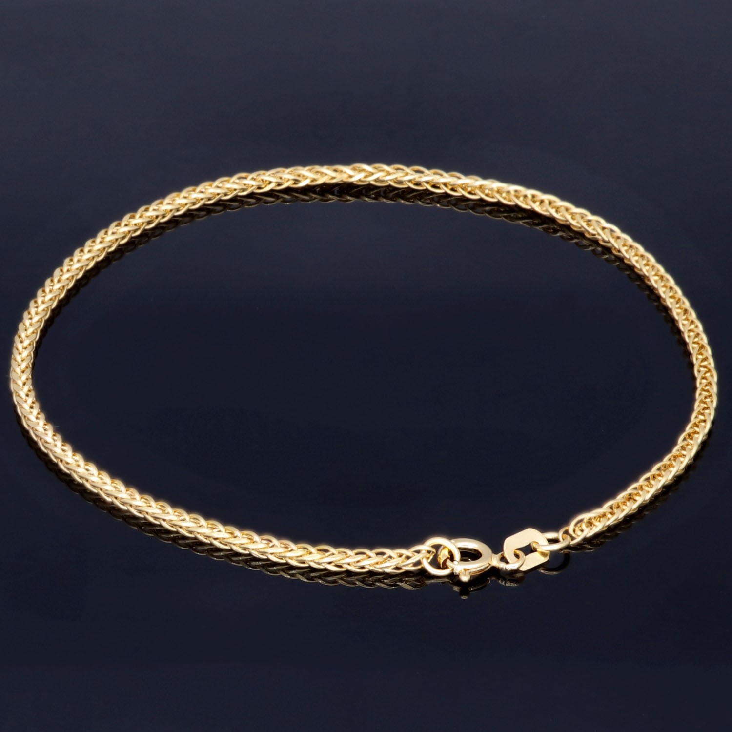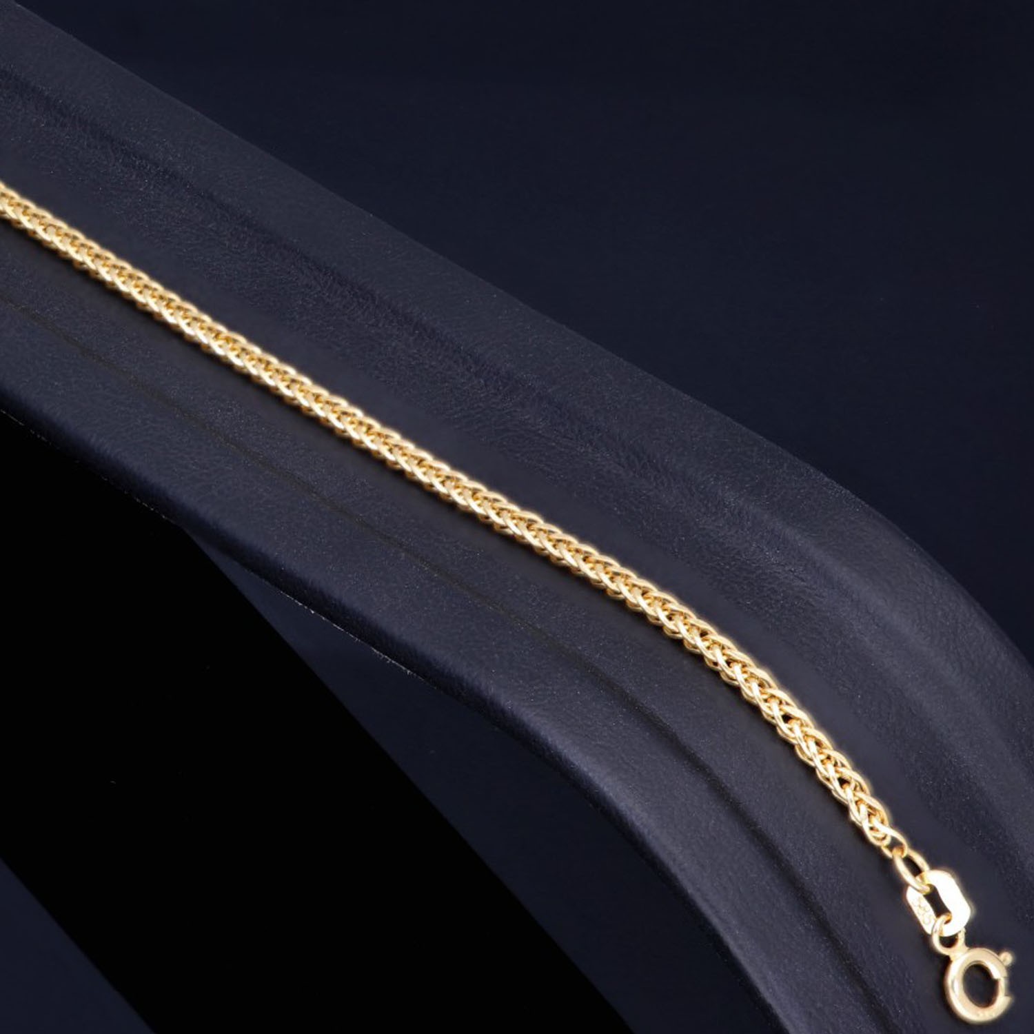 Exquisites Fuchsschwanzarmband aus hochwertigem 14 Karat (585) Gelbgold – ein elegantes Schmuckstück mit feiner, detailreicher Verarbeitung. Das filigrane Flechtmuster sorgt für eine besonders geschmeidige Optik und verleiht dem Armband einen edlen Glanz.