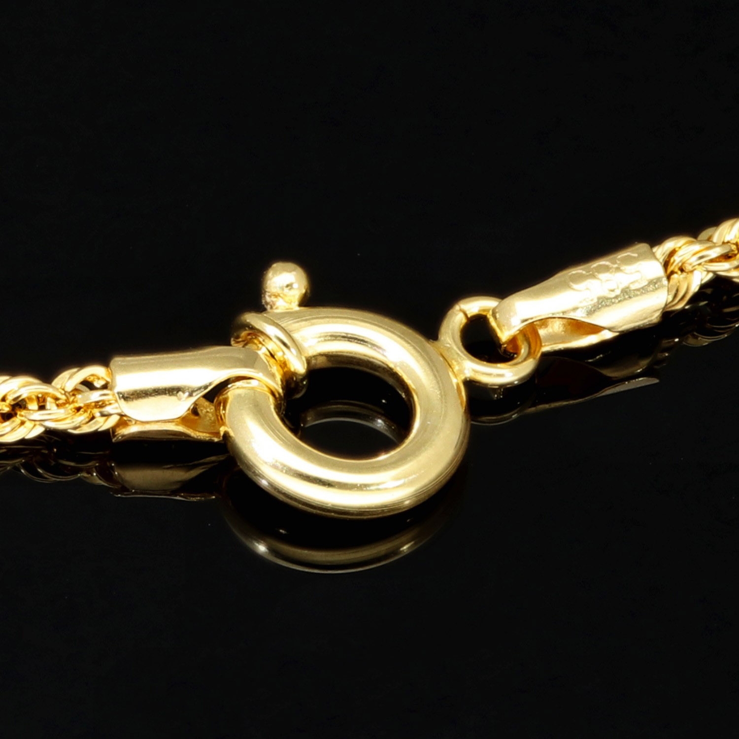 Dieses elegante Twist-Armband vereint zeitlose Schlichtheit mit einem Hauch von Raffinesse. Die fein gedrehte Kordelstruktur aus hochwertigem 585er (14 Karat) Gold sorgt für ein edles Funkeln bei jeder Bewegung. Stilvoll eingearbeitete, facettierte Goldperlen setzen dezente Akzente und verleihen dem Armband eine besondere Note.