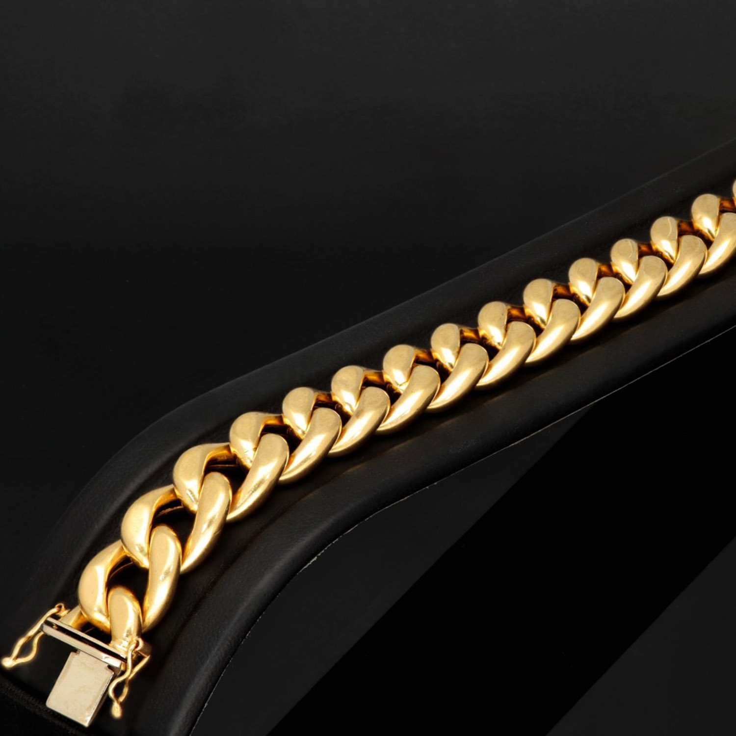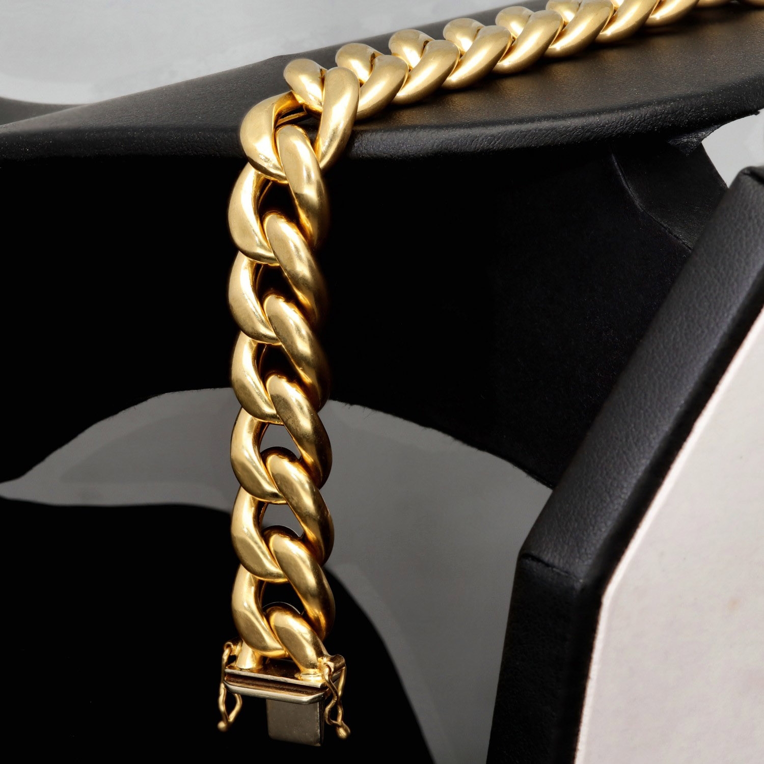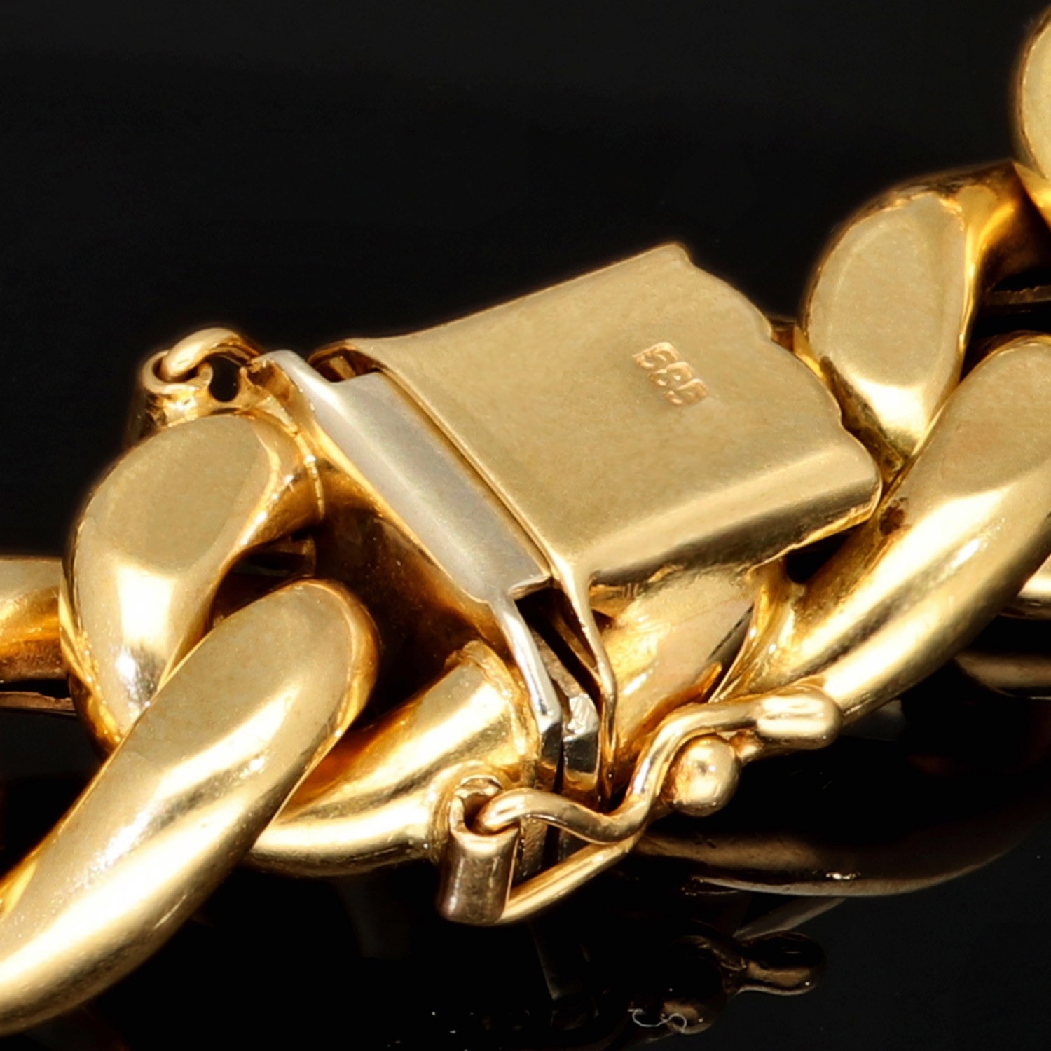 Dieses beeindruckende XL Panzerarmband aus hochwertigem 585er (14 Karat) Gelbgold vereint kraftvolle Präsenz mit zeitloser Eleganz. Die massiv gearbeiteten Glieder in markanter 12 mm Breite verleihen dem Armband einen luxuriösen und zugleich selbstbewussten Charakter.