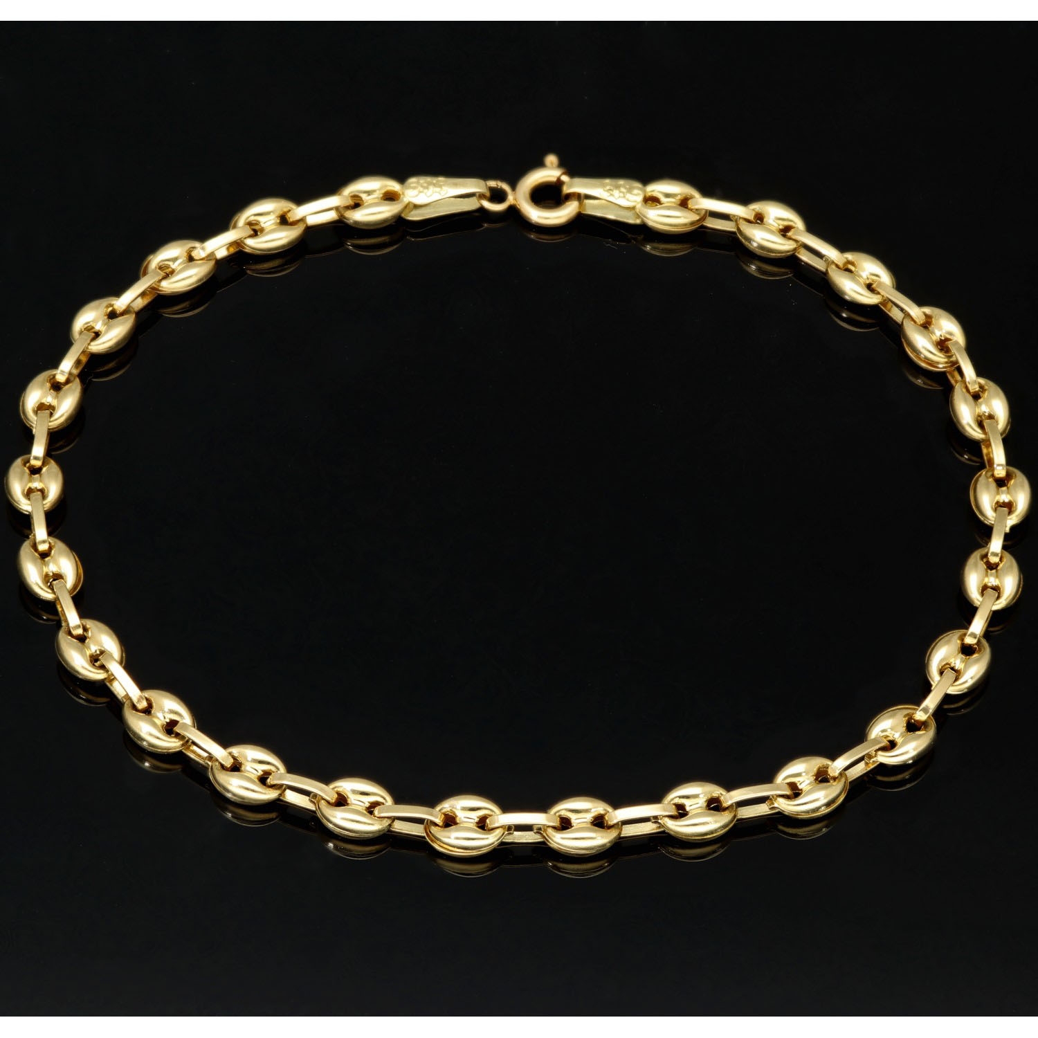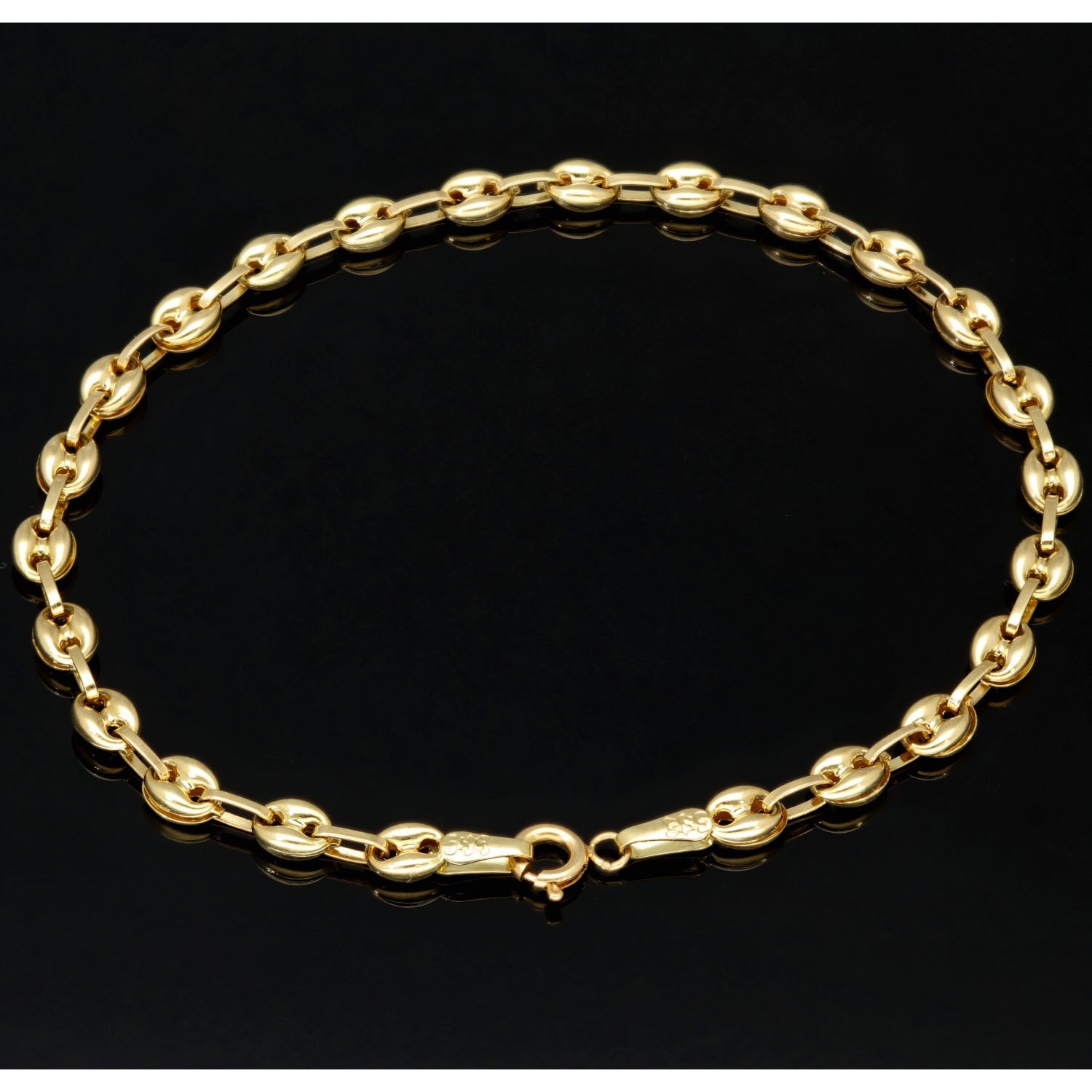 Glänzendes Bohnenarmband / Gold-Armband aus edlem 14K 585 Gold (Gelbgold), ca. 19 cm lang, ca. 4mm