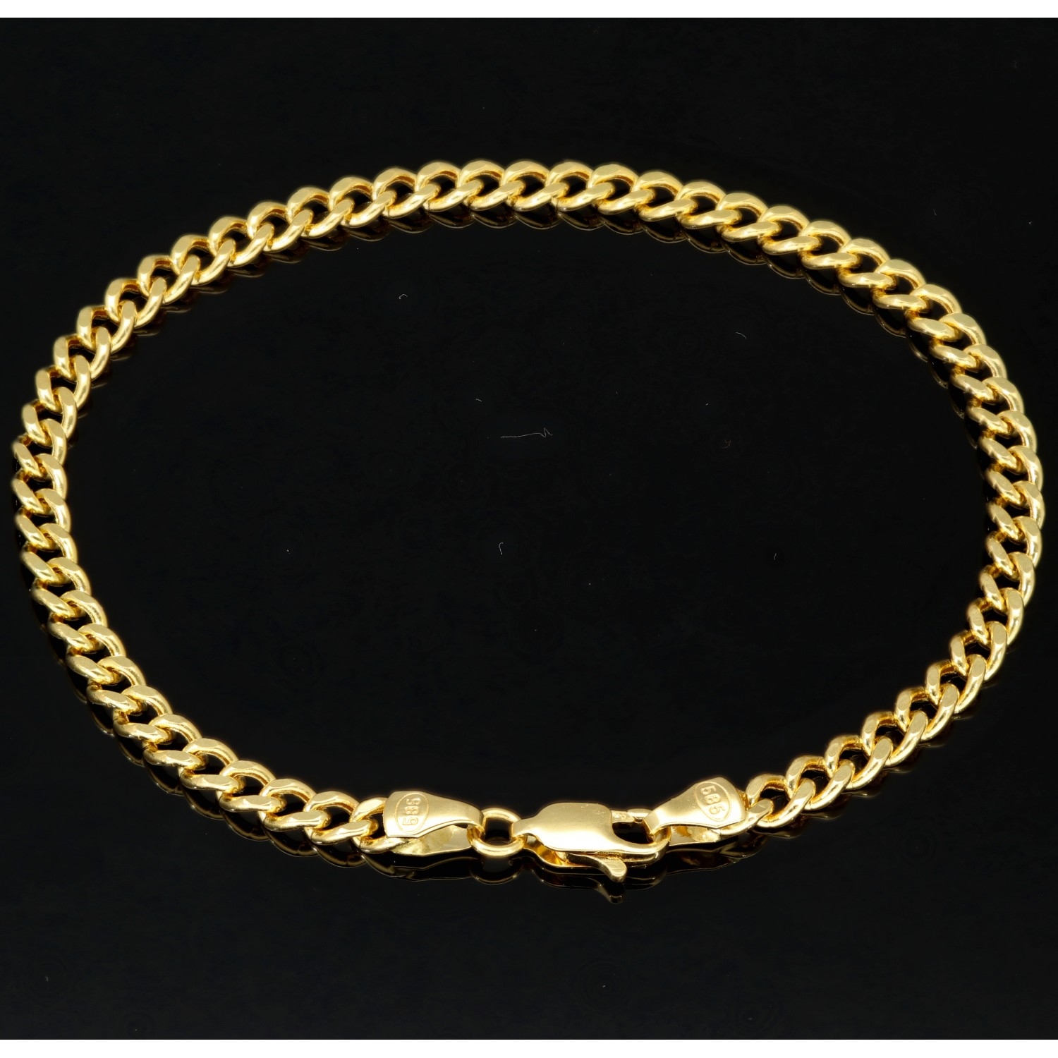 Hochwertig verarbeitetes Panzerarmband aus hochglanzpoliertem 585 14k Gold in 4 mm Stärke, ca. 19,5 cm Länge