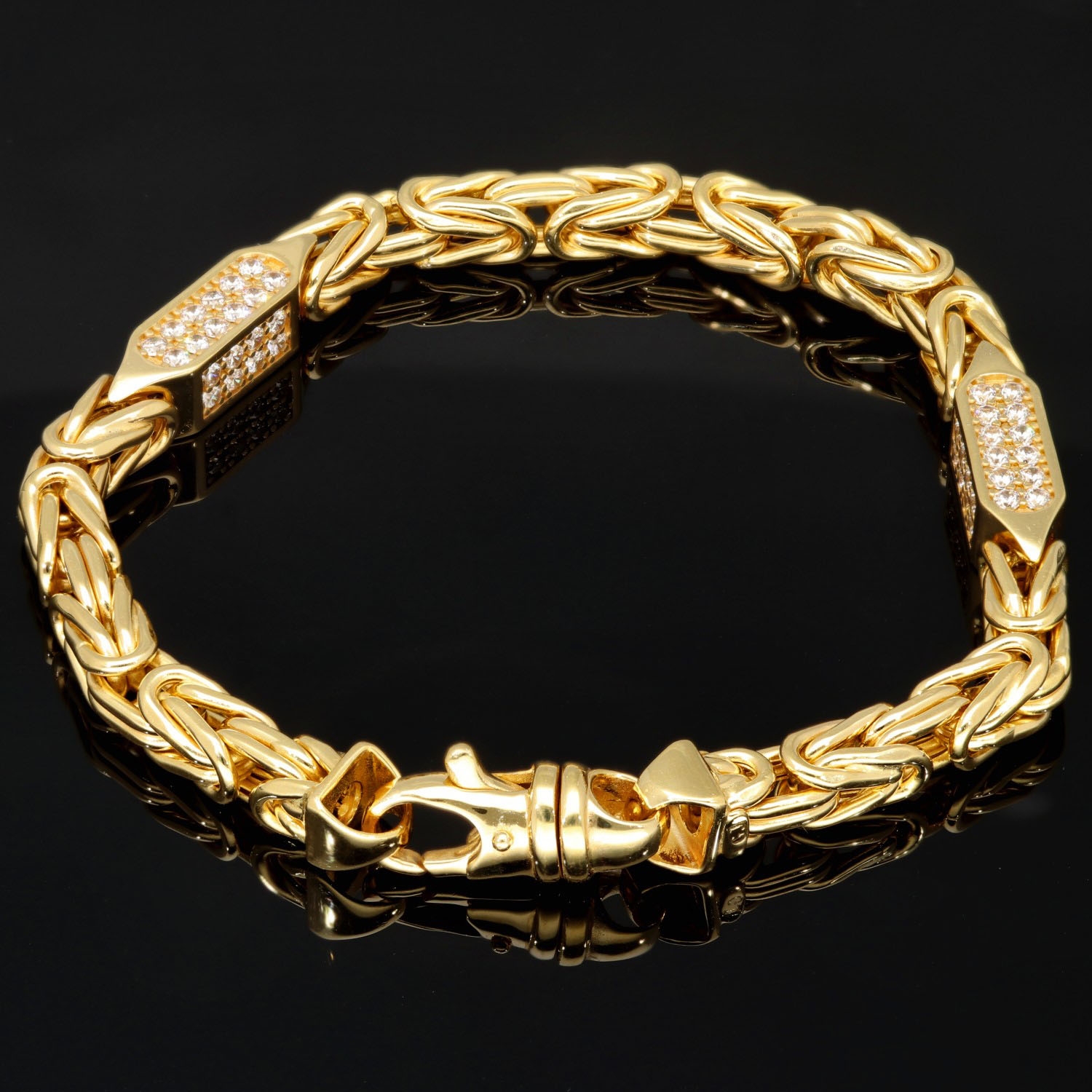 Exklusives Königsarmband aus edlem 585er Gold (14 Karat) im klassischen Gliederdesign. Die fein eingearbeiteten Zirkonia-Steine sorgen für eine dezente, elegante Brillanz und unterstreichen die hochwertige Verarbeitung.