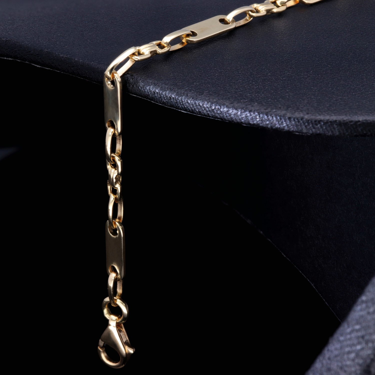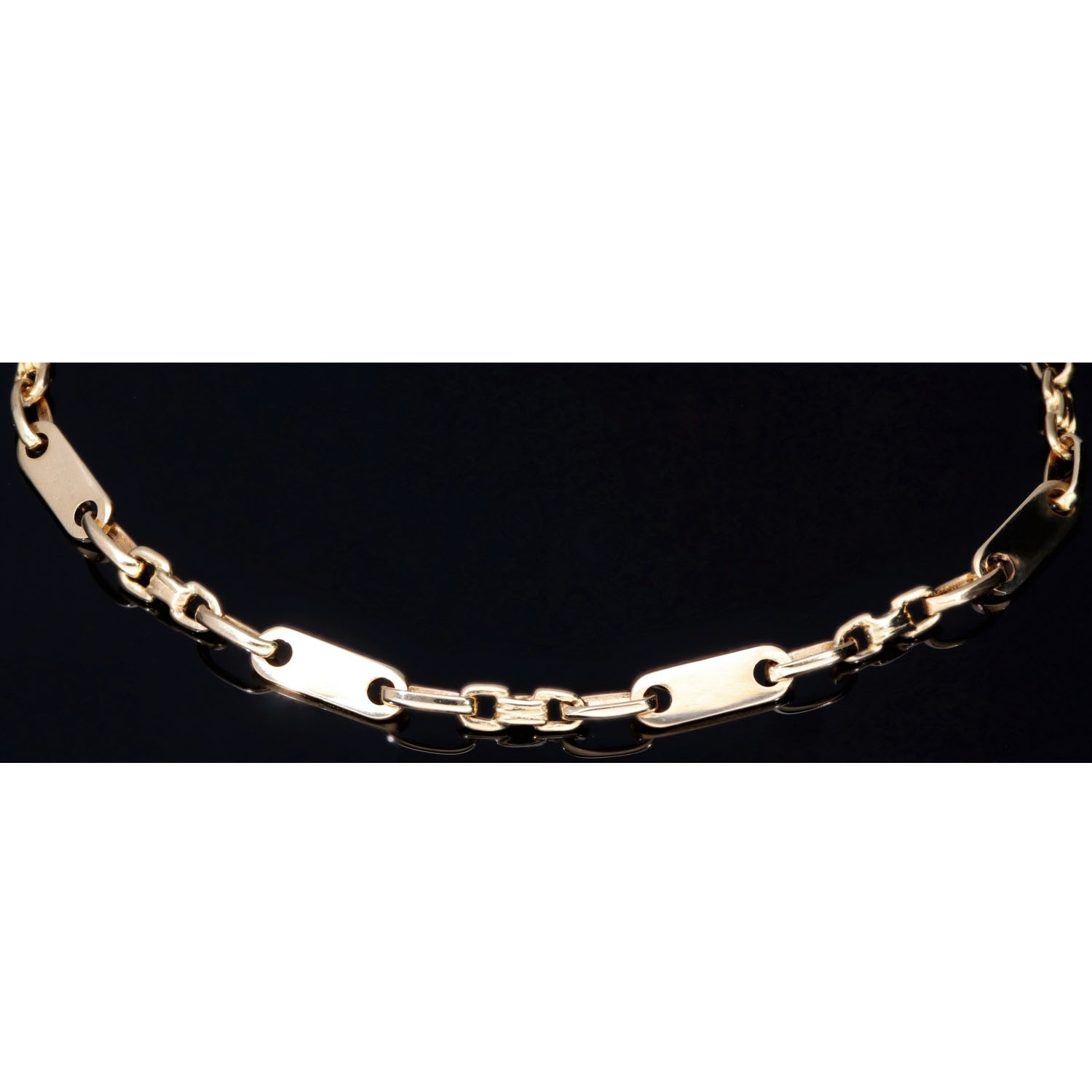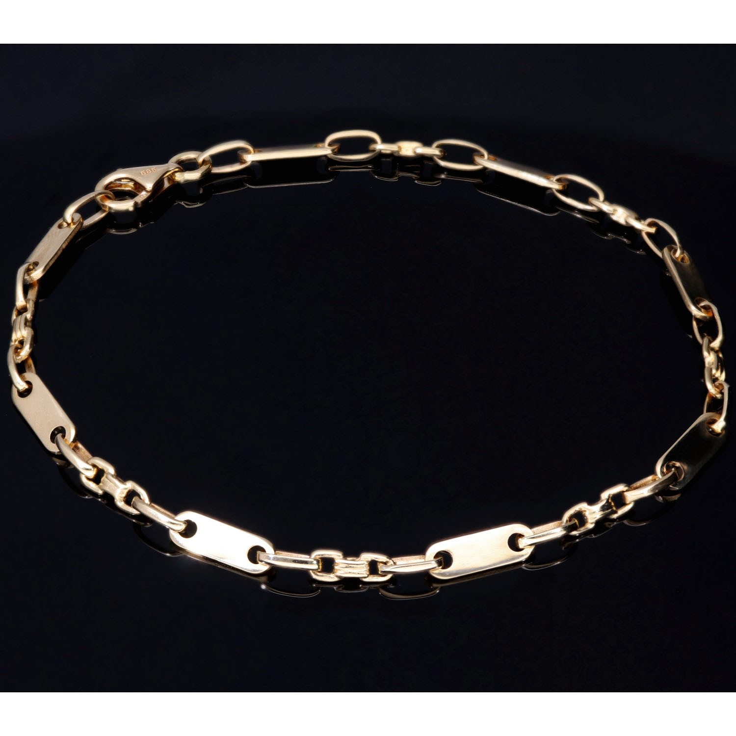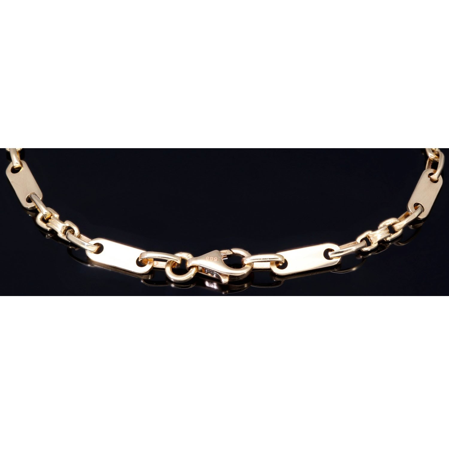 Steigbügel- und Plattenarmband aus edlem 585er (14k) Gelbgold, 23cm lang, 4mm breit (Plättchen-, Steigbügelarmband)