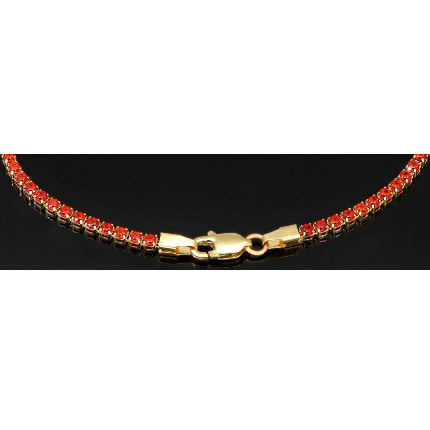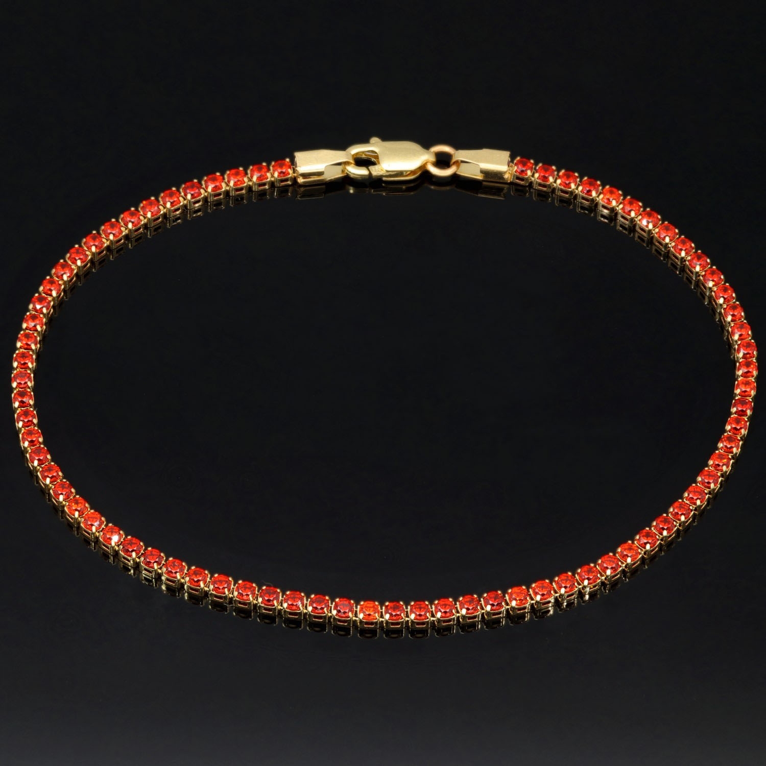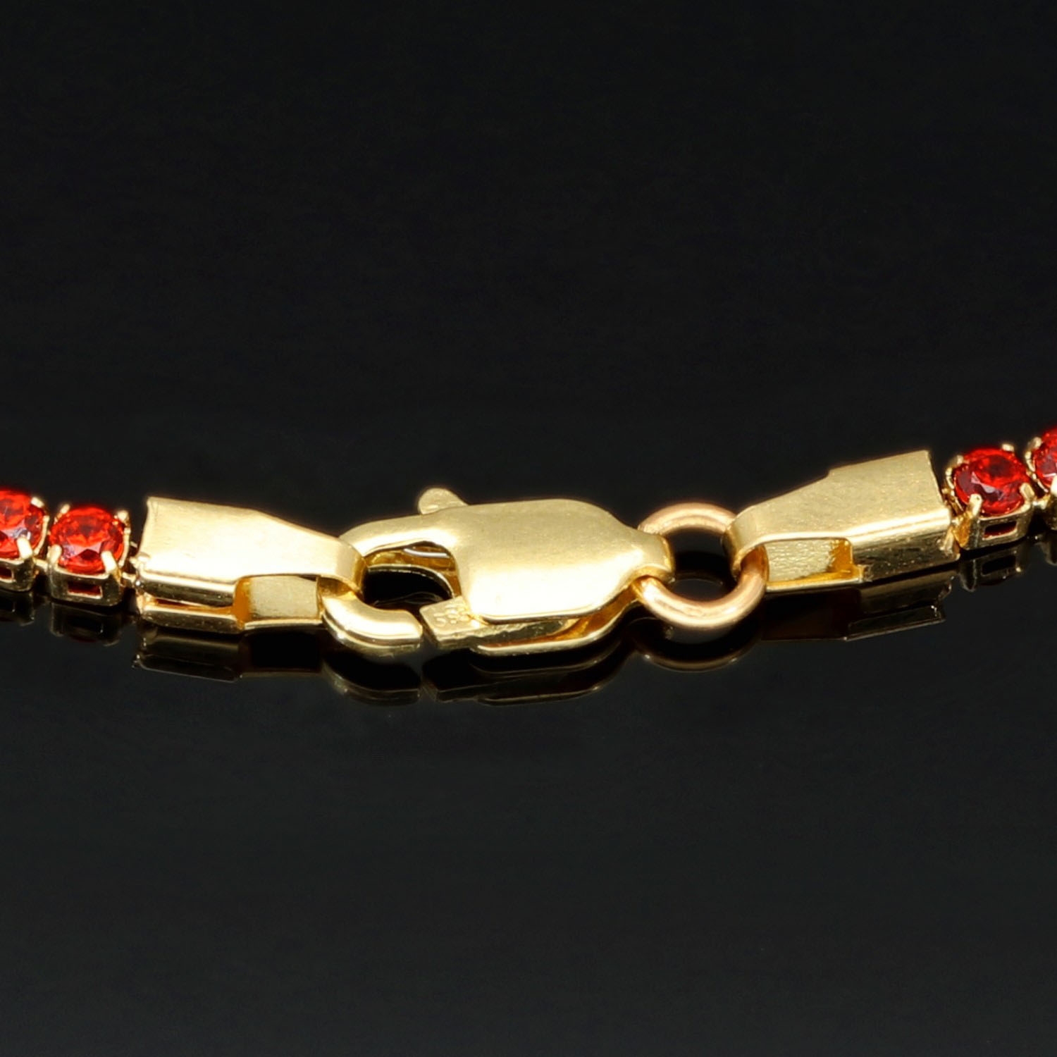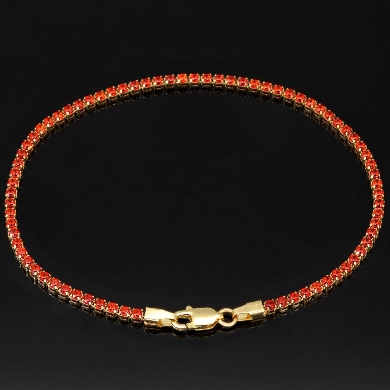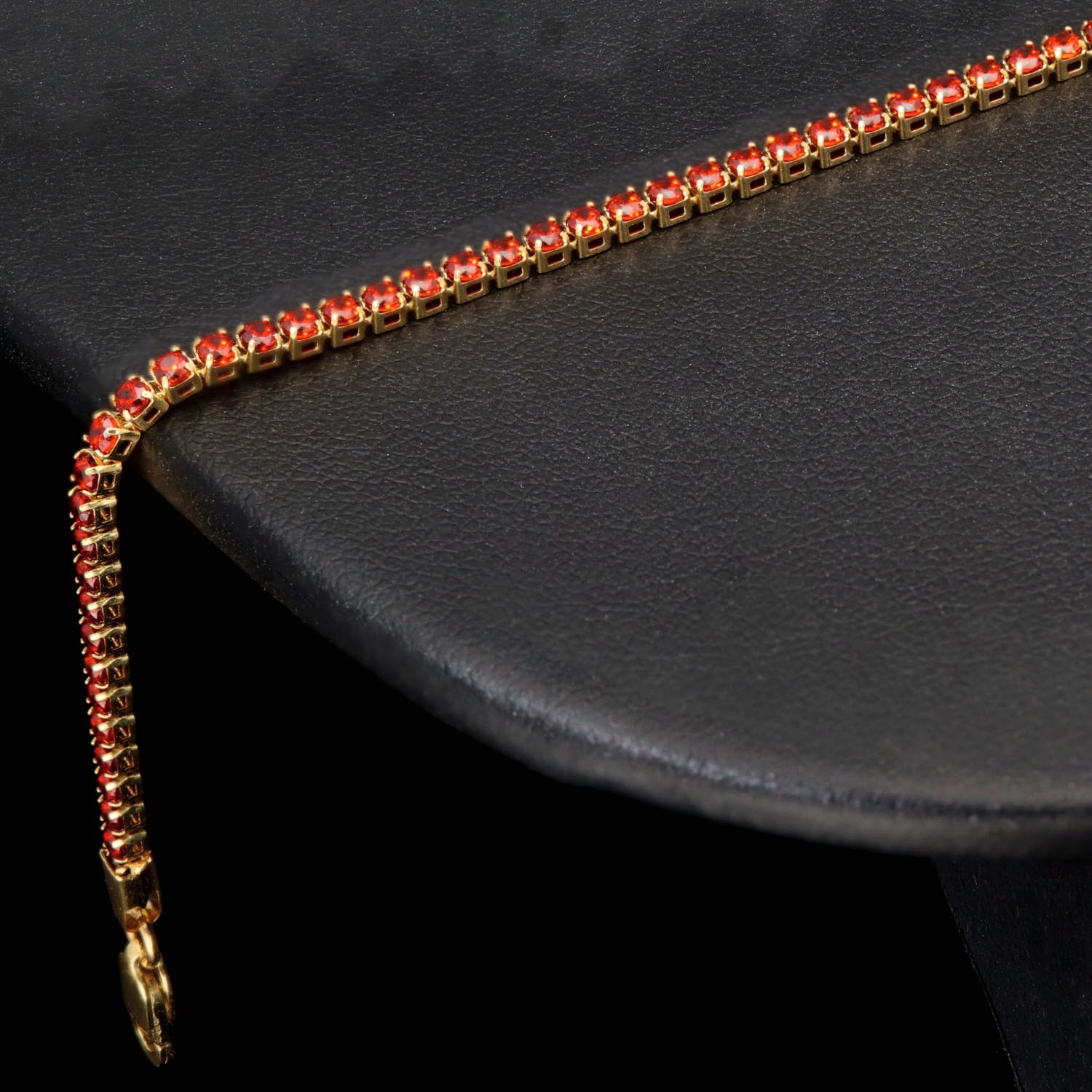 Tennisarmband aus 14K (585) Gelbgold mit leuchtend feuerroten Zirkoniasteinen (rot-orange) – ca. 17,5 cm Länge