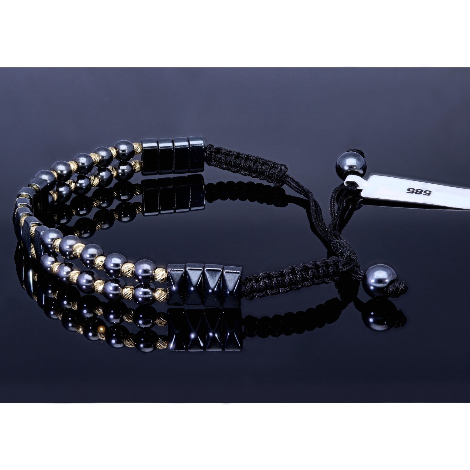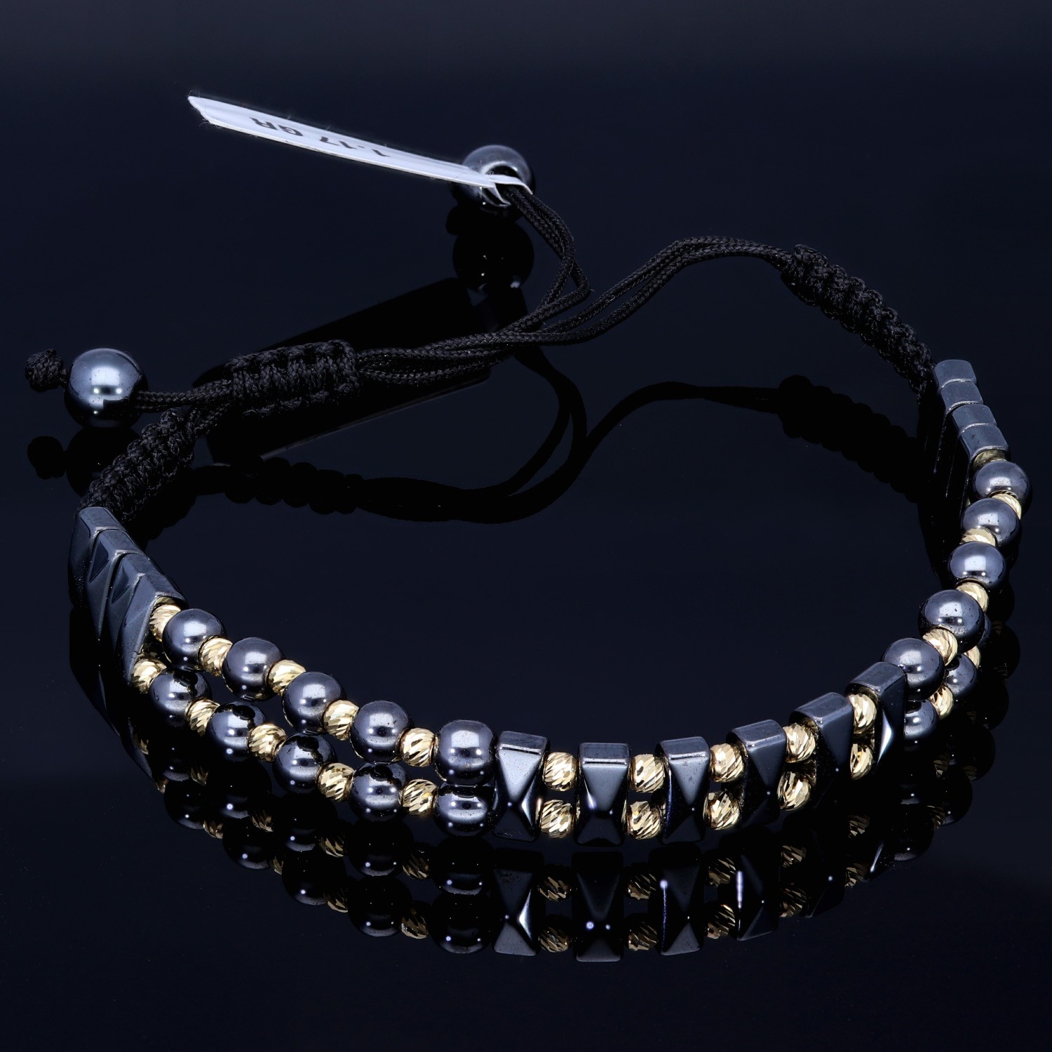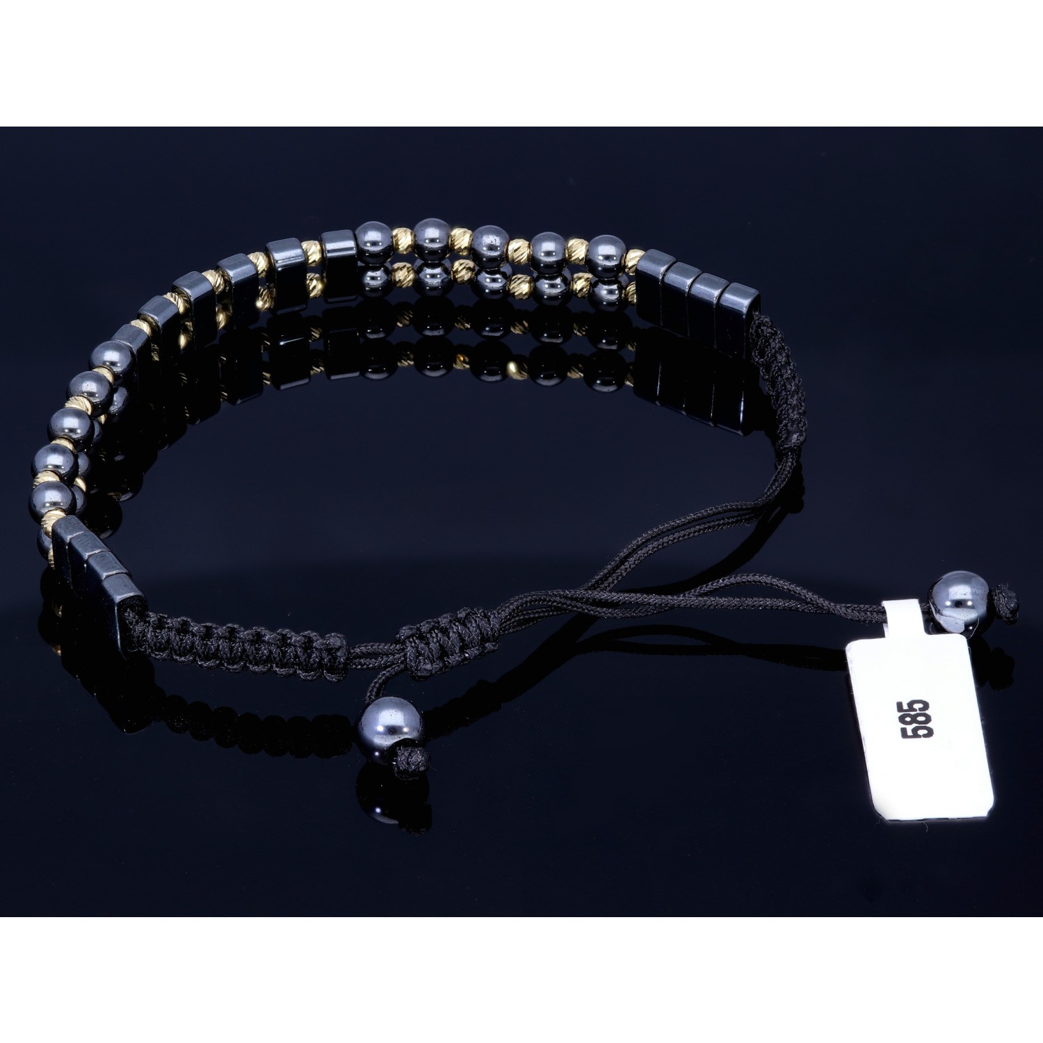 Trendiges Kugel Zug-Armband in modernem Design mit 30 Perlen aus hochwertigem Gold in 585 / 14K und glänzenden, grauschwarzen Beads und Elementen
