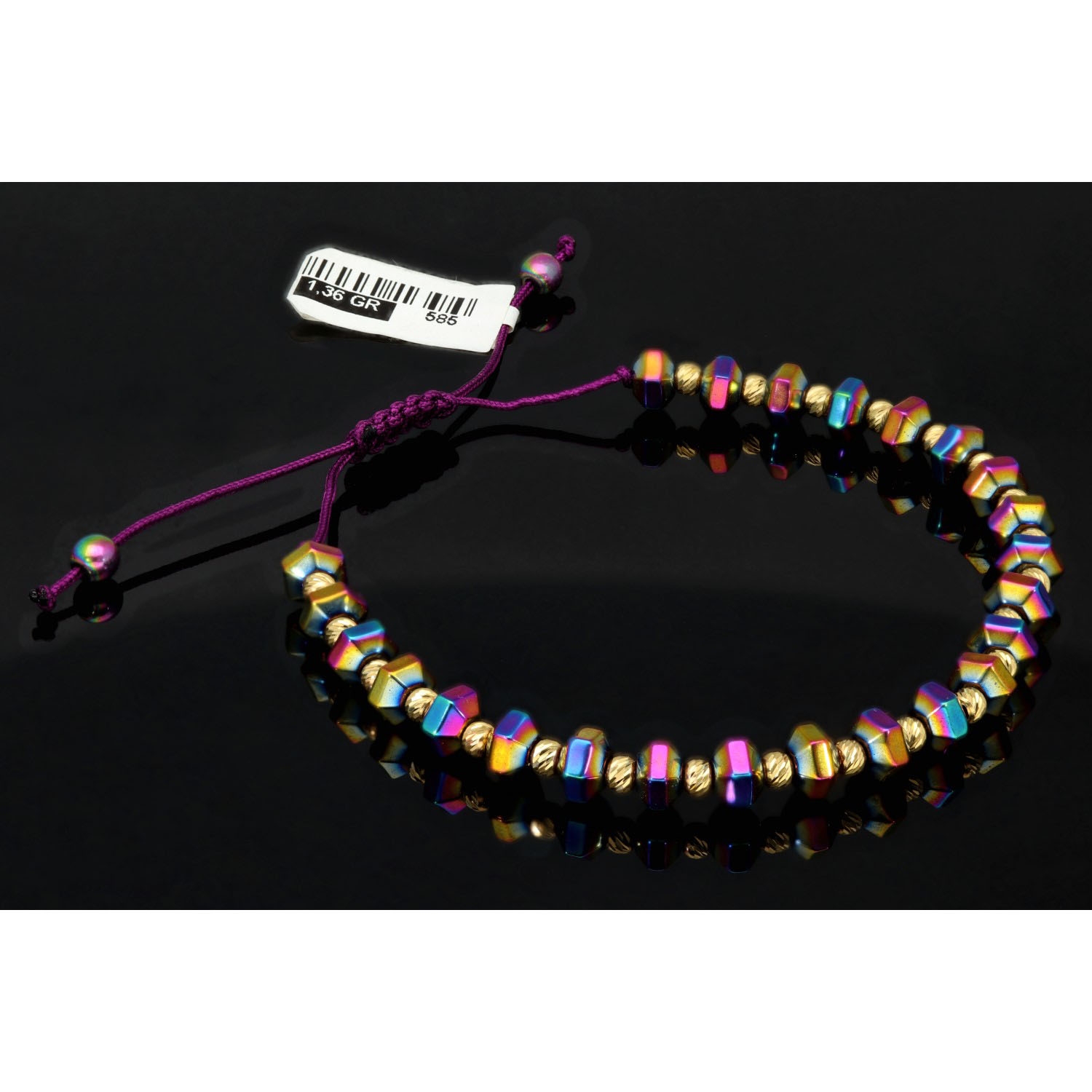 Trendiges Zugarmband bestückt mit Goldperlen aus hochwertigem 585 14K Gold und farbenfrohen, schimmernden Beads mit Flip Flop Effekt - längenverstellbar von 17cm -25cm