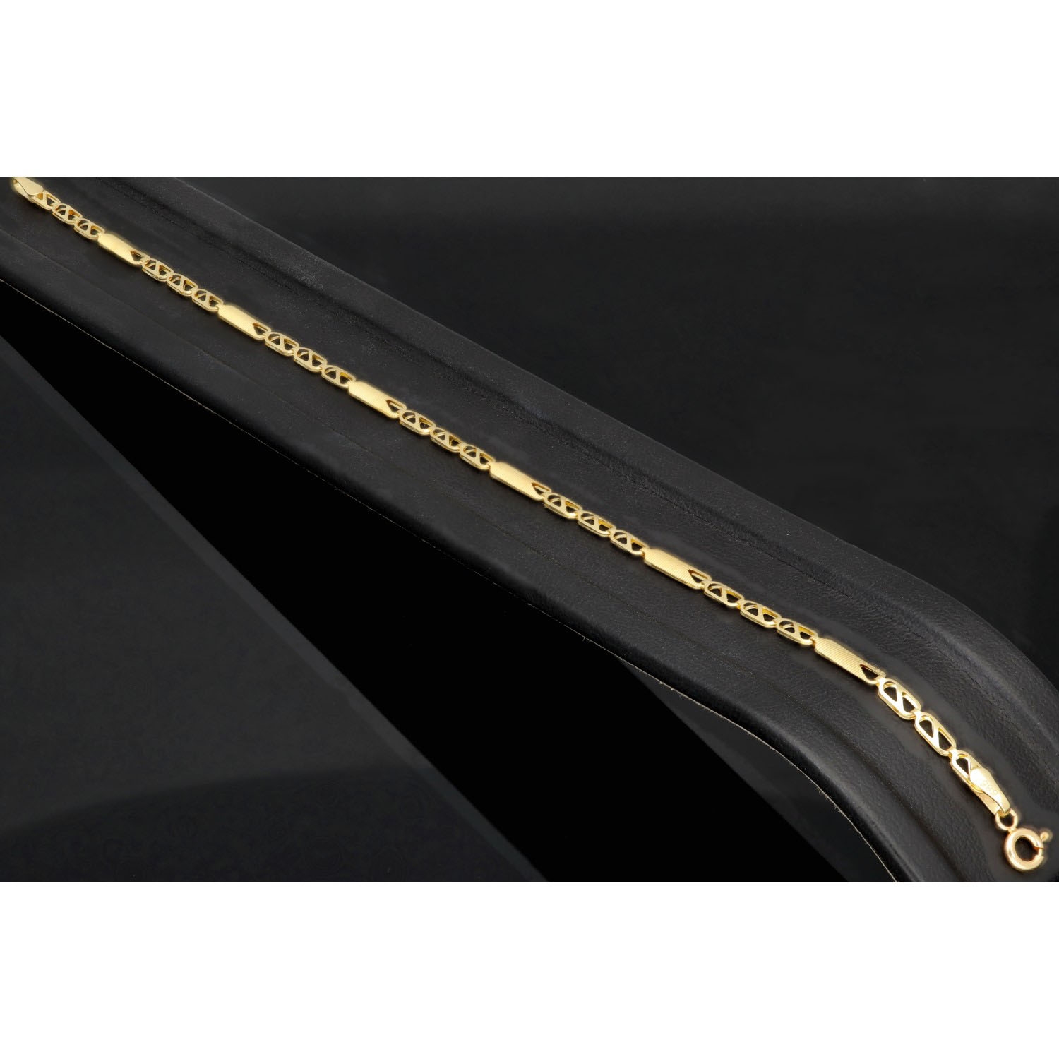 Dieses elegante Armband aus hochwertigem 585 (14 Karat) Gold besticht durch sein filigranes, stilvolles Design. Die kunstvoll gearbeiteten Glieder verleihen dem Schmuckstück eine edle und zugleich moderne Ausstrahlung.
