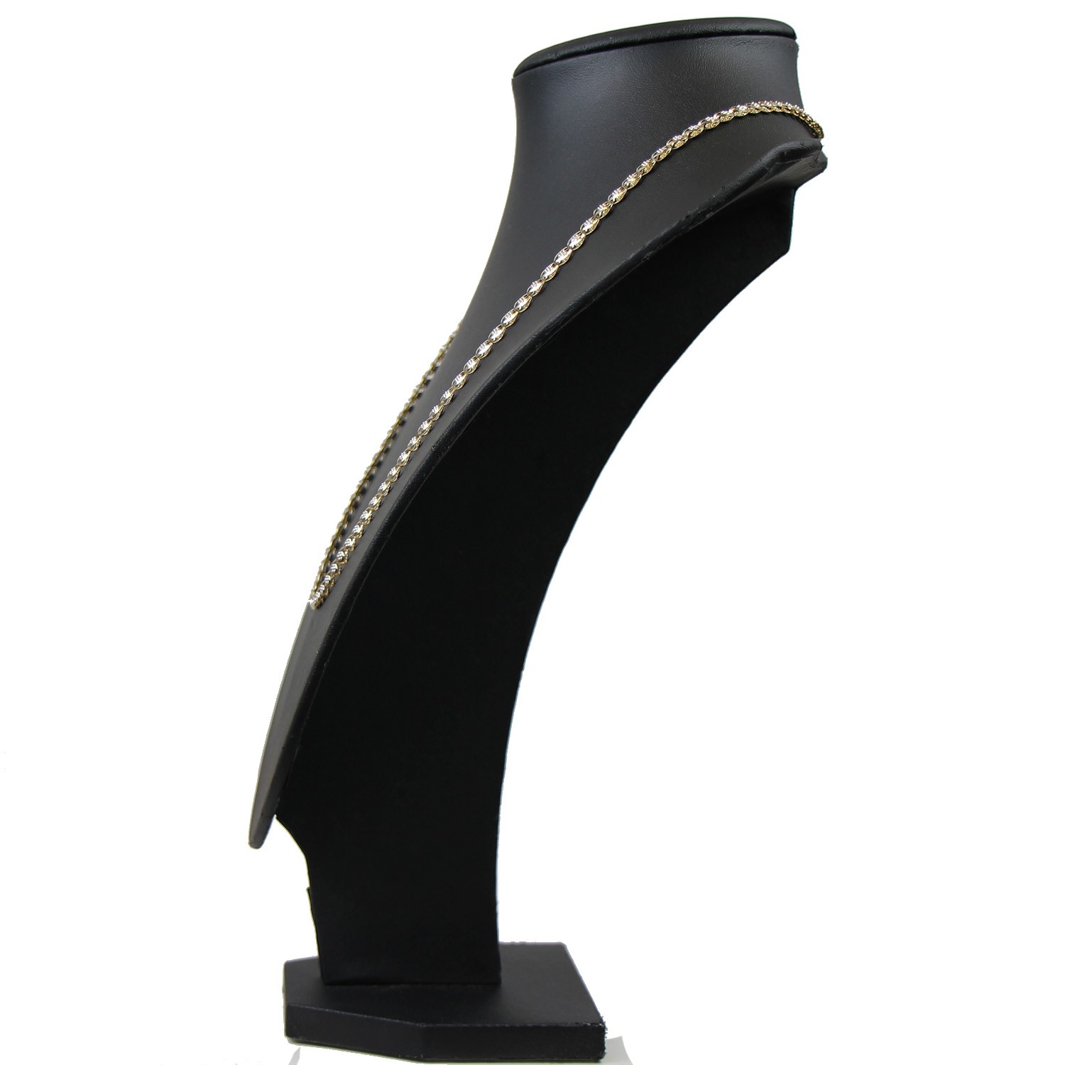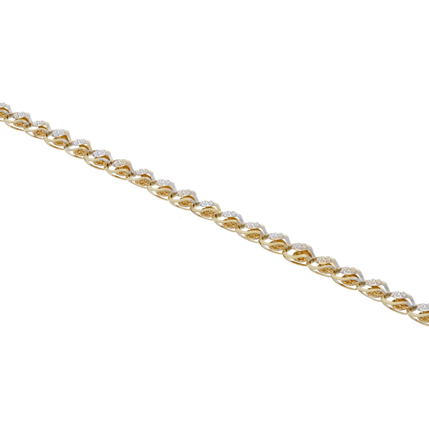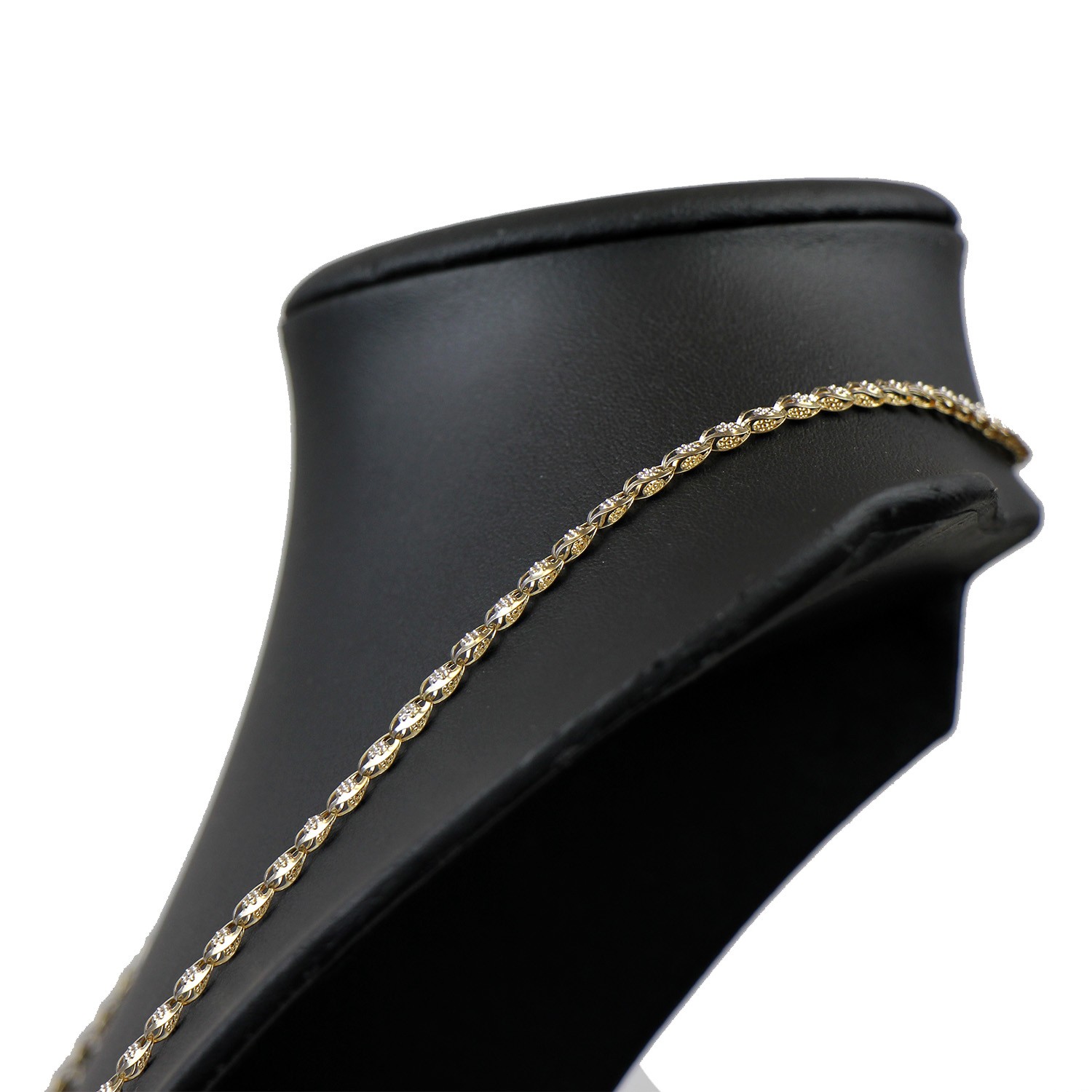 Diese wunderschöne Designerkette für Damen hat ein filigranes, außergewöhnliches Muster aus Gelbgold und Weißgold-Elementen.