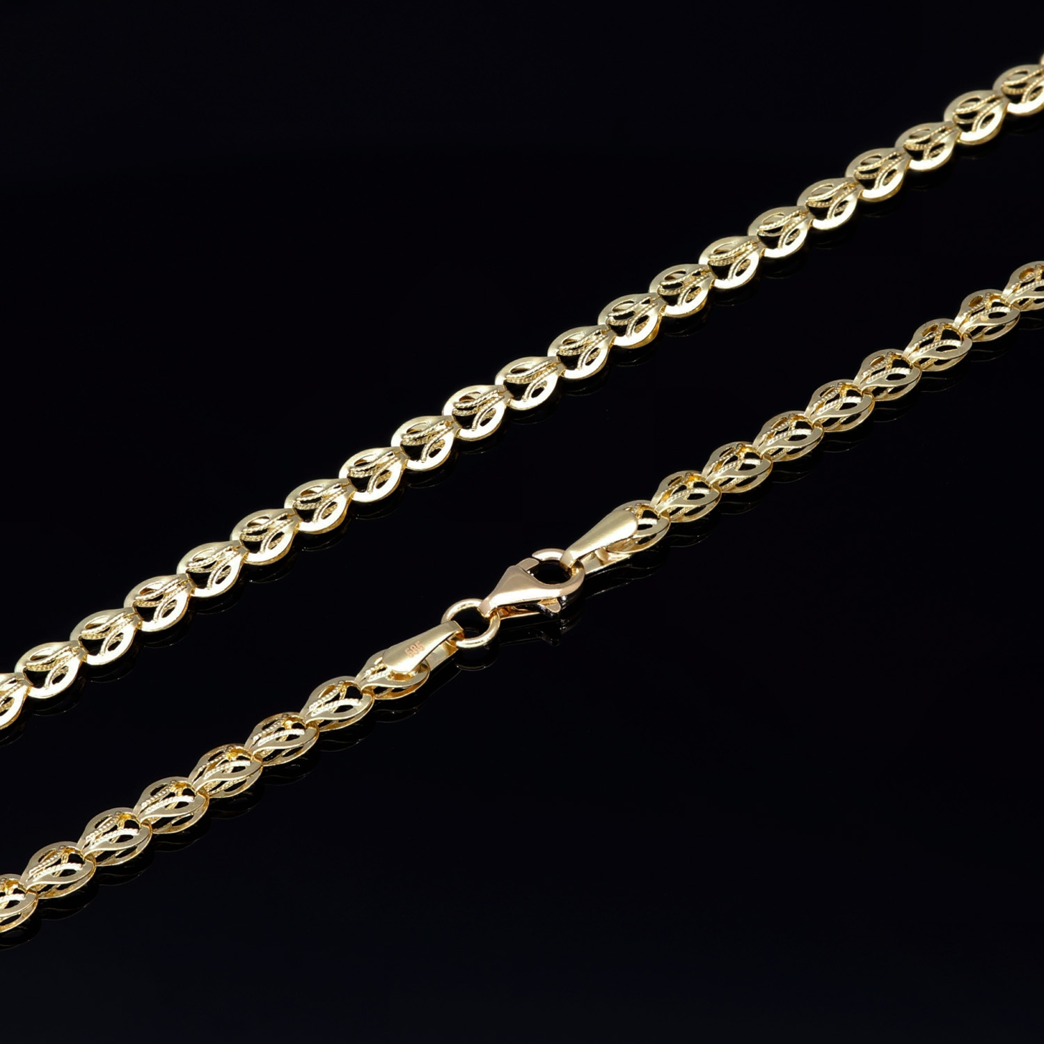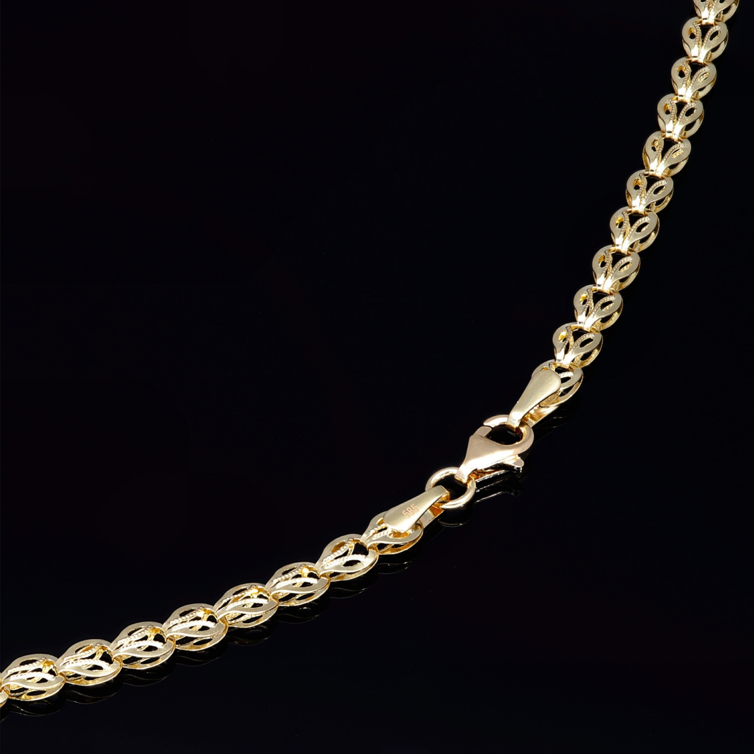 Dieses exklusive Collier für Damen besticht durch sein außergewöhnliches und filigranes Design, das zeitlose Schönheit mit moderner Raffinesse vereint. Gefertigt aus hochwertigem 585er (14 Karat) Gelbgold, überzeugt die Kette durch ihren warmen Glanz und ihre edle Ausstrahlung.