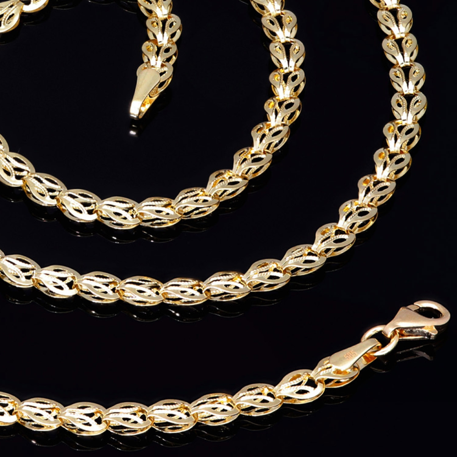 Die kunstvoll gearbeiteten Glieder verleihen dem Schmuckstück eine besondere Leichtigkeit und machen es zu einem stilvollen Blickfang – ob im Alltag oder zu besonderen Anlässen. Mit einer Länge von ca. 54 cm liegt das Collier angenehm am Hals und sorgt für einen eleganten Auftritt.