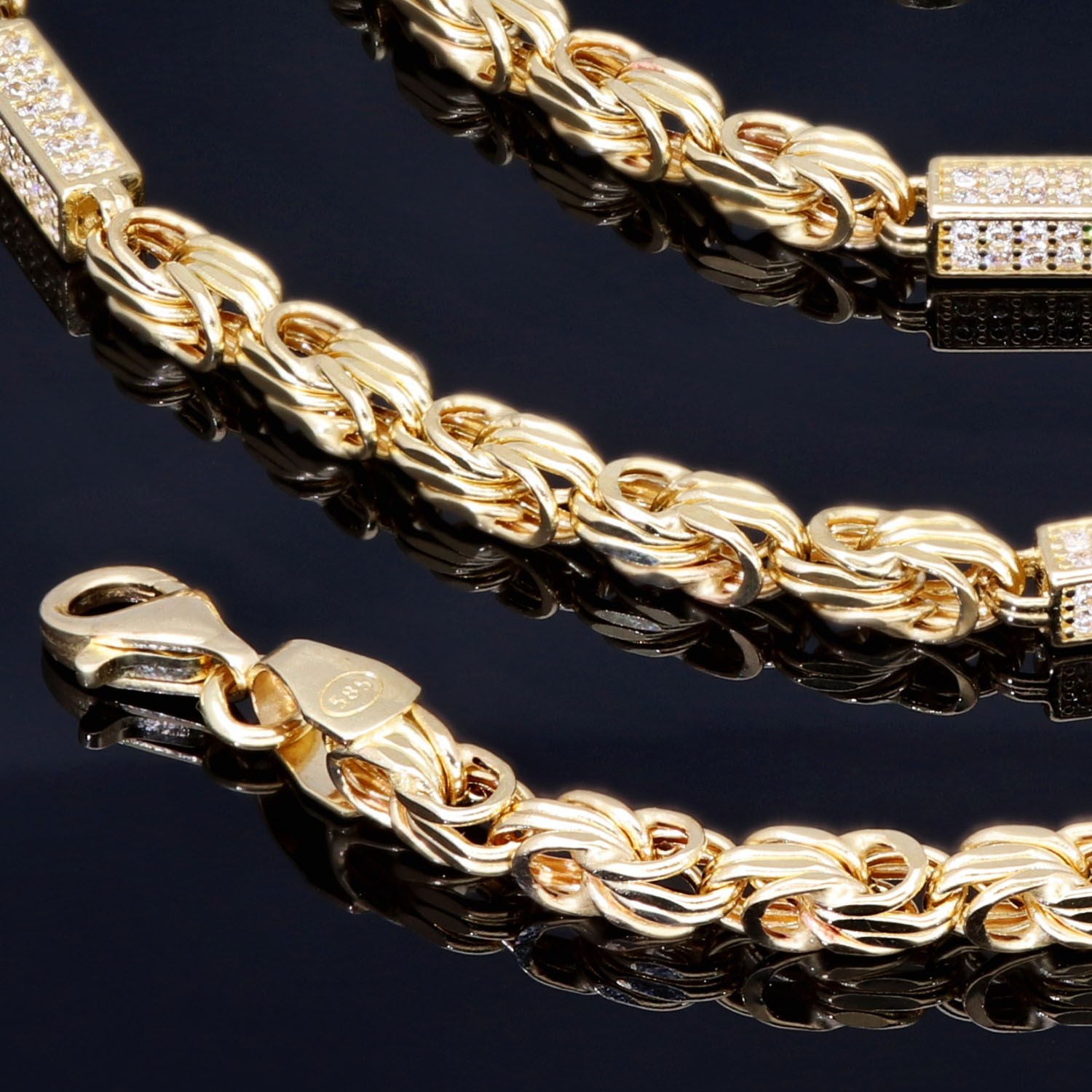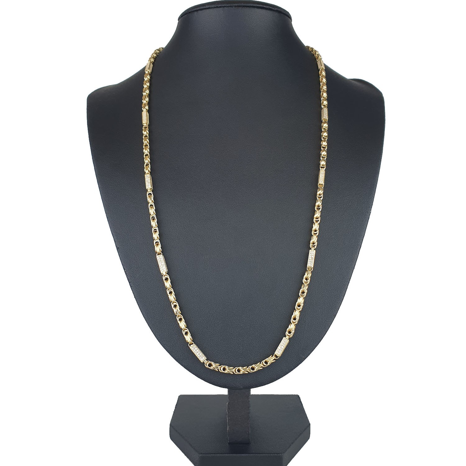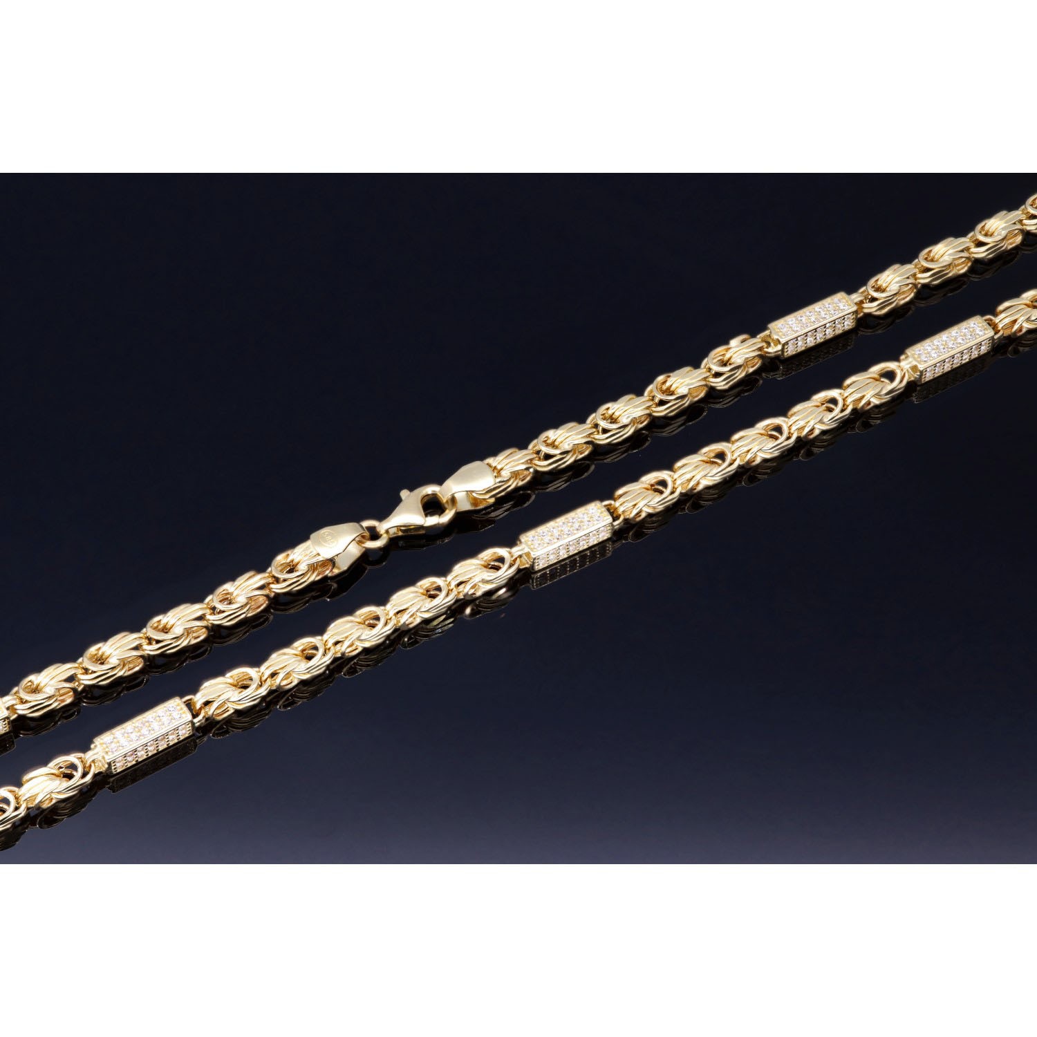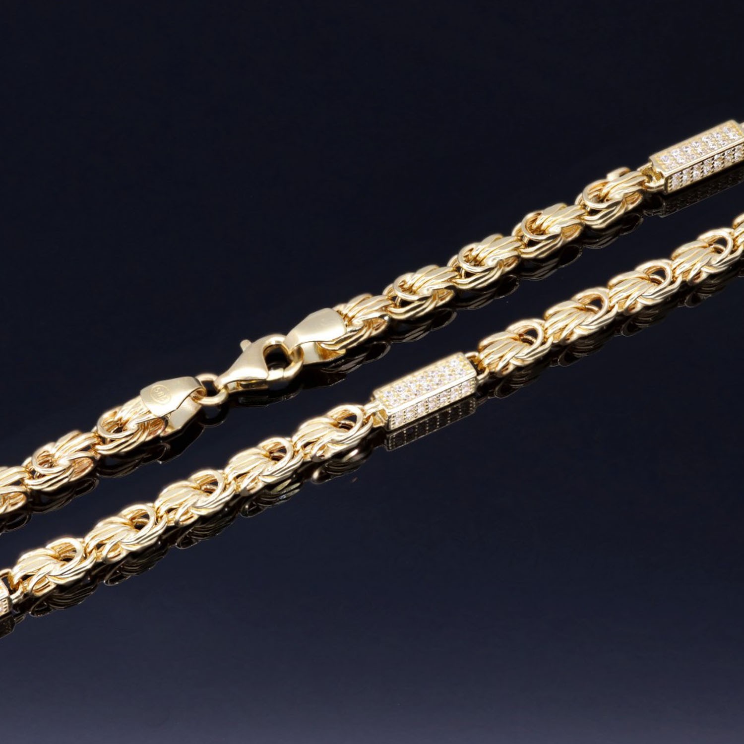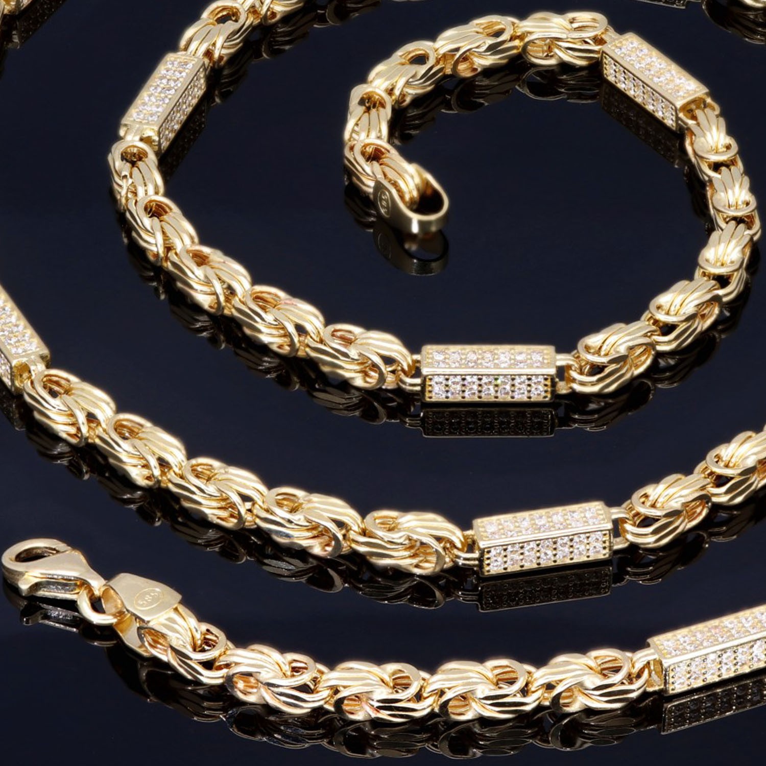 Bling-Bling-Königskette mit Zirkoniabesatz aus 585er Gelbgold (14k)- ca. 65 cm lang, 3,3 mm breit, ca. 17g