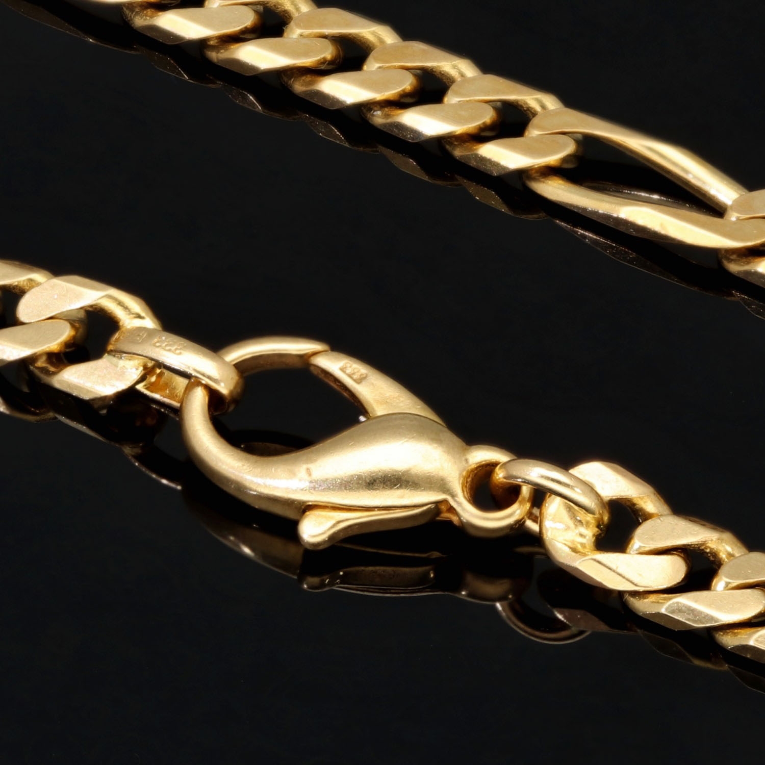 Diese edle Figarokette aus massivem 8K-Gold (333) beeindruckt mit ihrem warmen Glanz und einer klaren, klassischen Linienführung. Die ca. 5 mm breite Ausführung verleiht der Kette eine markante, hochwertige Optik – ideal für alle, die zeitlosen Schmuck mit Präsenz suchen.