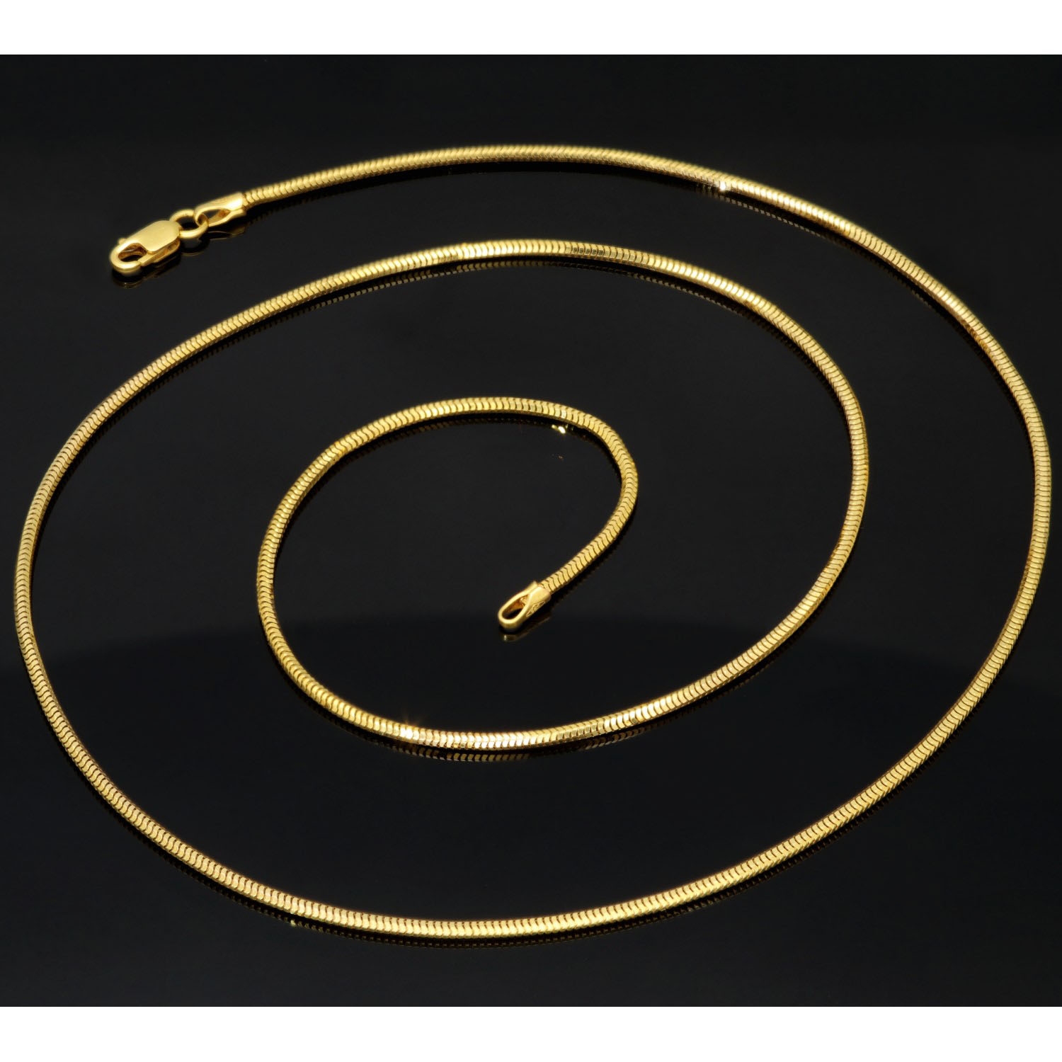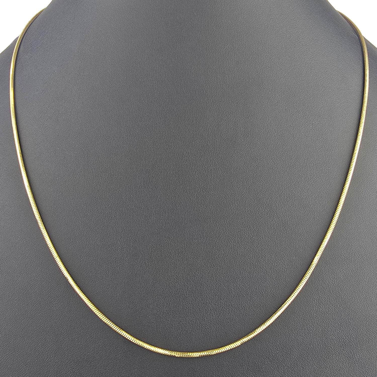 Diese edle Schlangenkette aus exquisitem 14K / 585 Gelbgold überzeugt durch ihre klare Linienführung und ihren luxuriösen Glanz. Mit einer Länge von ca. 45 cm und einer feinen Breite von 1,5 mm schmiegt sich die Kette elegant an den Hals und sorgt für ein stilvolles, modernes Erscheinungsbild.