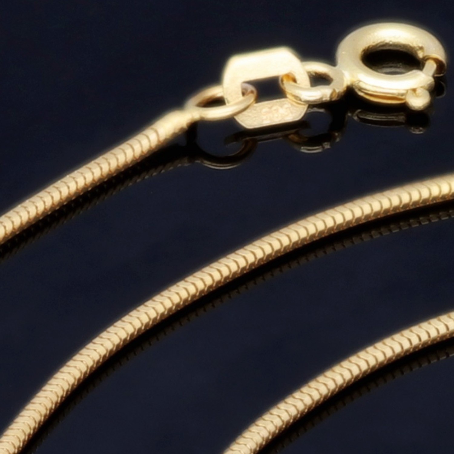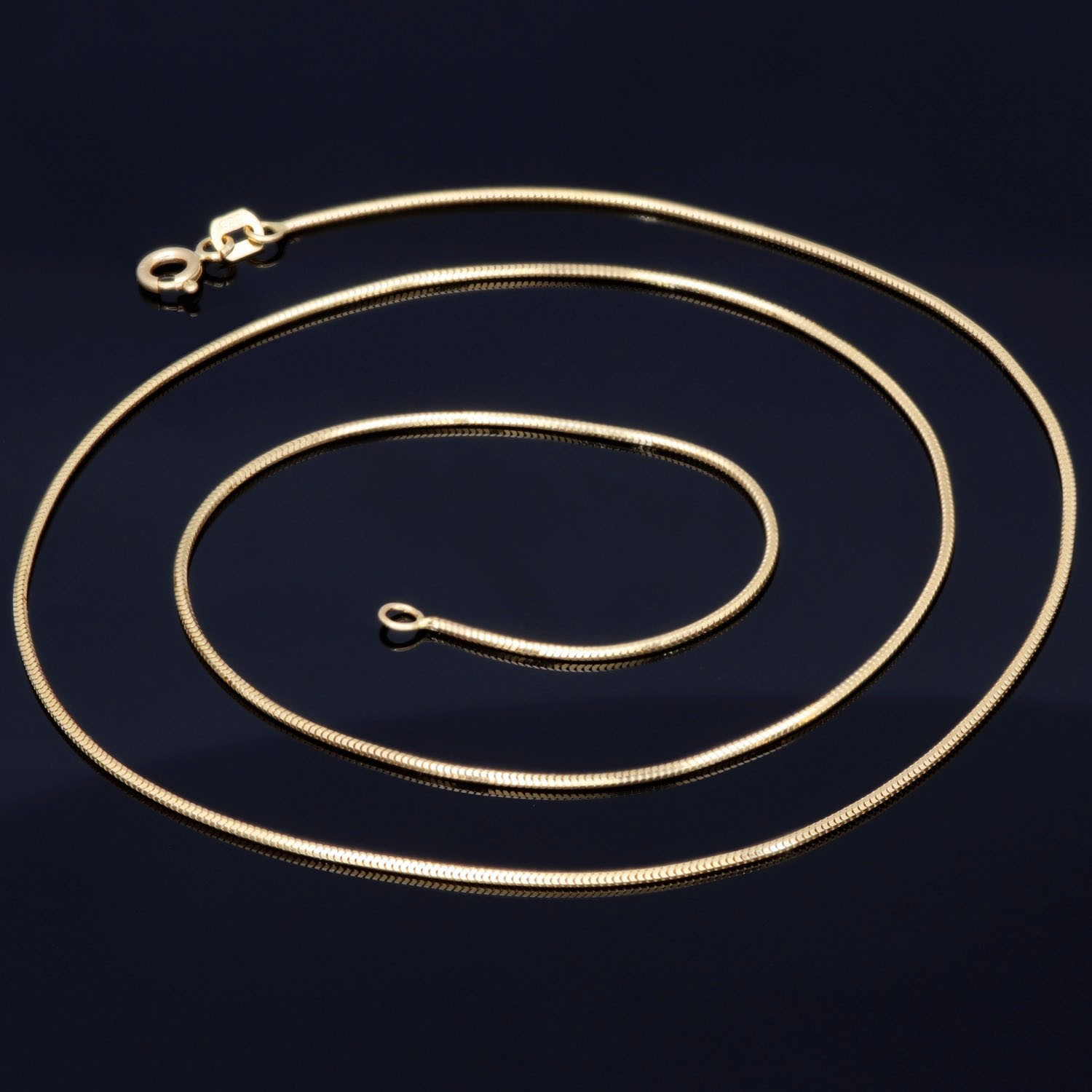Die typische, eng anliegende Struktur der Schlangenkette sorgt für eine glatte, fließende Oberfläche mit dezentem Glanz – ideal sowohl als stilvolles Einzelstück als auch in Kombination mit einem Anhänger. Durch ihre feine Stärke von ca. 1 mm wirkt sie besonders zart und feminin.