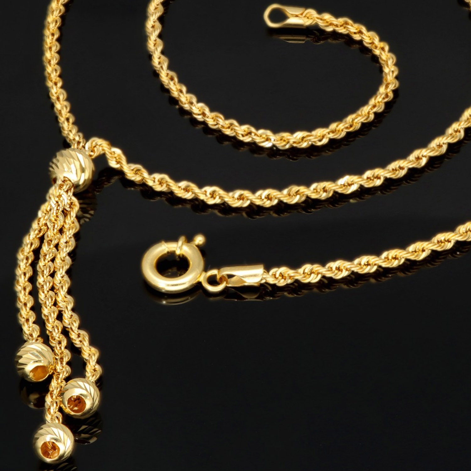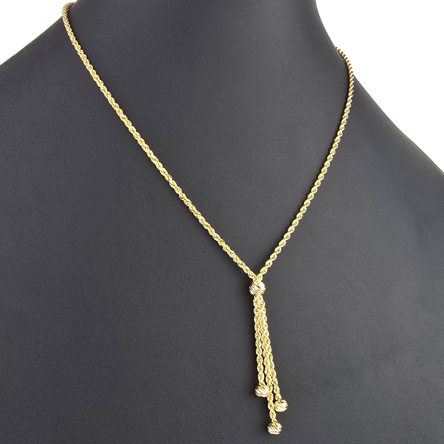 Exquisites Collier Kordelkette mit Quastenanhänger dekoriert mit Goldperlen (ca. 45cm, 2mm) 14K 585 Gold