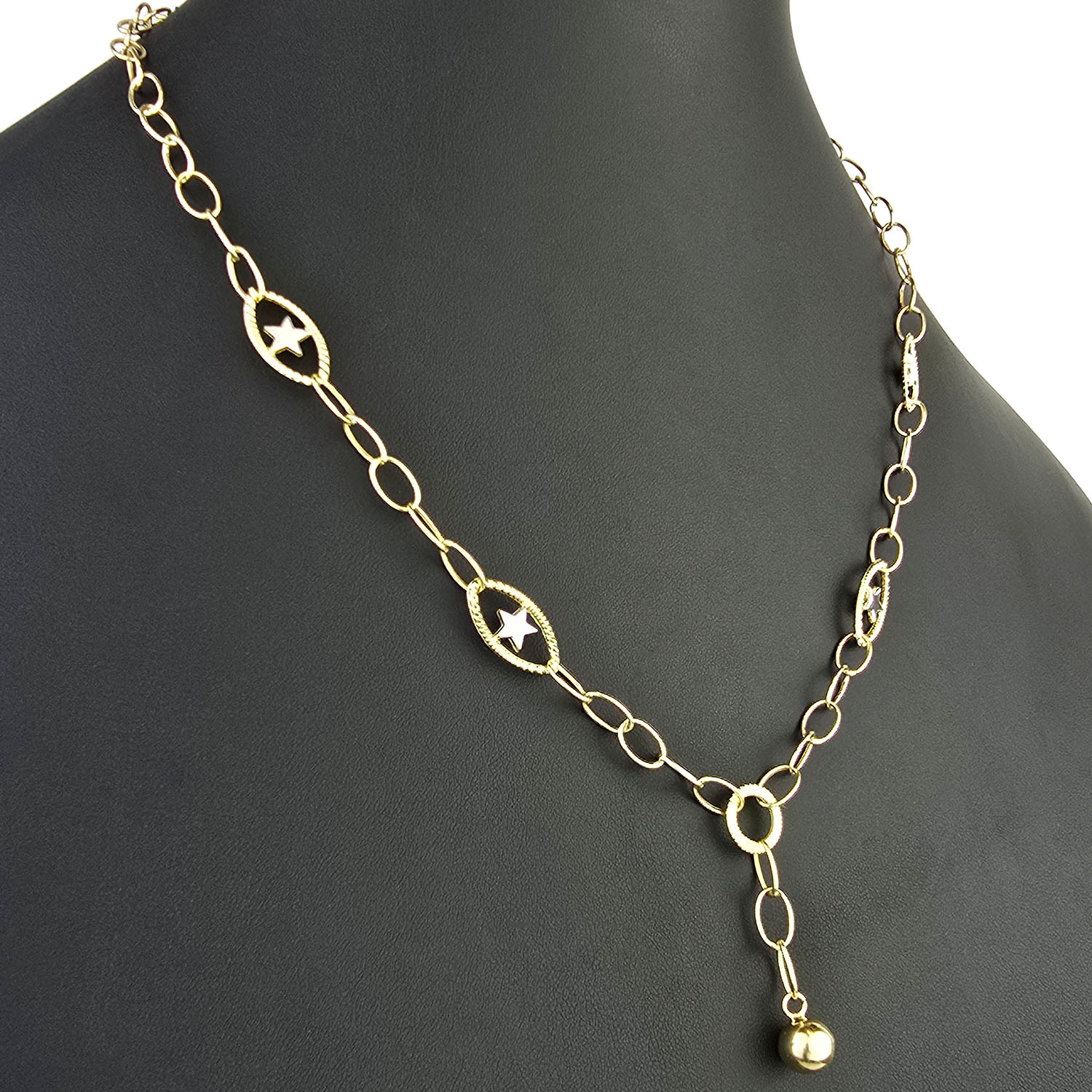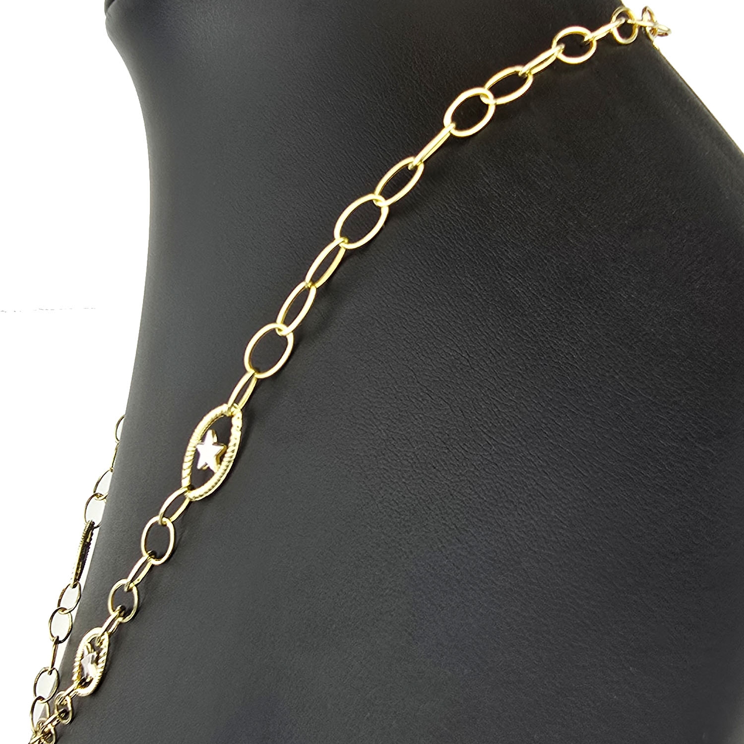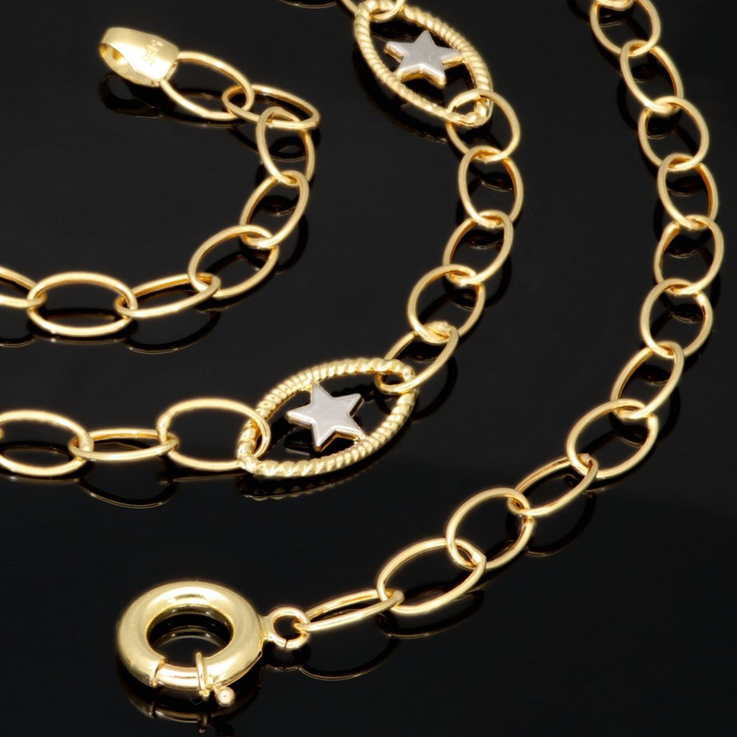 Feine Bicolor-Ankerkette aus hochwertigen 14K 585 Gold (Gelb- und Weißgold) mit dekorativen Stern-Elementen – ca. 50 cm Länge, 4,5 mm Breite