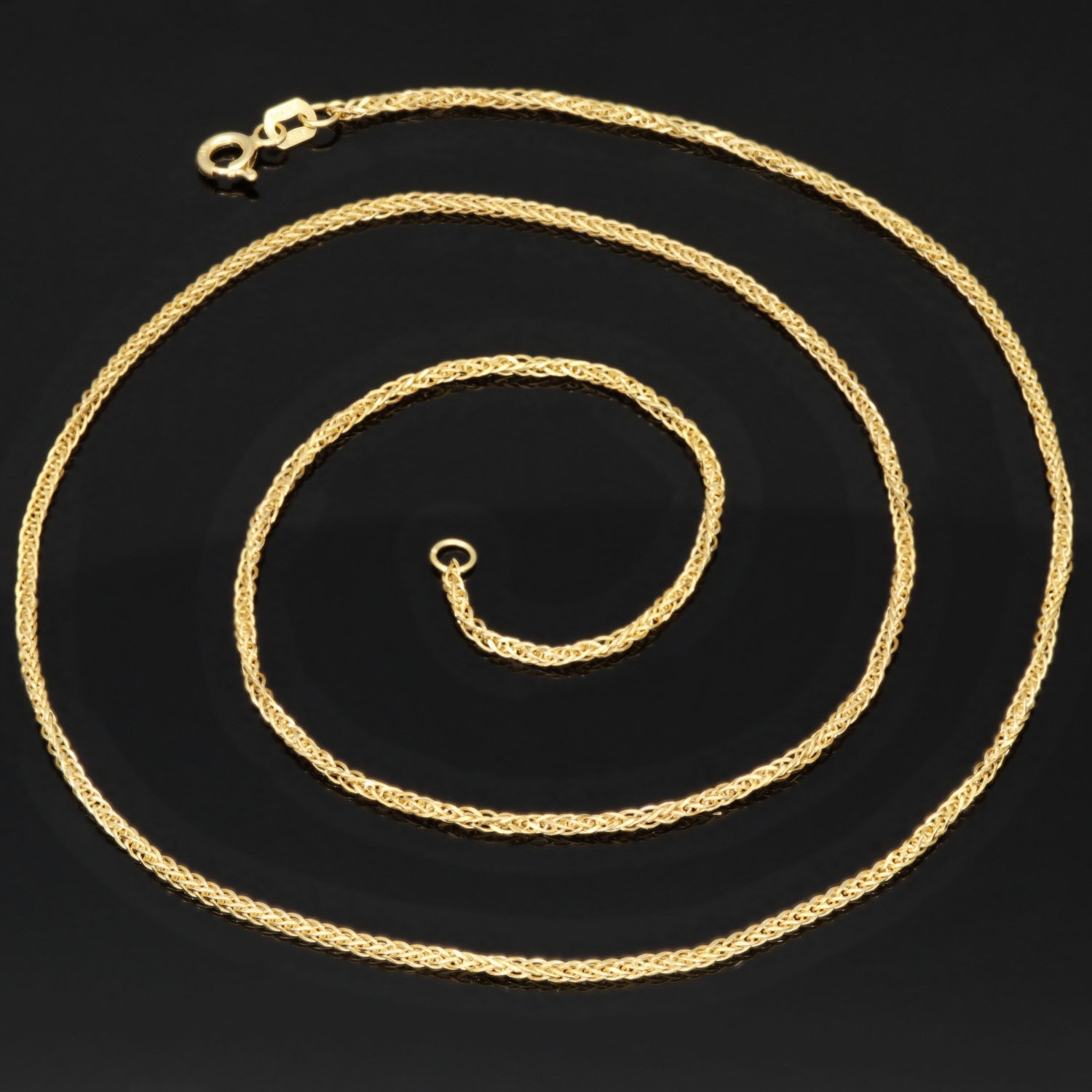 Hochwertige Goldkette / Fuchsschwanzkette mit filigranem Design, bestehend aus beweglichen aufwendig fein ineinander verstrickten Ösengliedern in edlem 585 14k Gelbgold (ca. 50cm lang, ca. 1,5 mm breit)