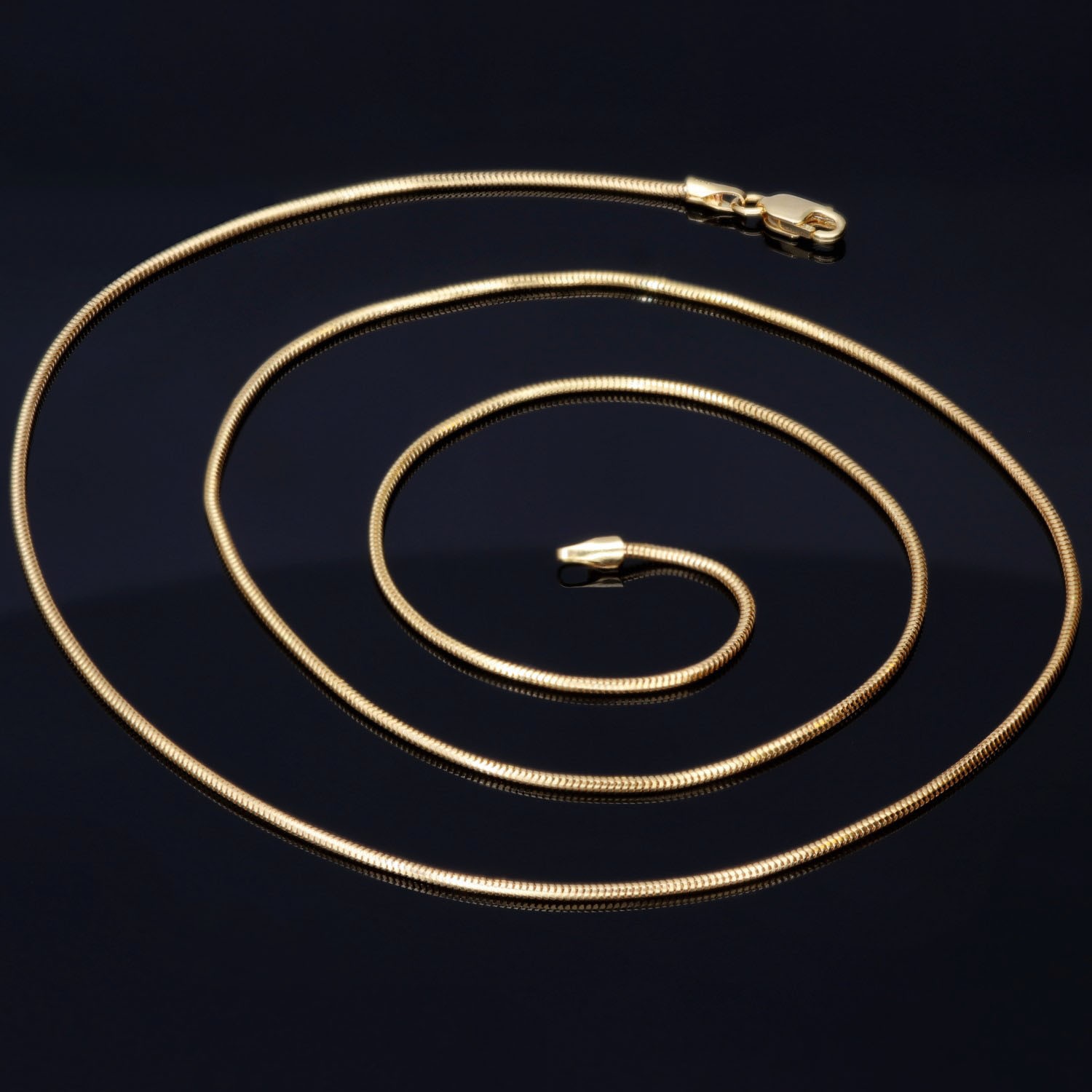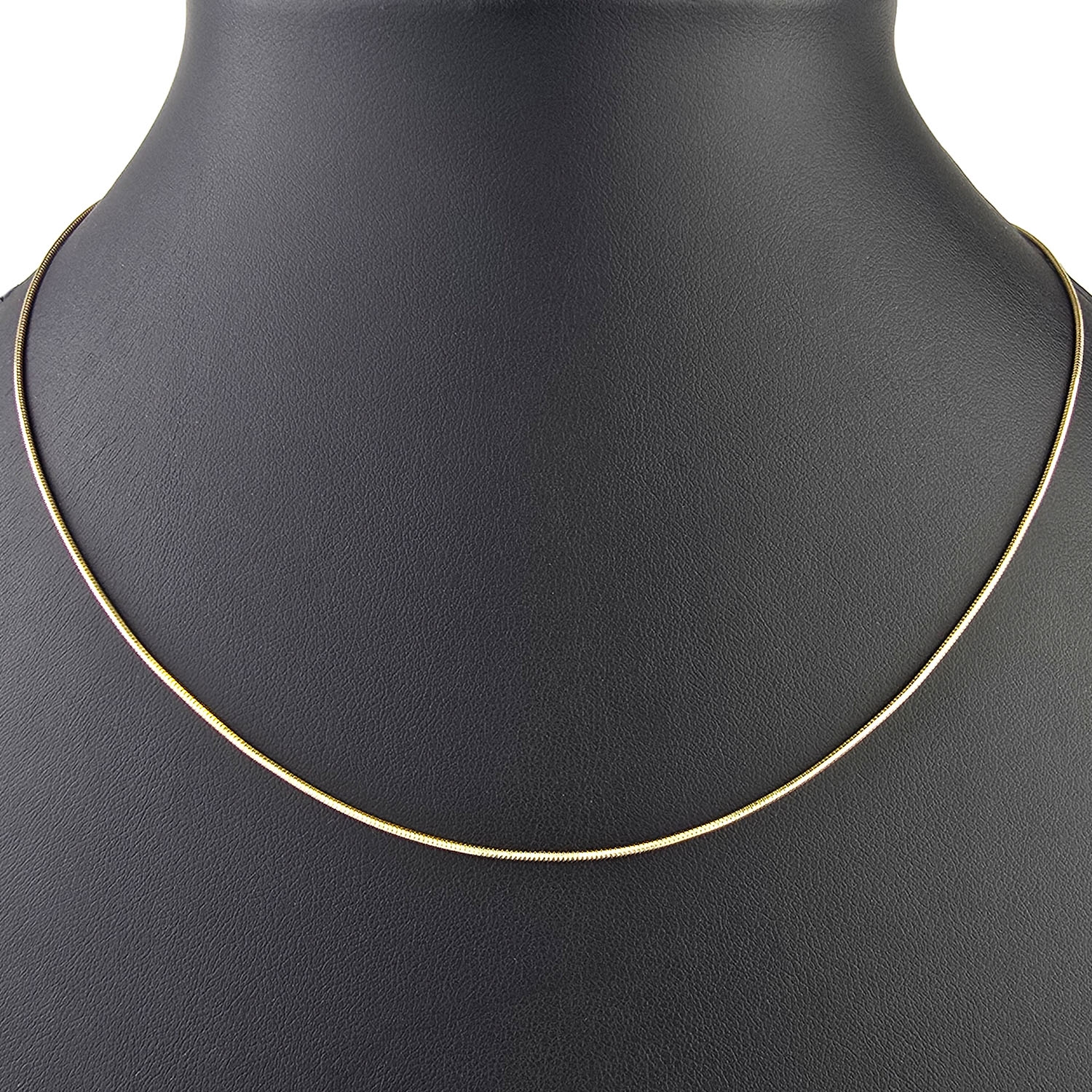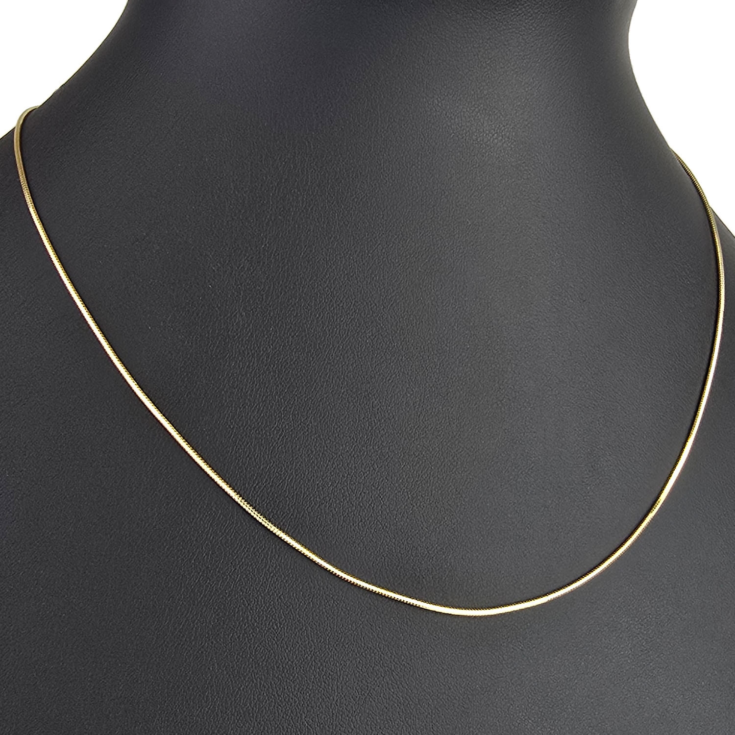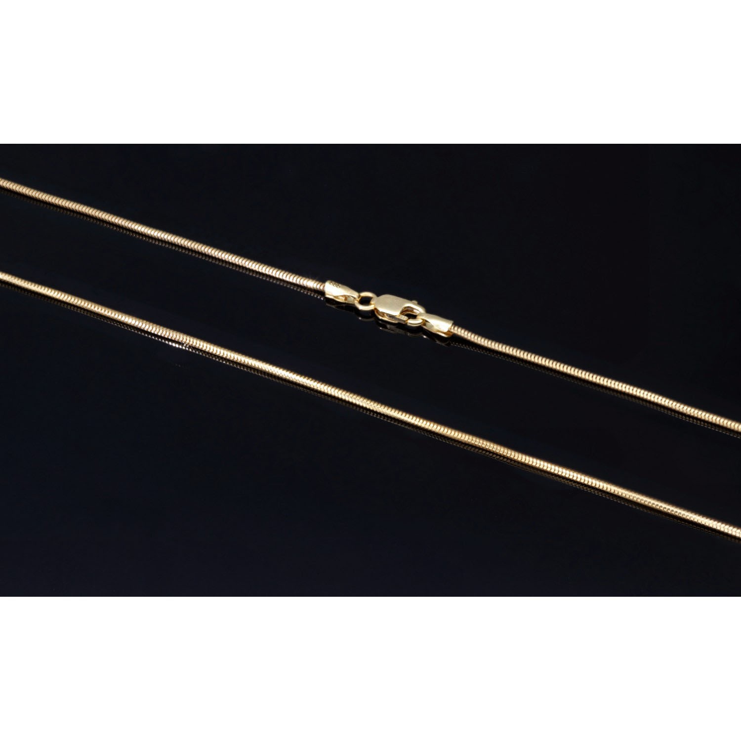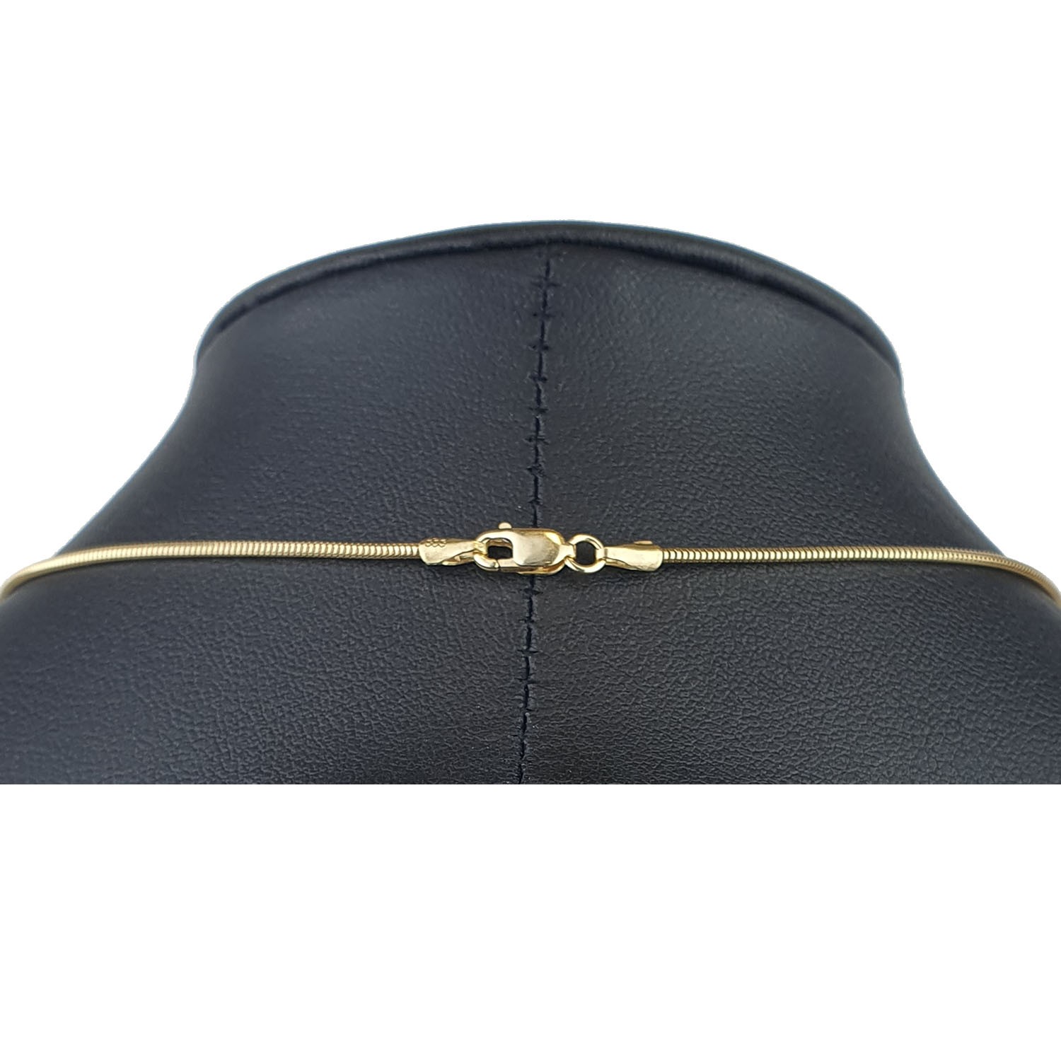 Diese kurze, glänzende Schlangenkette aus edlem 585er (14 Karat) Gold besticht durch ihre zeitlose Schönheit und ihr besonders geschmeidiges Design. Die fein gearbeitete Kette legt sich sanft um den Hals und sorgt für einen eleganten, fließenden Look.