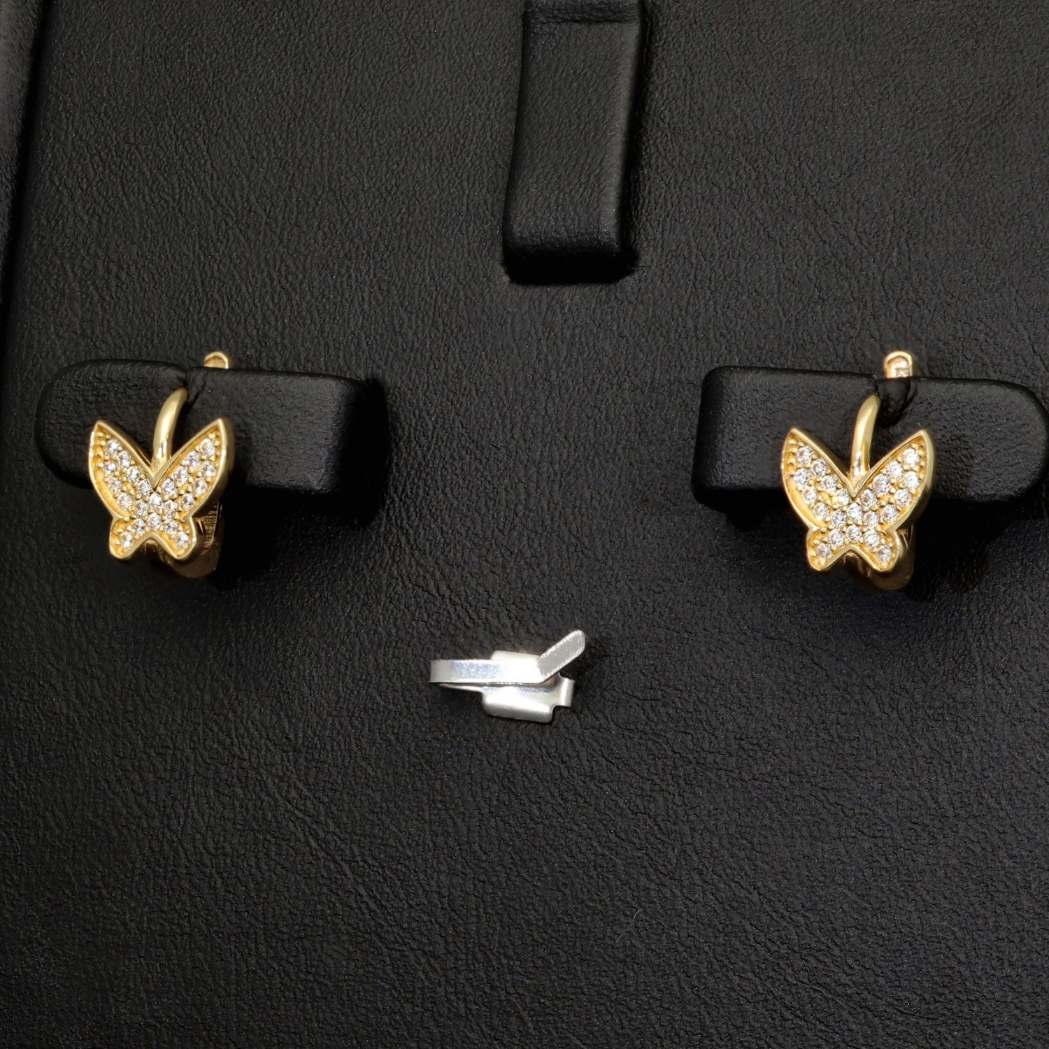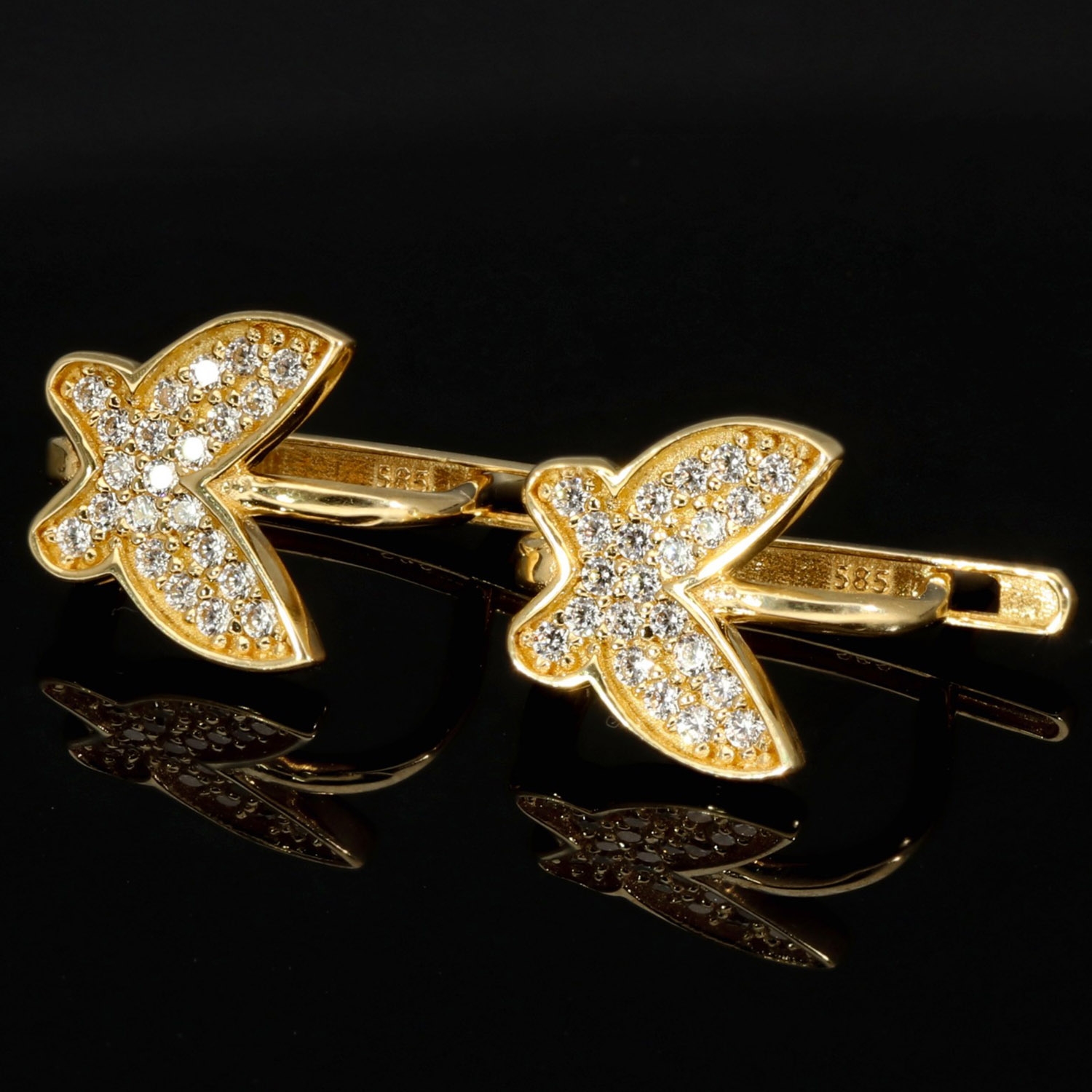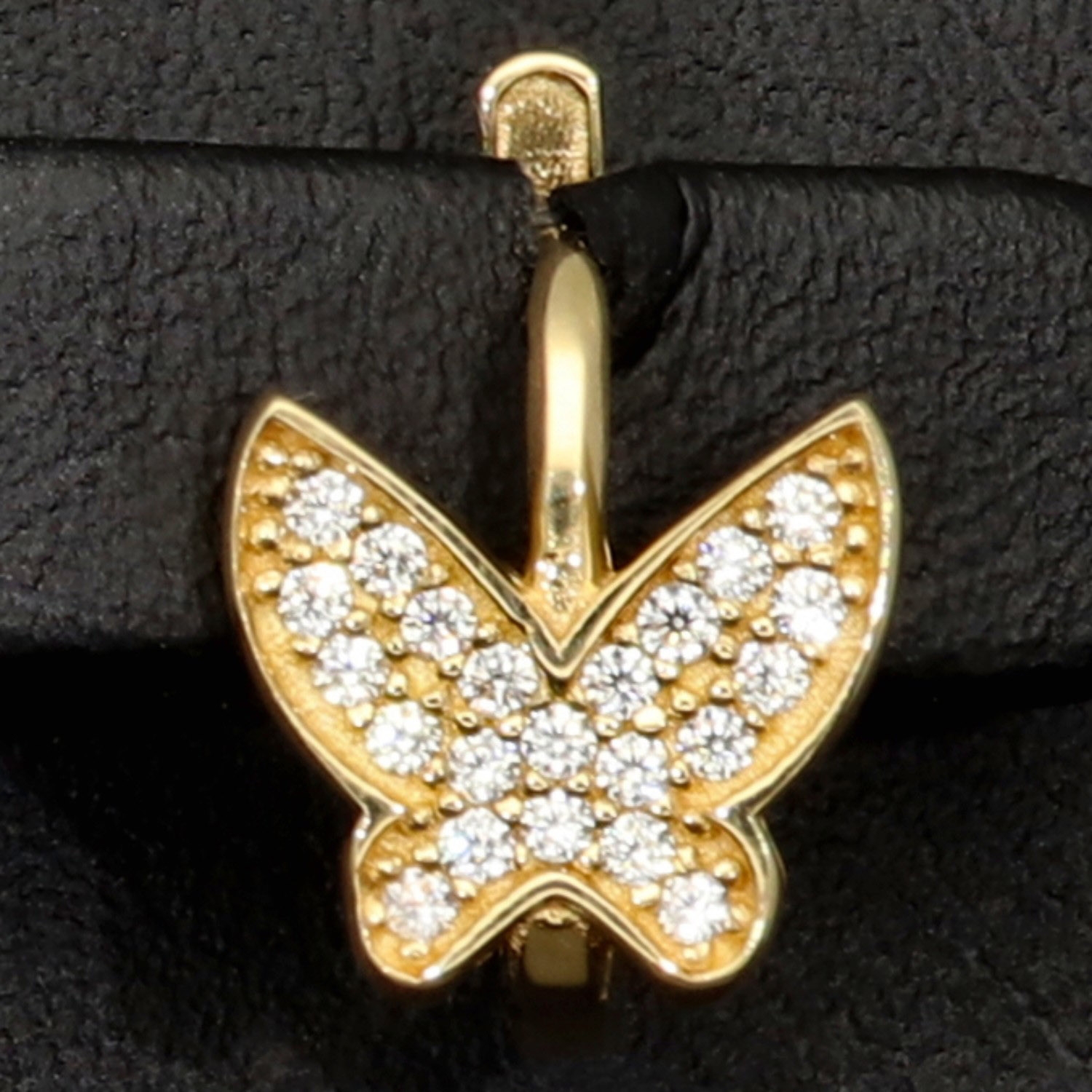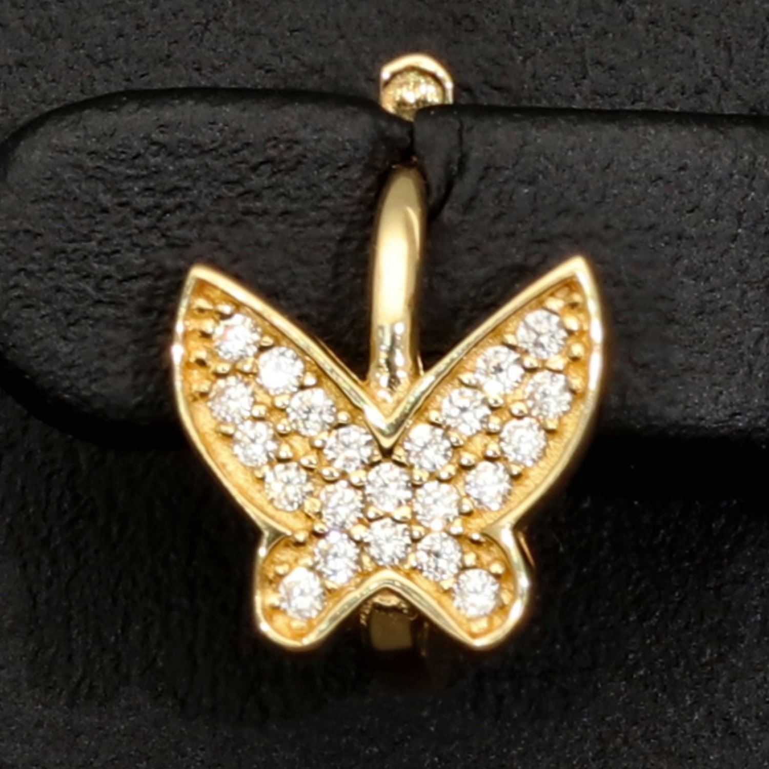Die stilvollen Schmetterlingsmotive sind aus hochwertigem 585er / 14 Karat Gelbgold gefertigt und vollständig mit strahlenden Zirkonia-Steinen besetzt. Durch die feine Pavé-Fassung entsteht ein intensives Funkeln, das die zarte Form des Schmetterlings besonders schön hervorhebt.