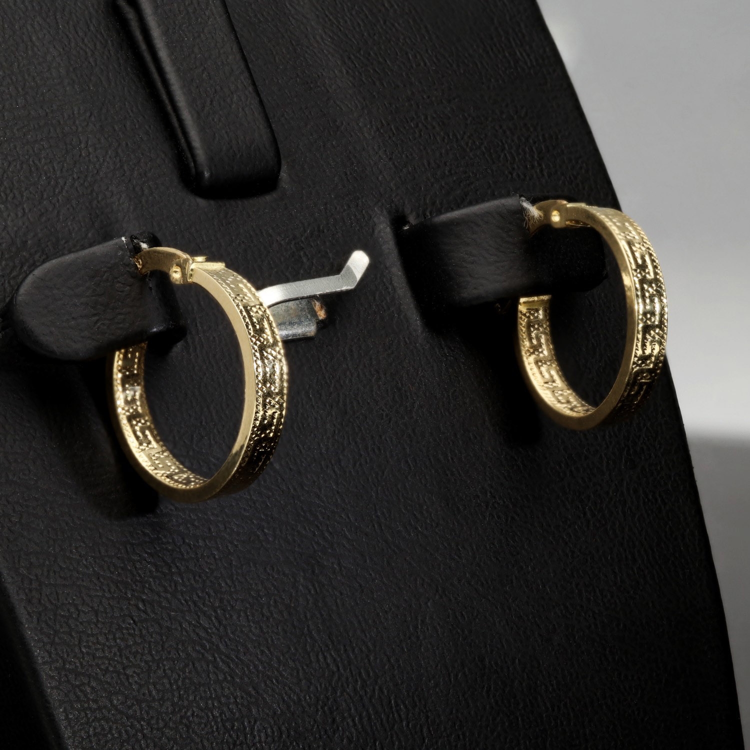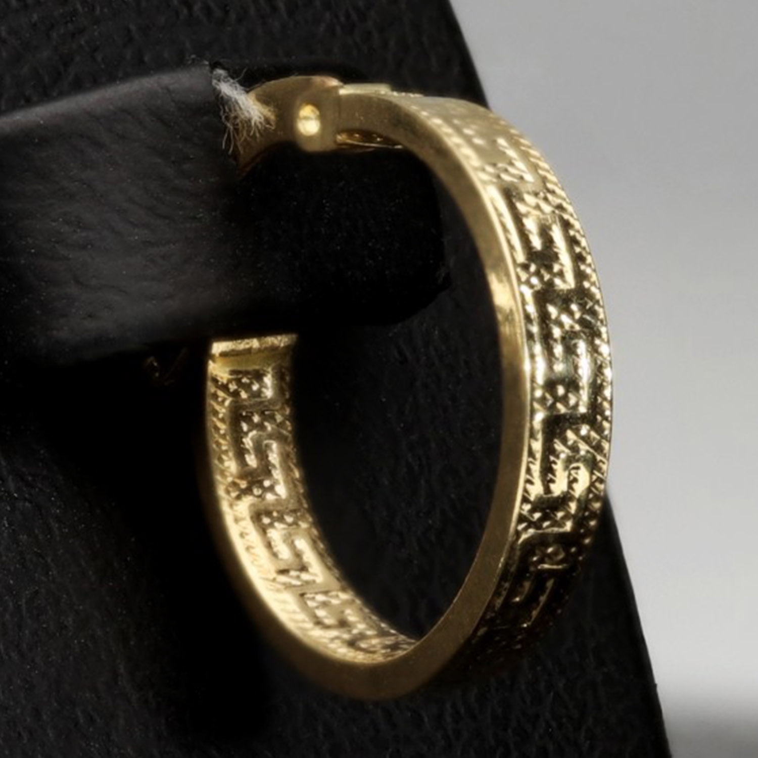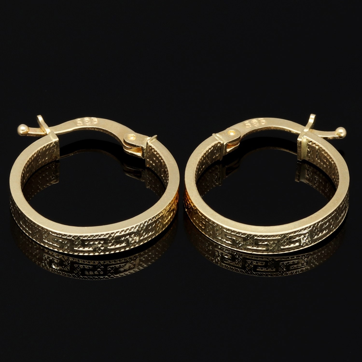 Diese eleganten Creolen aus hochwertigem 585 / 14K Gelbgold verbinden zeitlose Schönheit mit einem modernen, trendigen Greco-Design. Die fein ausgearbeiteten Ornamentlinien verleihen den Ohrringen eine edle, kunstvolle Ausstrahlung.