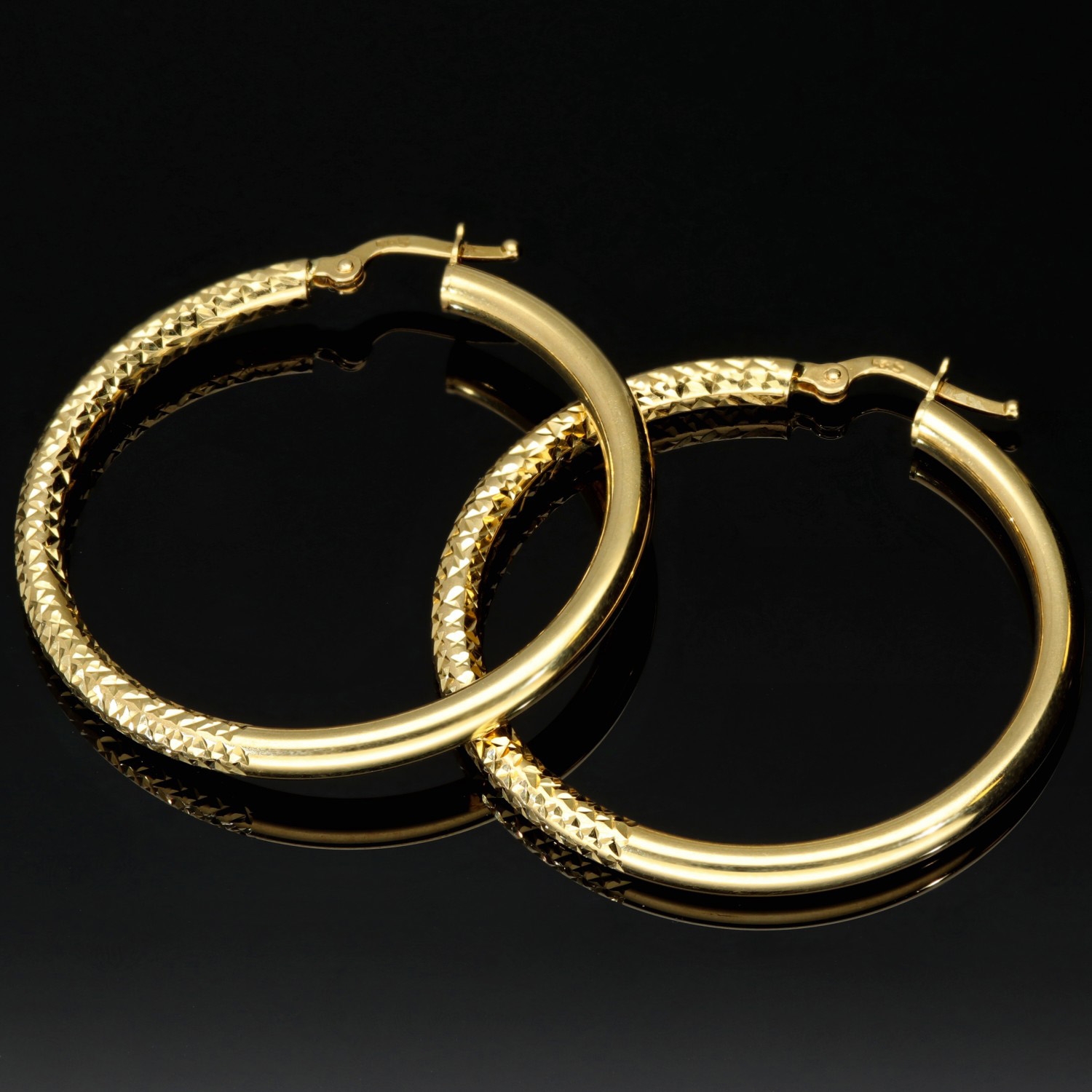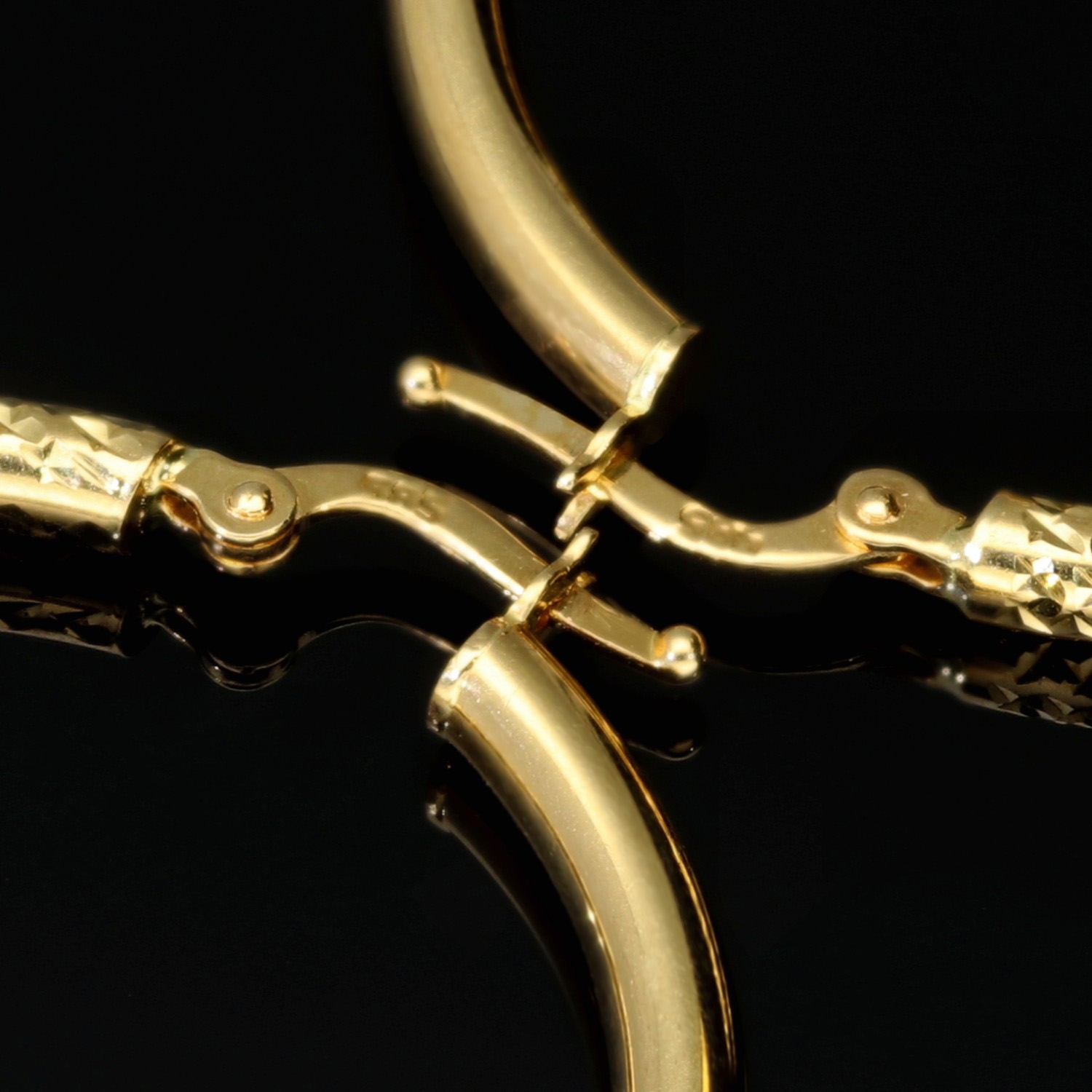 Die fein gearbeitete, teils strukturierte Oberfläche sorgt für ein faszinierendes Lichtspiel und verleiht den klassischen Creolen eine besondere Raffinesse. Durch ihre harmonische Form schmiegen sie sich elegant an das Ohr und bieten gleichzeitig einen angenehmen Tragekomfort.