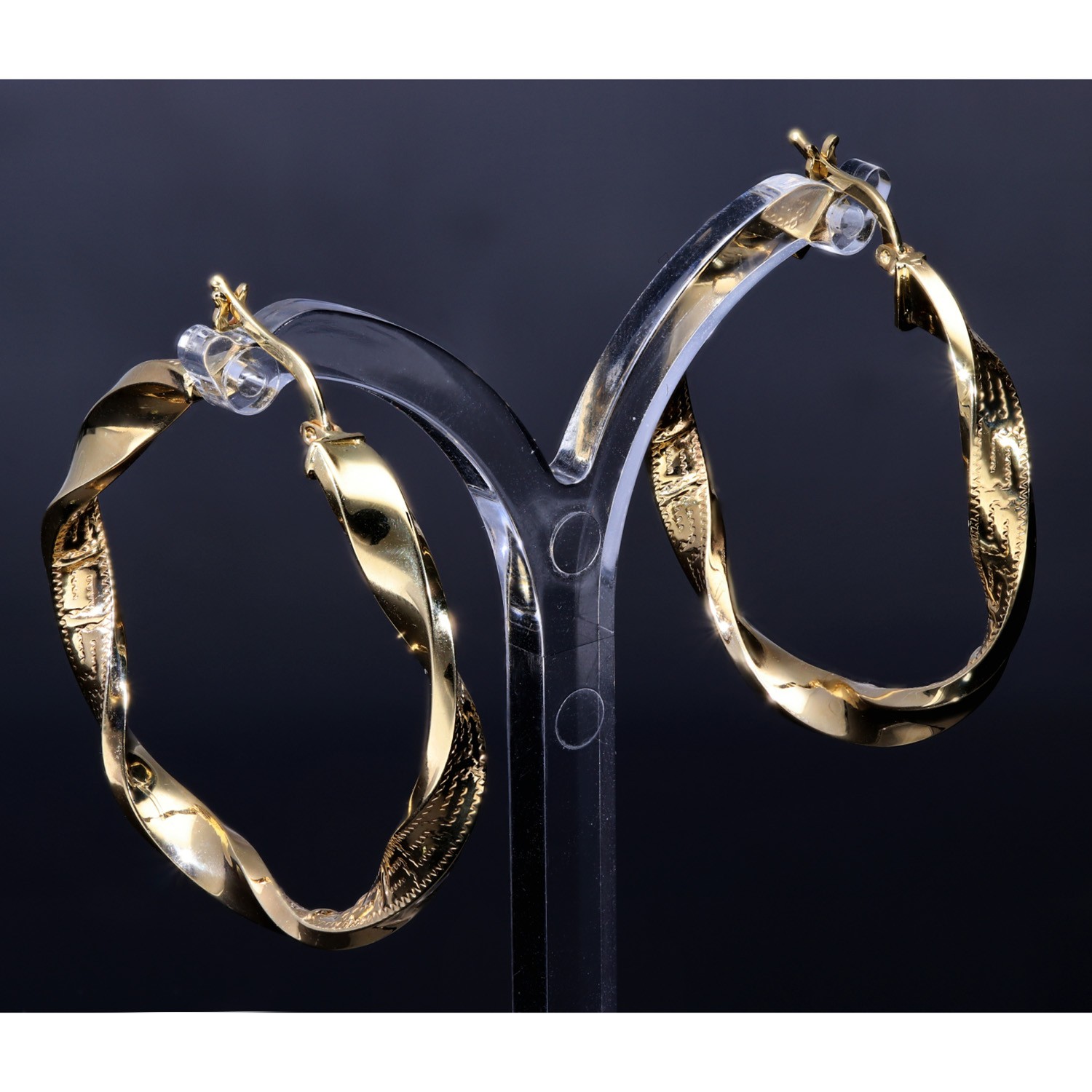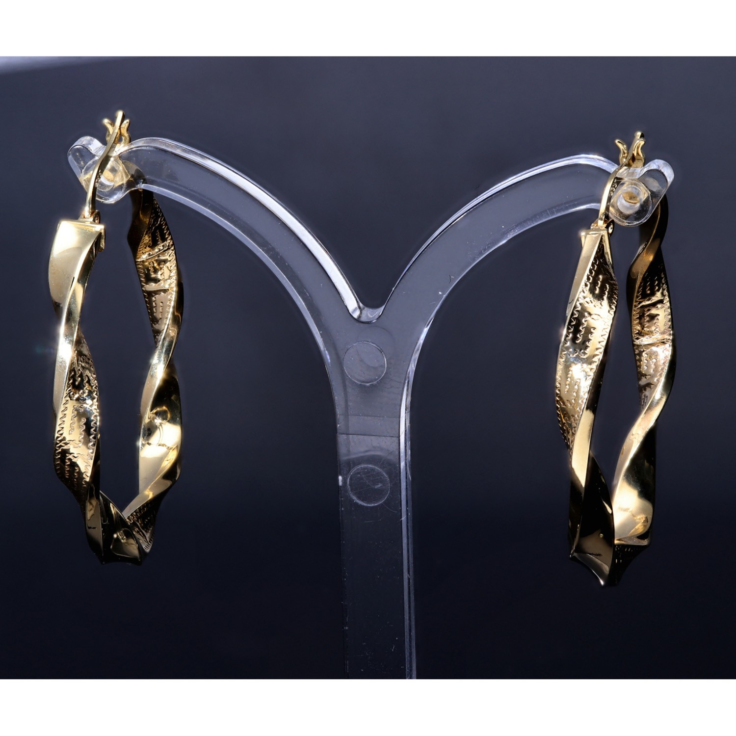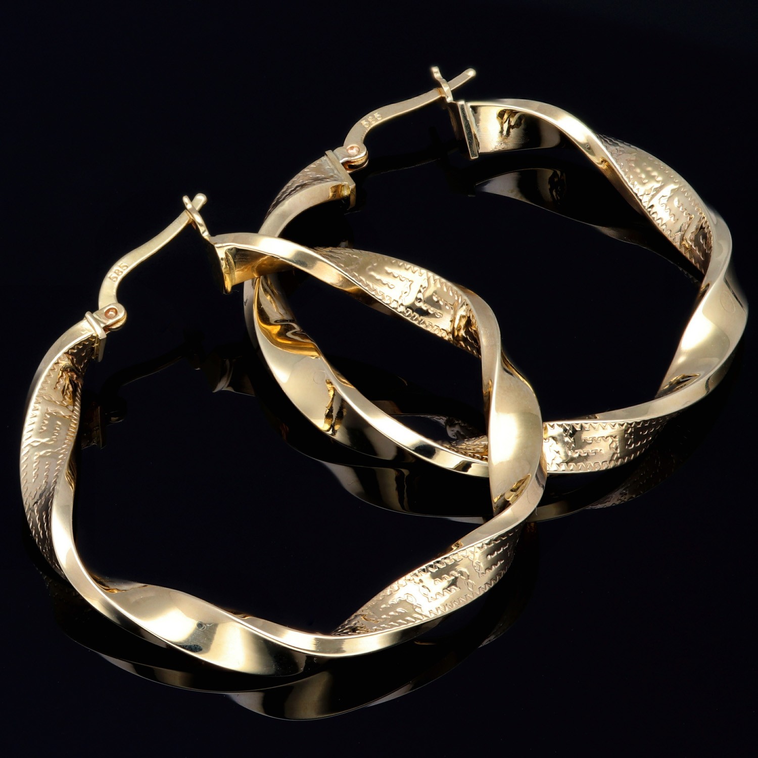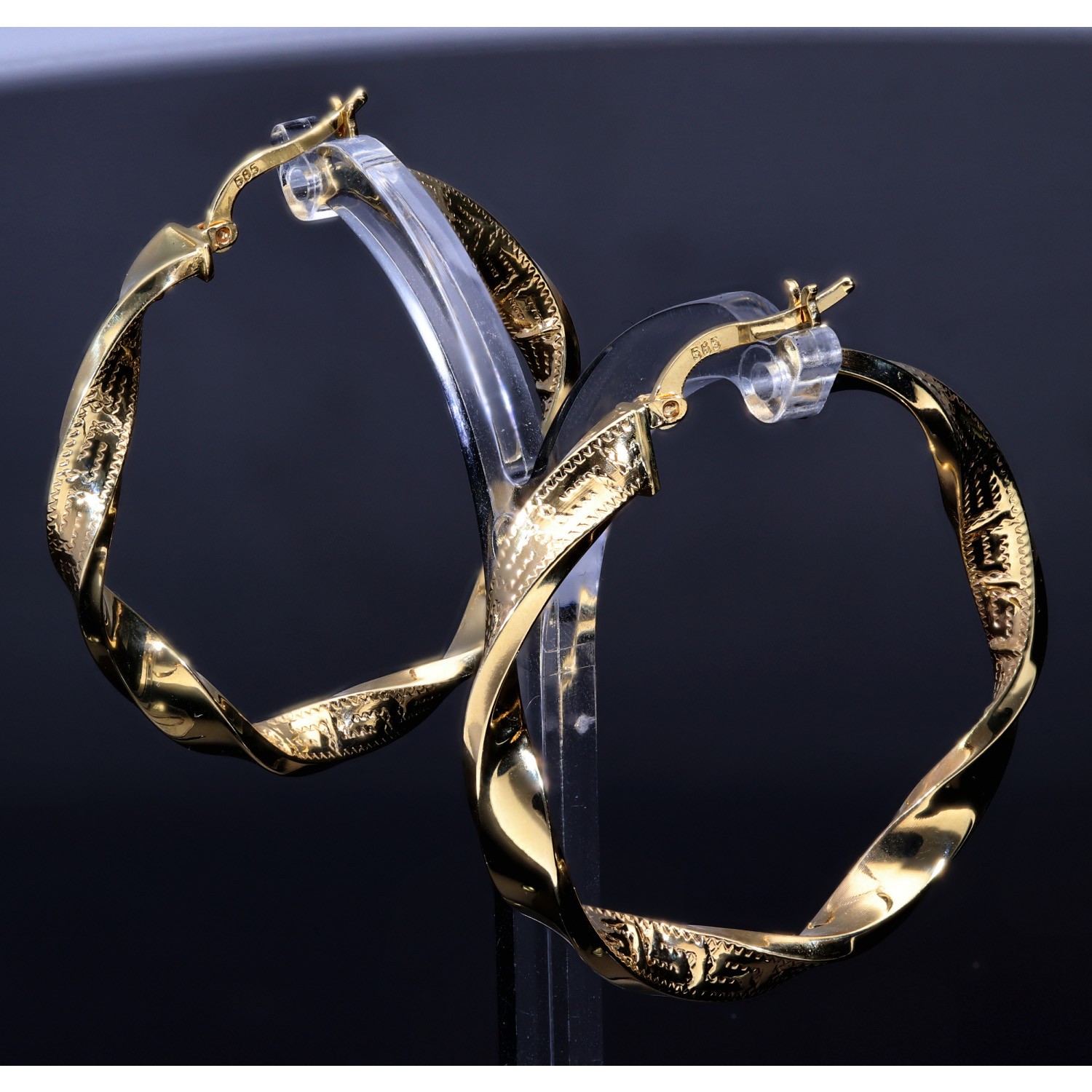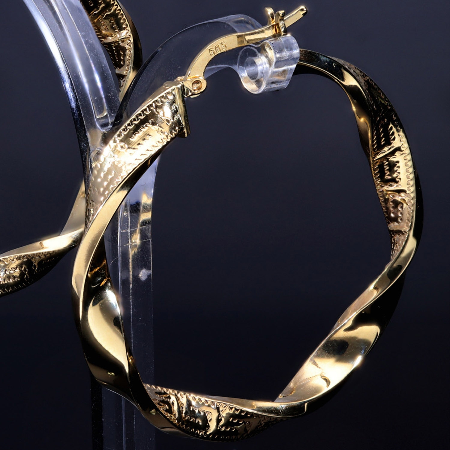 Diese edlen Creolen vereinen zeitlose Eleganz mit kunstvoller Detailarbeit. Gefertigt aus hochwertigem 585er (14 Karat) Gelbgold, überzeugen sie durch ihr raffiniertes, leicht gedrehtes Design, das das Licht bei jeder Bewegung stilvoll reflektiert.
