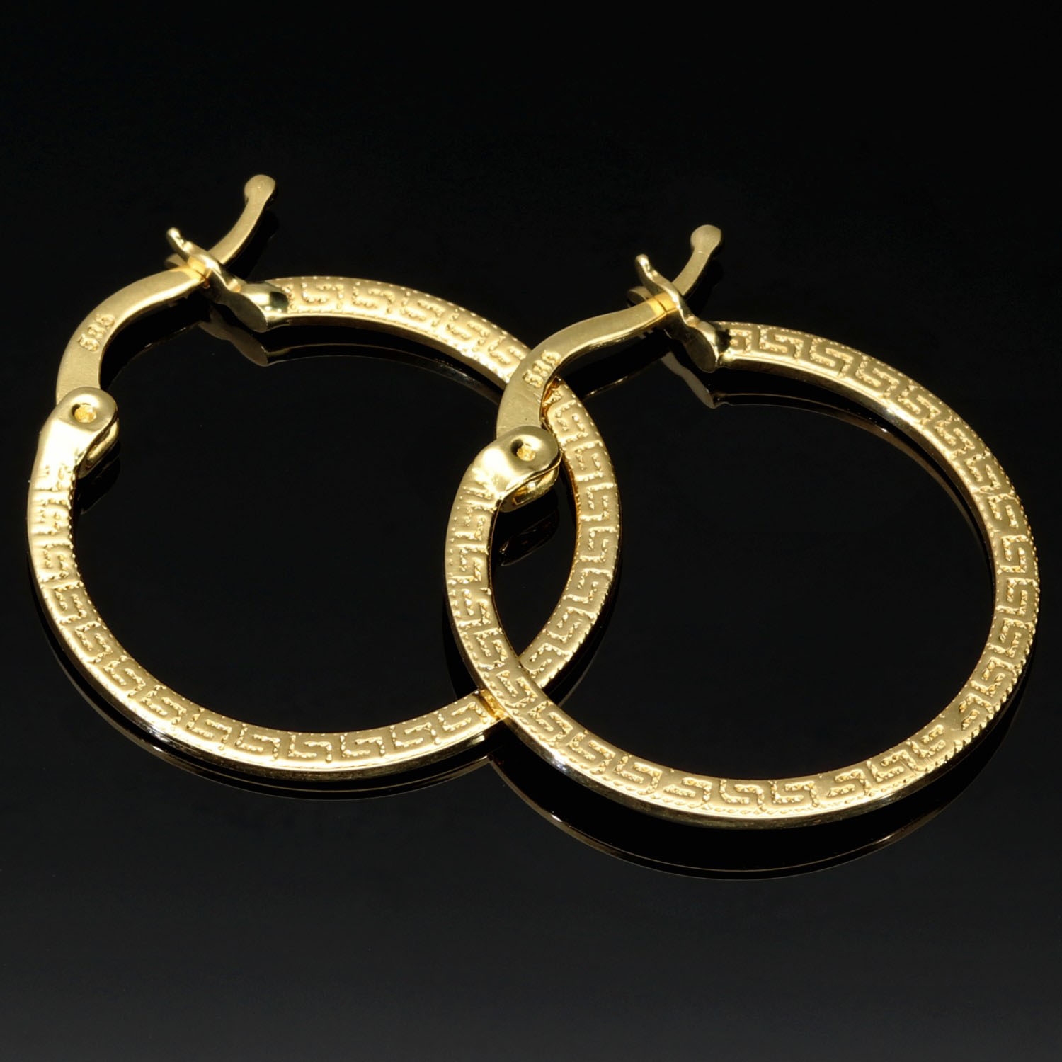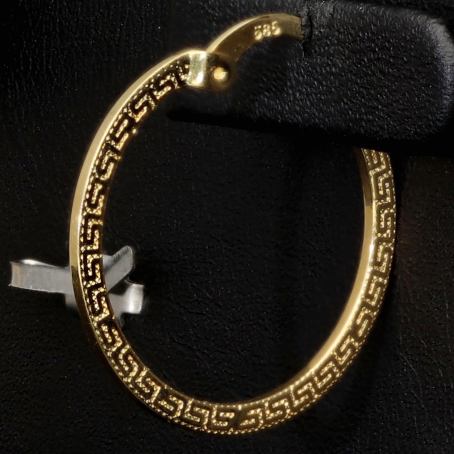 Funkelnde Ohrringe / Creolen in zeitlosem Greco-Design aus hochwertigem 585 / 14K Gold (Gelbgold)