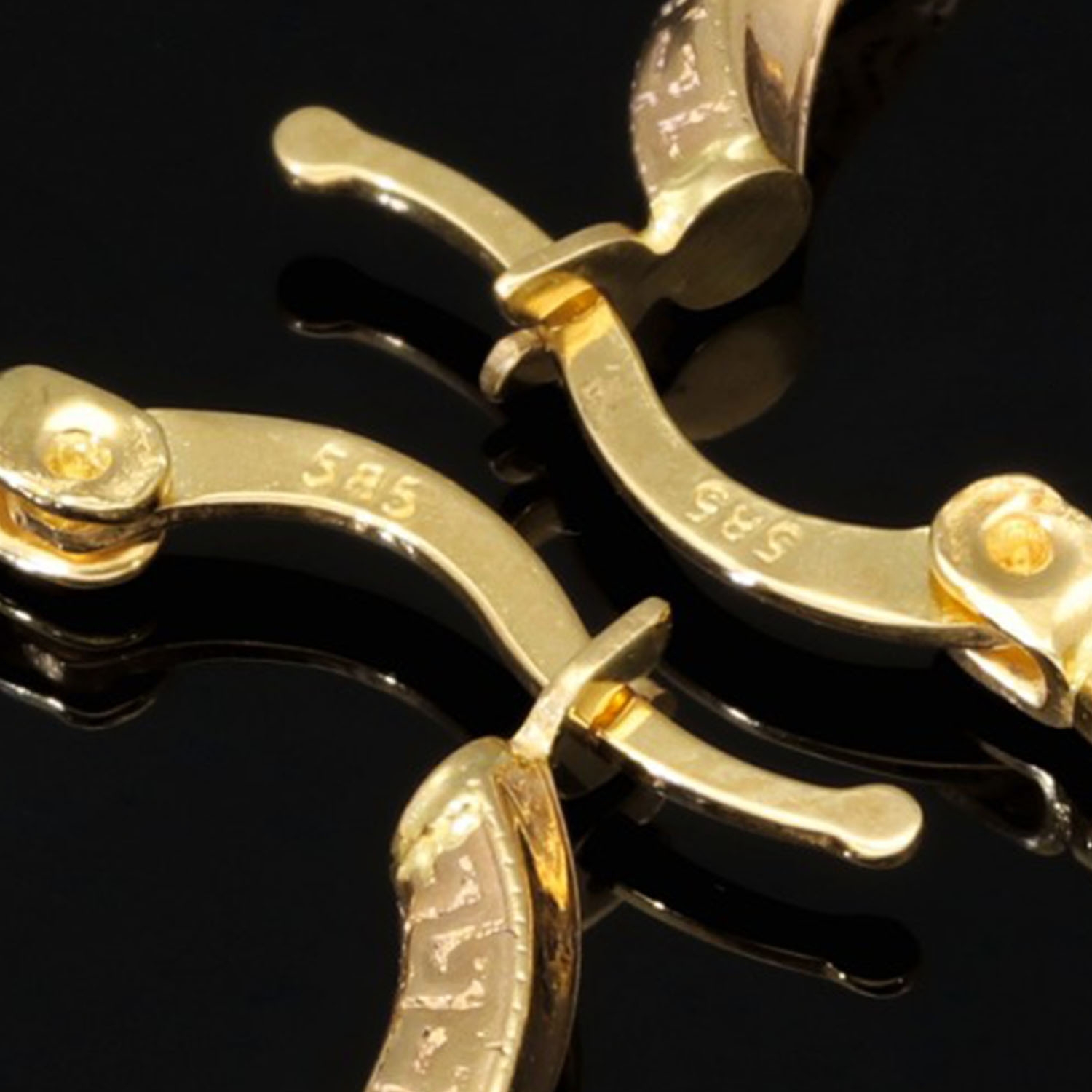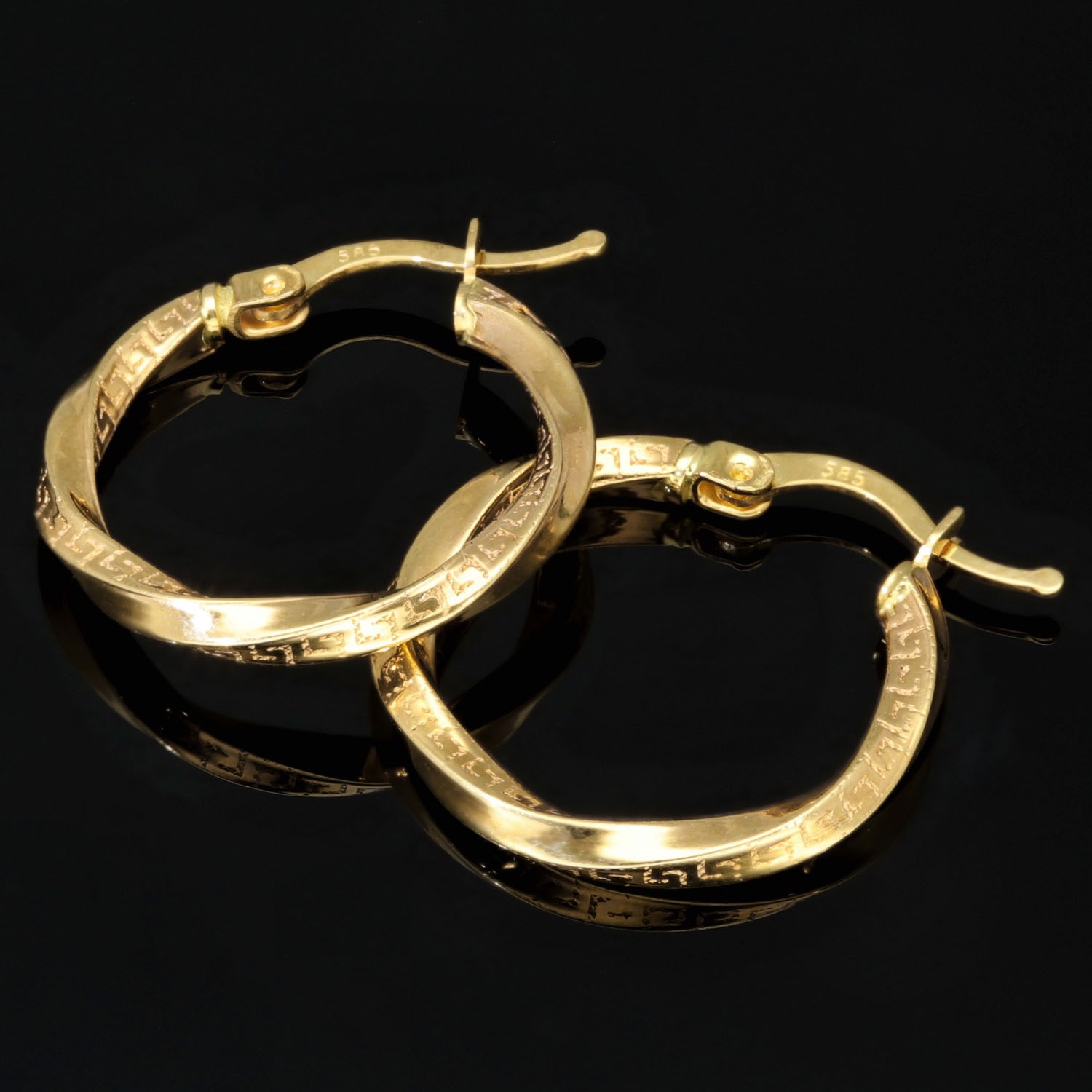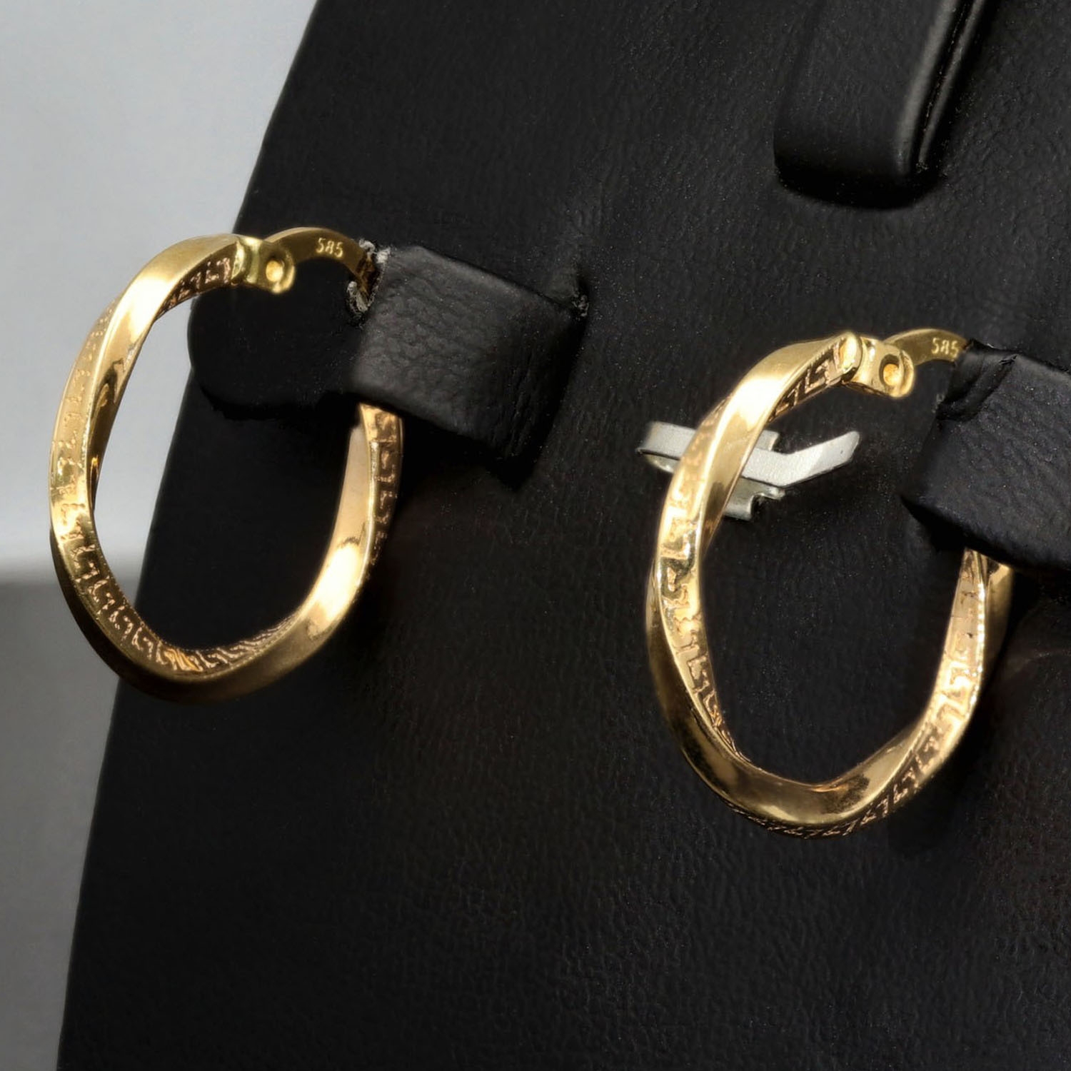Funkelnde Twist - Creolen mit zeitlosen Greco - Design aus 585er (14K) Gelbgold