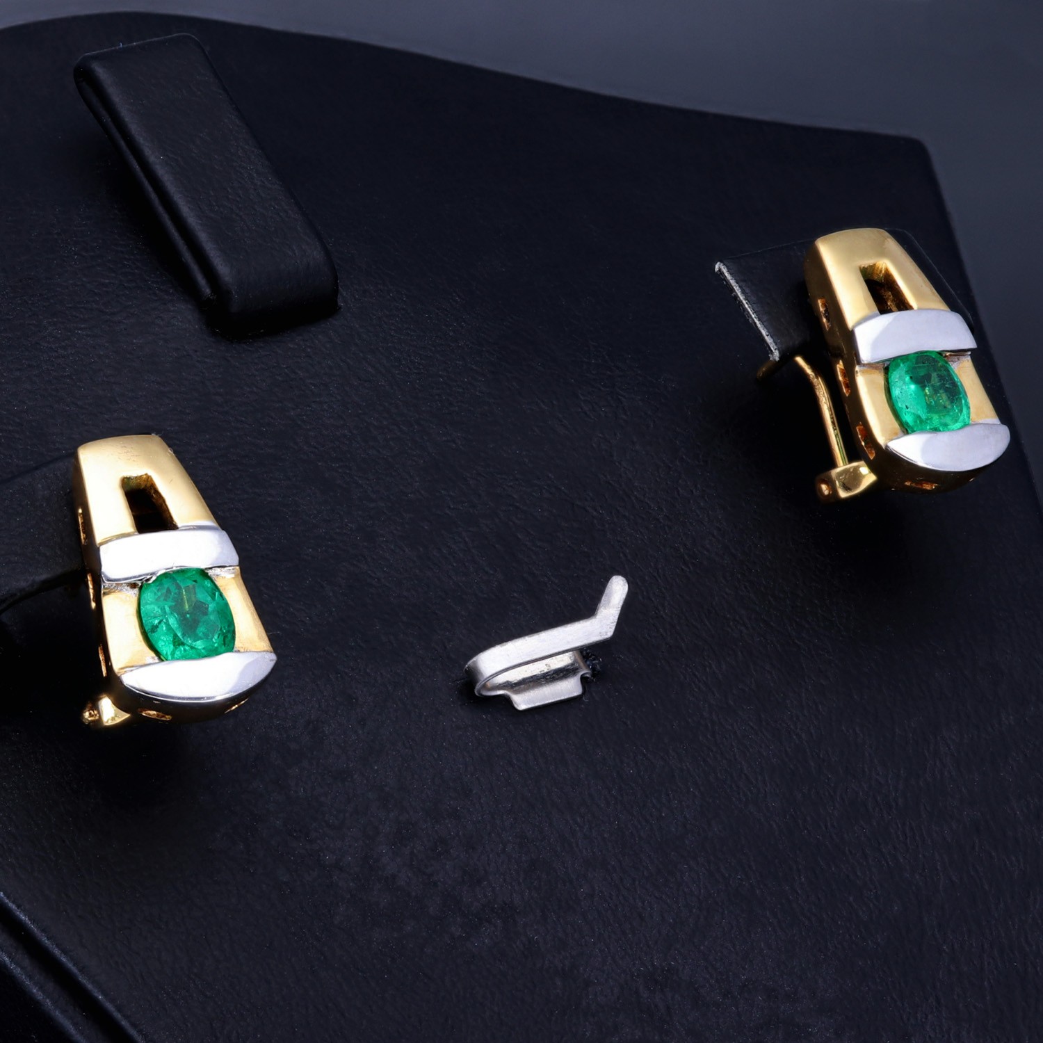 Handgearbeitete bicolor Smaragd-Ohrringe in modernem Design aus 750er (18k) Gold