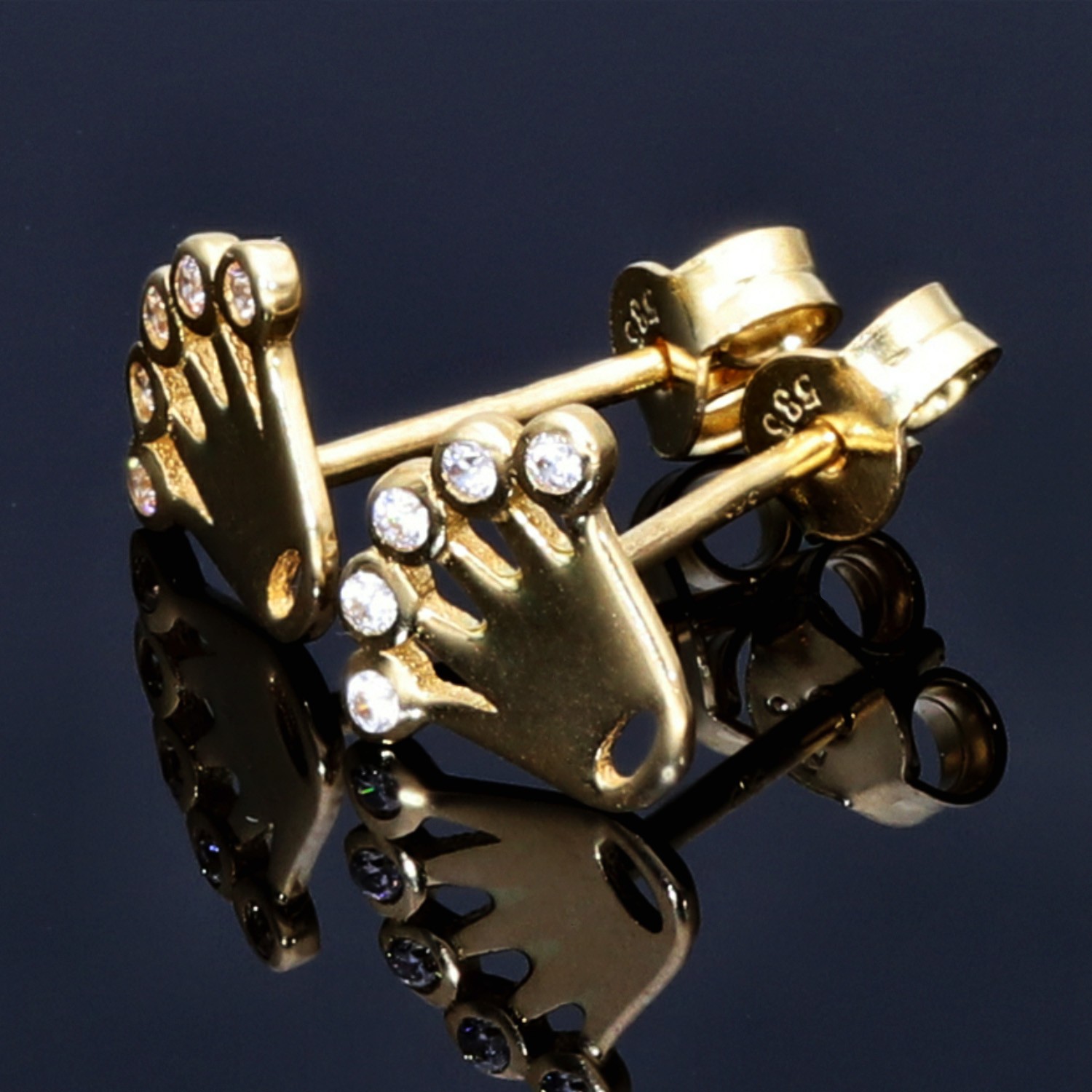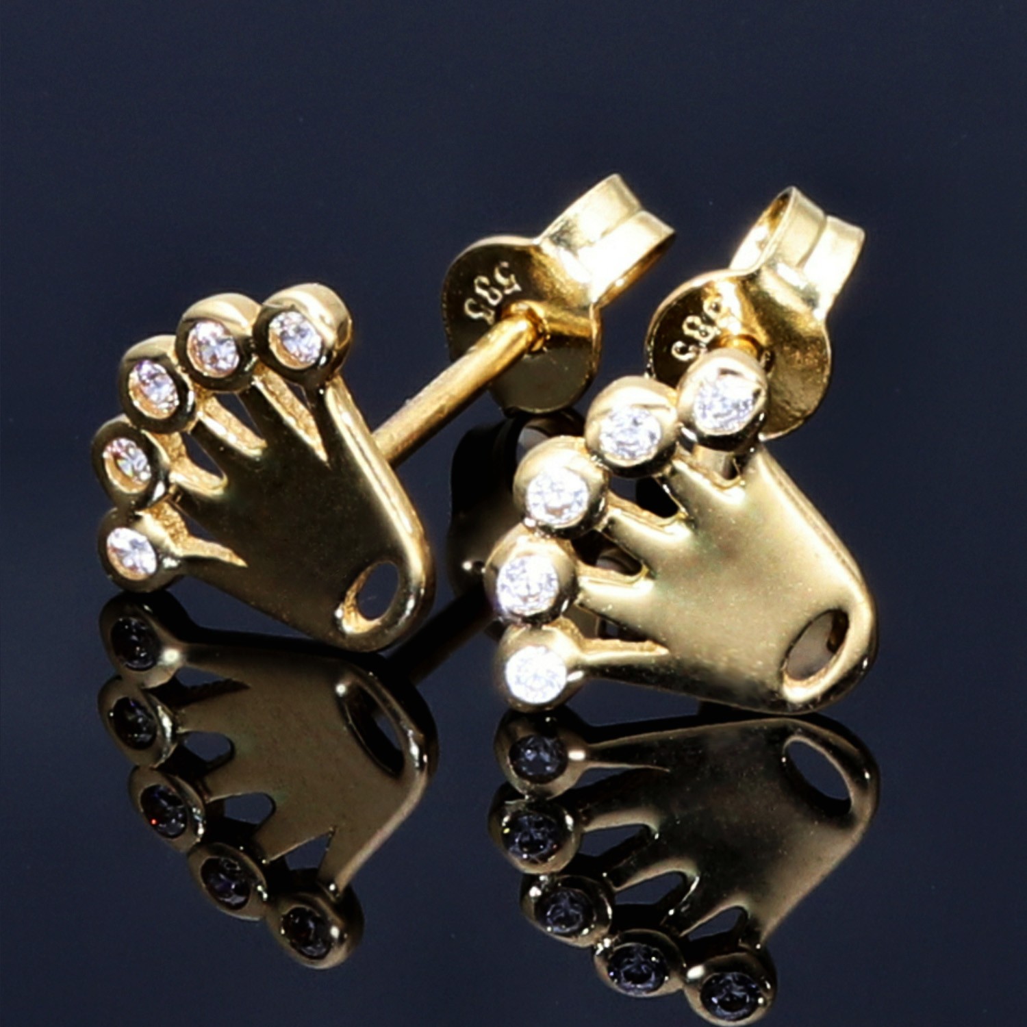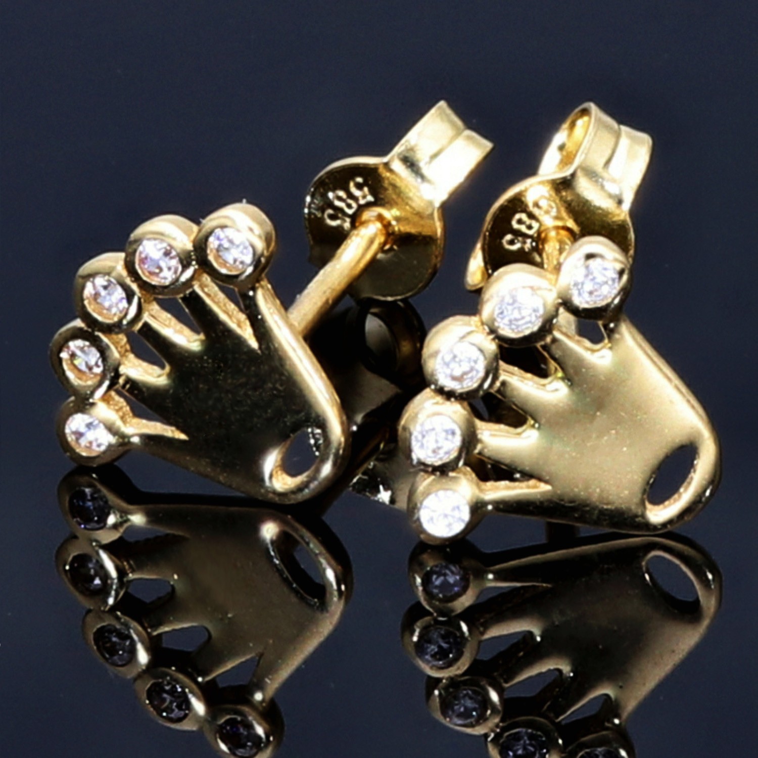 Queen - Ohrstecker Motiv Krone mit Zirkoniasteinen besetzt in 585er 14K Gold