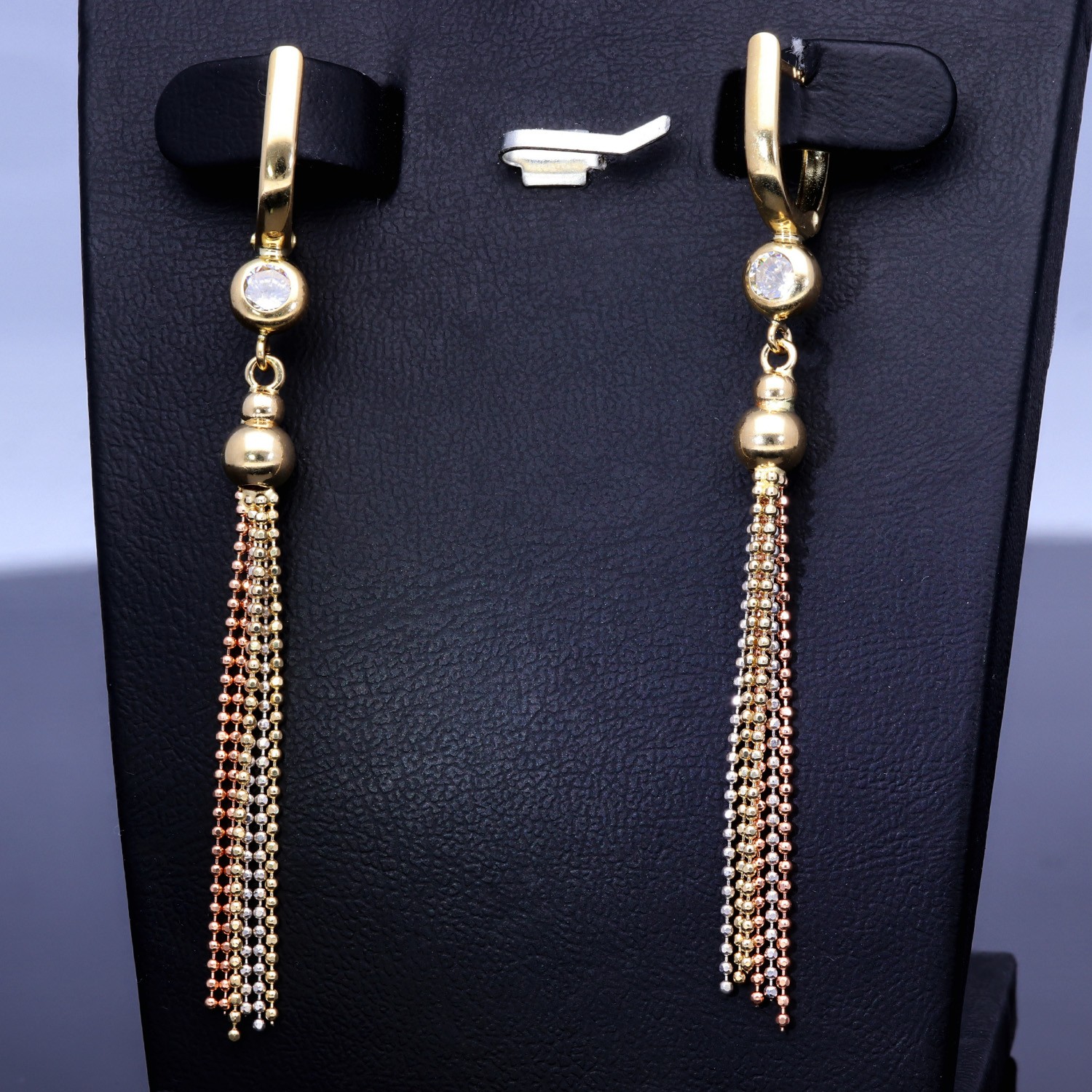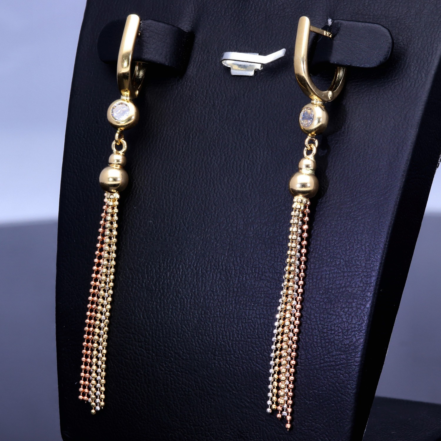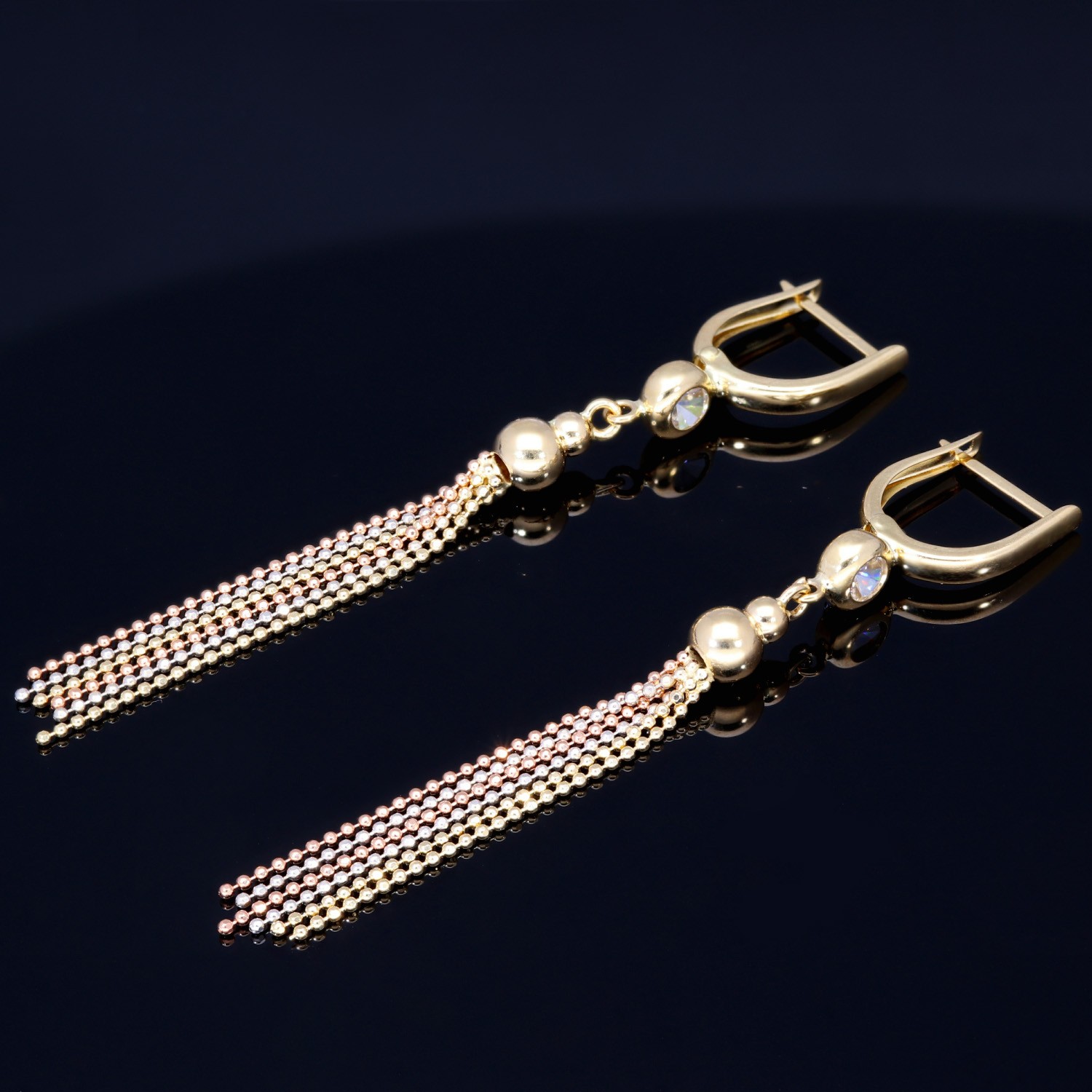 Wunderschöne hängende Ohrringe mit Zirkoniabesatz aus Tricolor 585er (14K) Gold