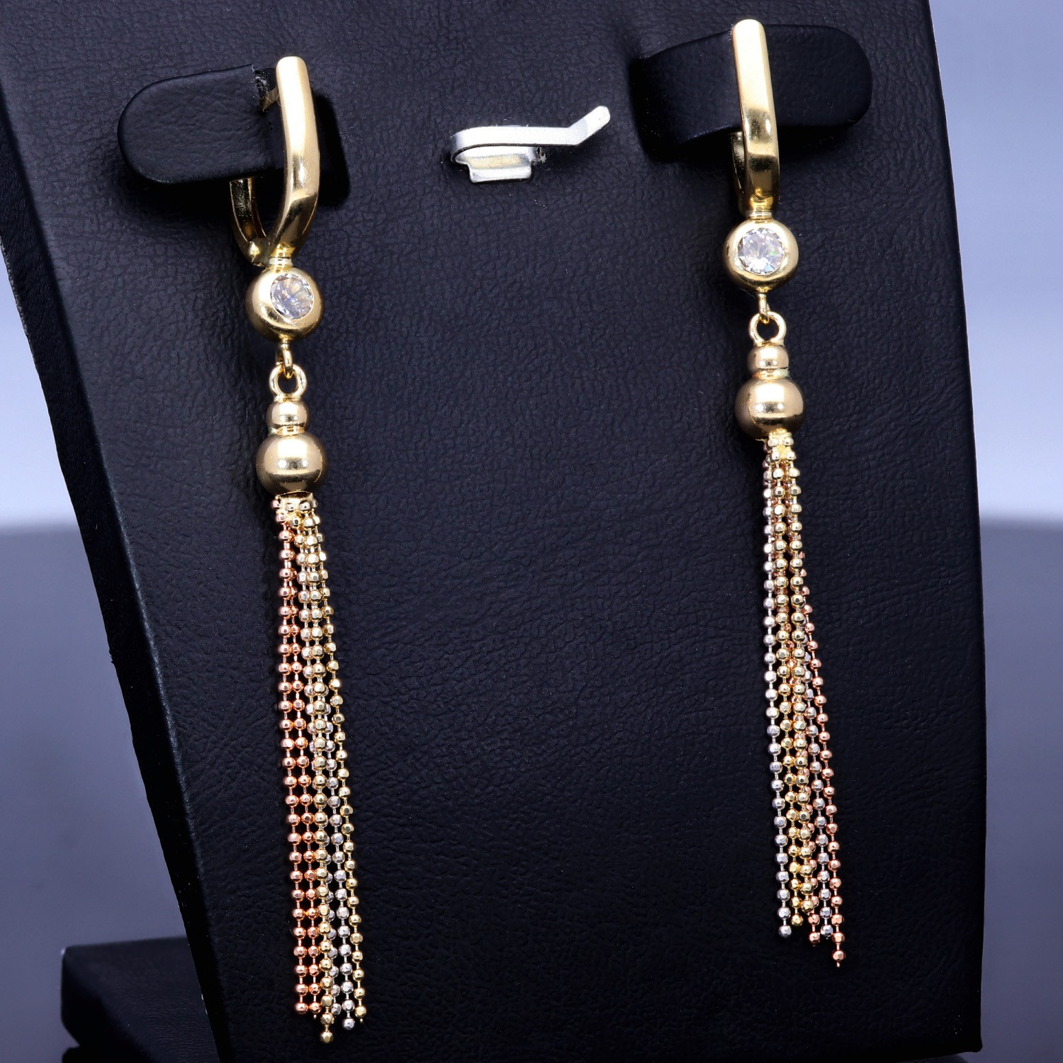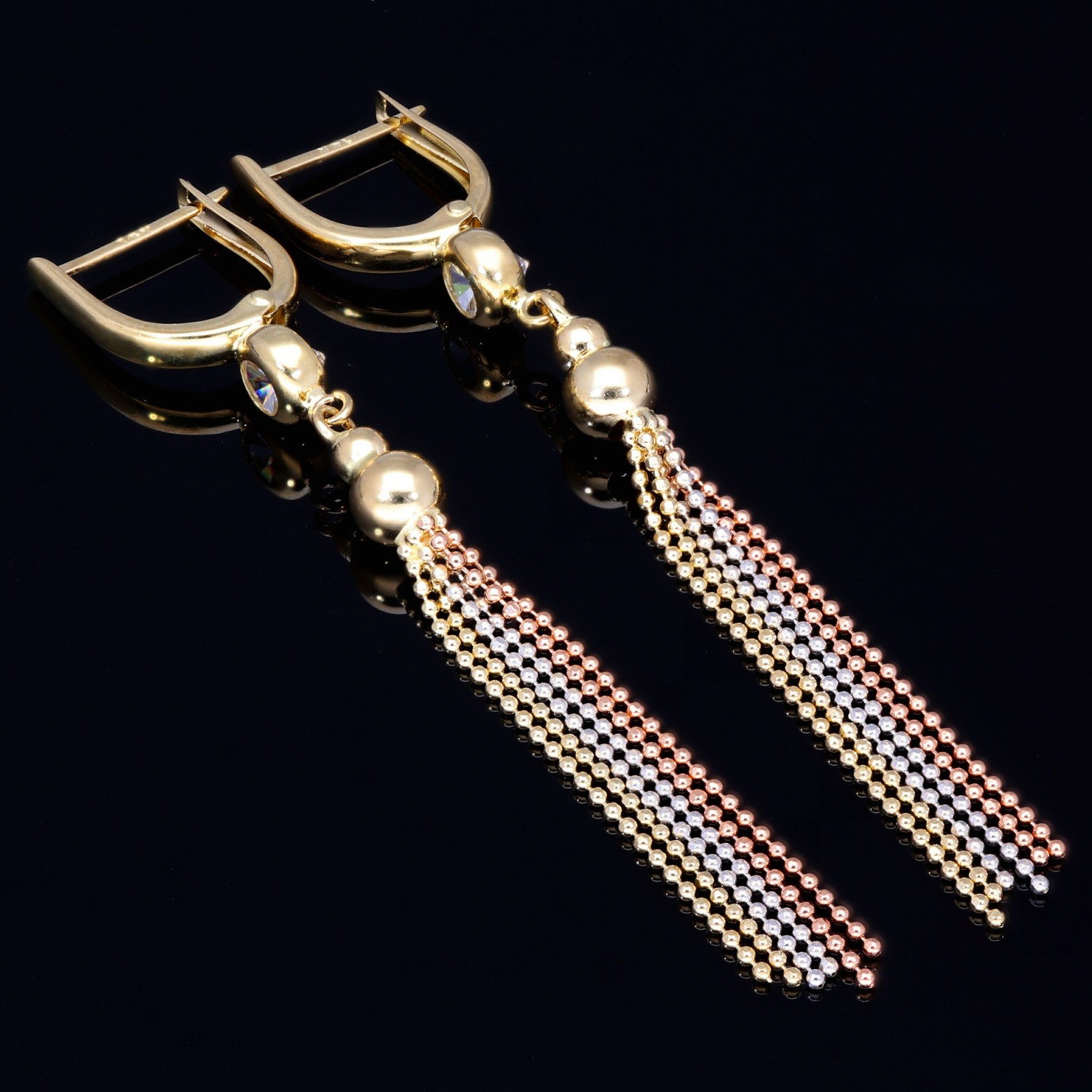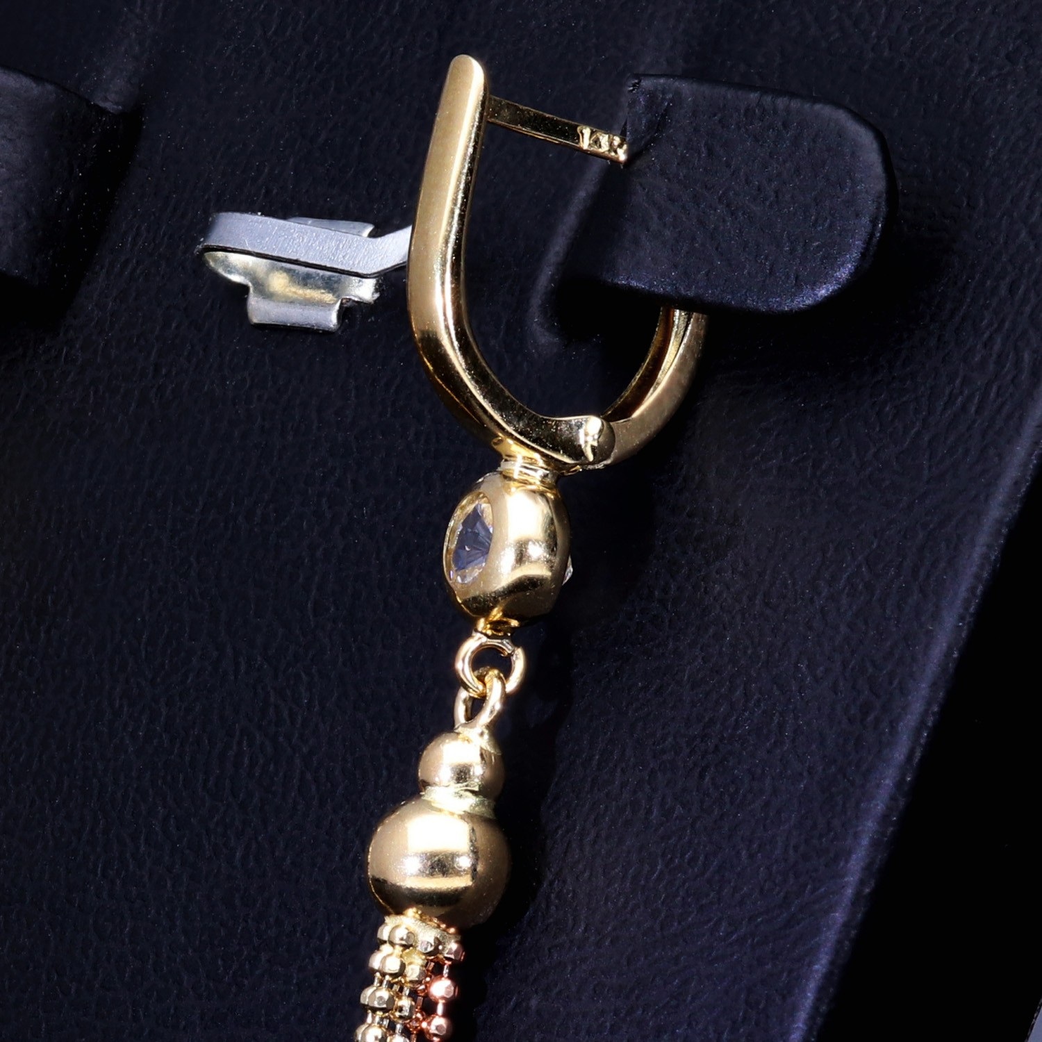Wunderschöne hängende Ohrringe mit Zirkoniabesatz aus Tricolor 585er (14K) Gold