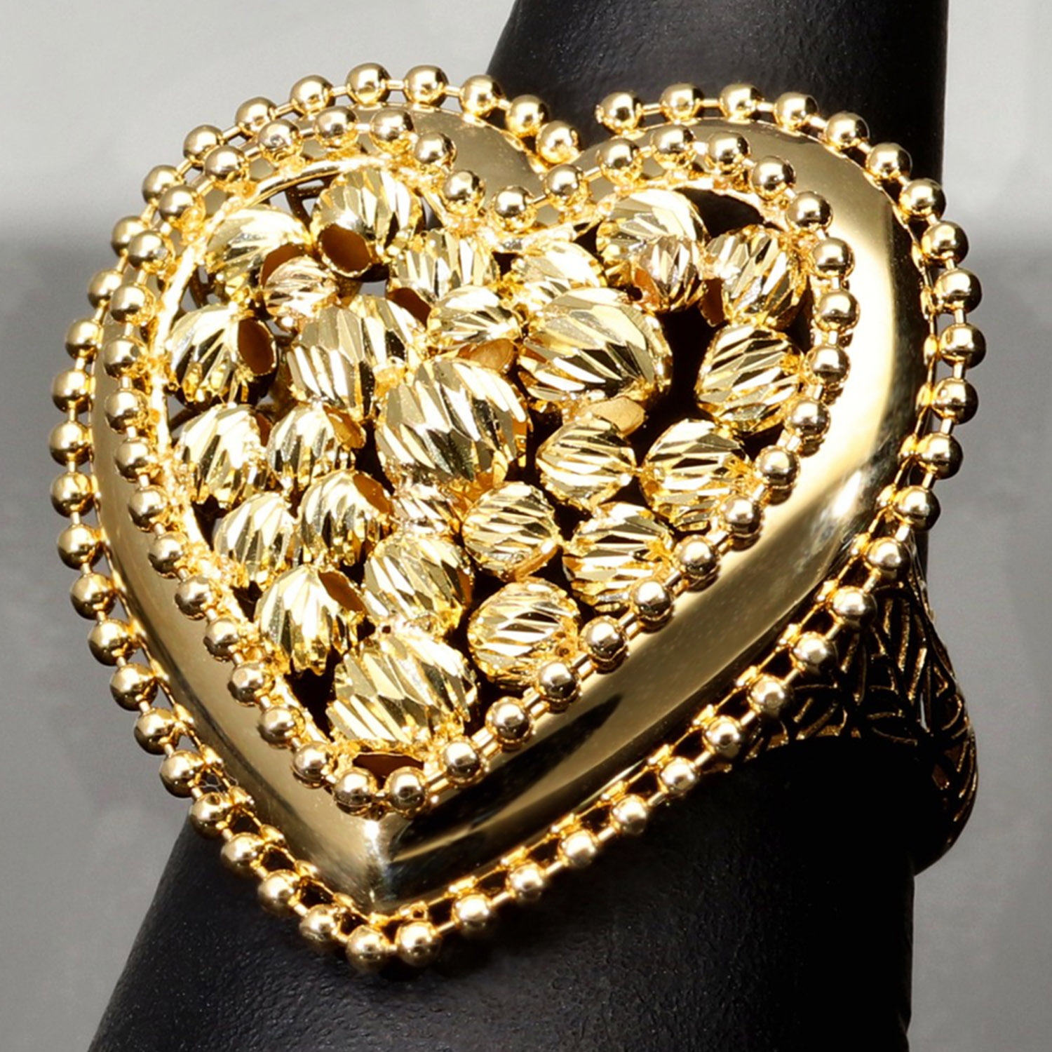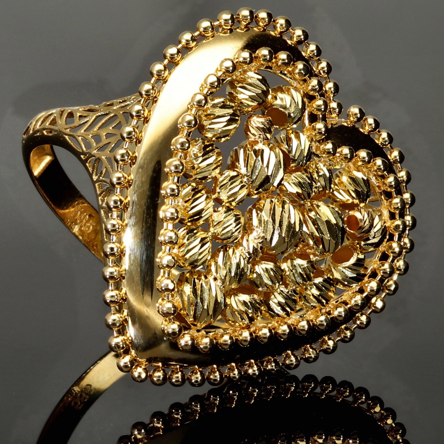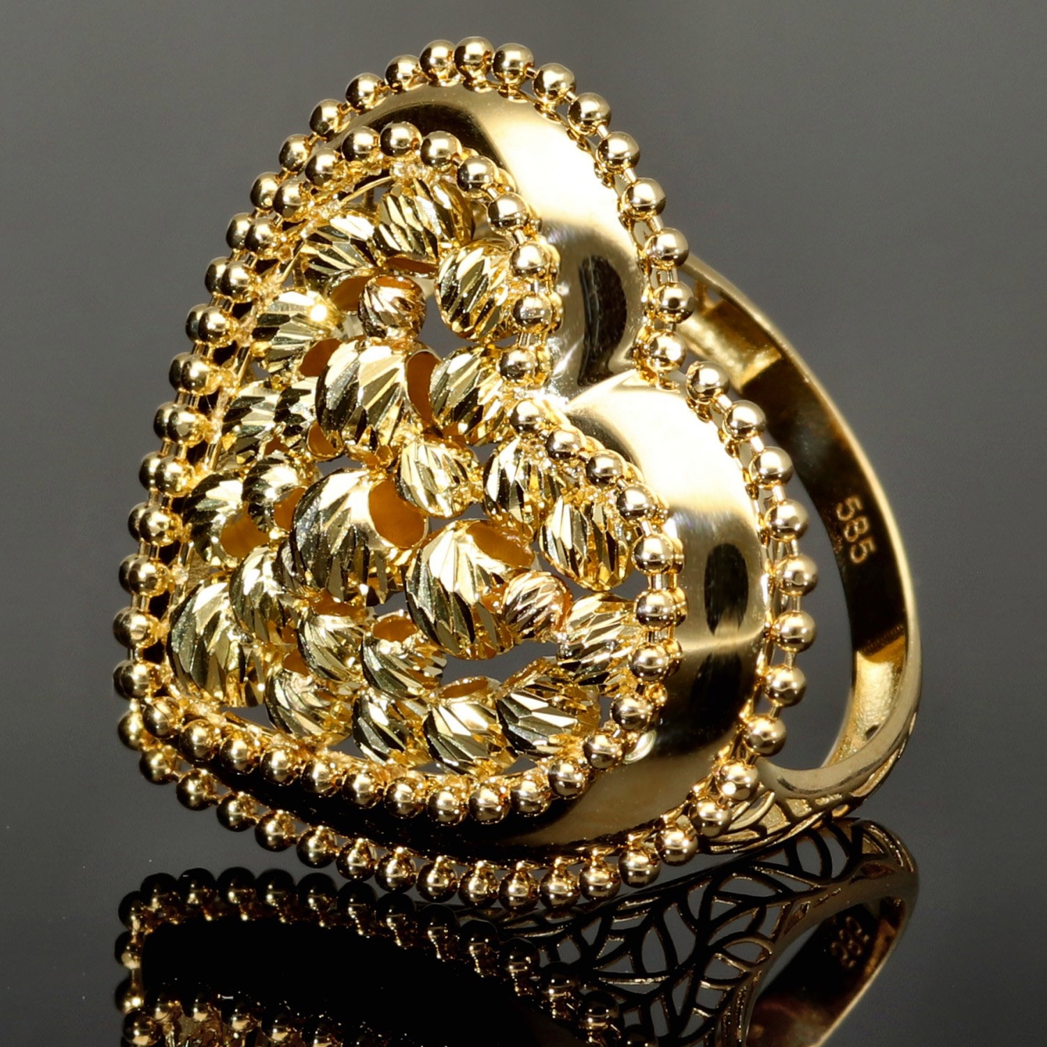 Statement-Ring dür Damen mit einem großen, funkelnden Herz aus Gold (585 14K Gelbgold) in RG ca. 57
